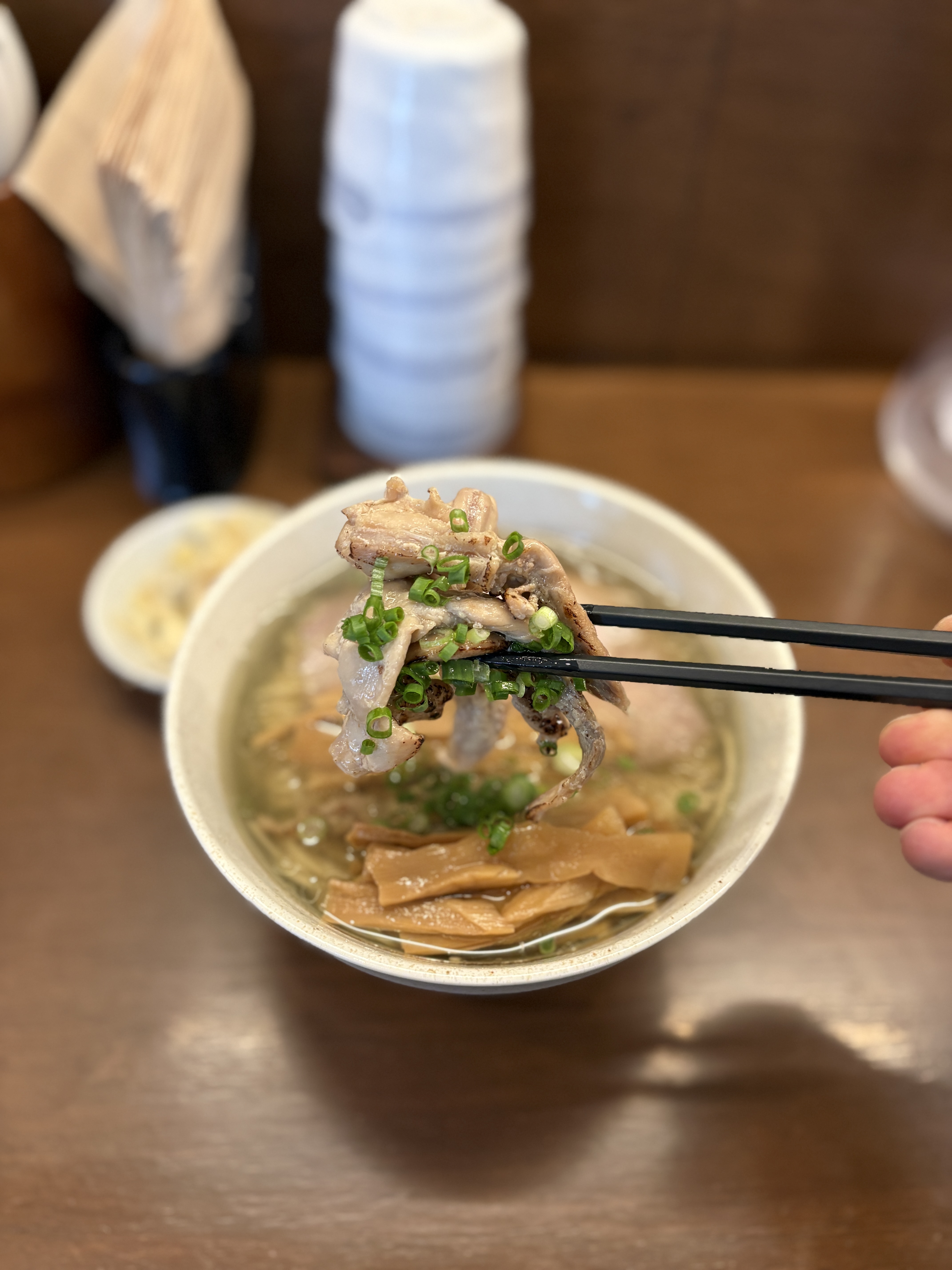 추가를 해서 그런지 닭목살이 정말 푸짐합니다. 이게 닭 정육하는 부위에서도 소량만 나오는 걸로 알고 있는데, 라멘 토핑중에서는 흔한 토핑은 아닌 것은 분명합니다. 대부분 닭가슴살을 수비드해서 많이 쓰시지요. 토치로 불향을 입힌 목살이 탱글한 식감과 함께 고소한 기름진 맛도 제공합니다.