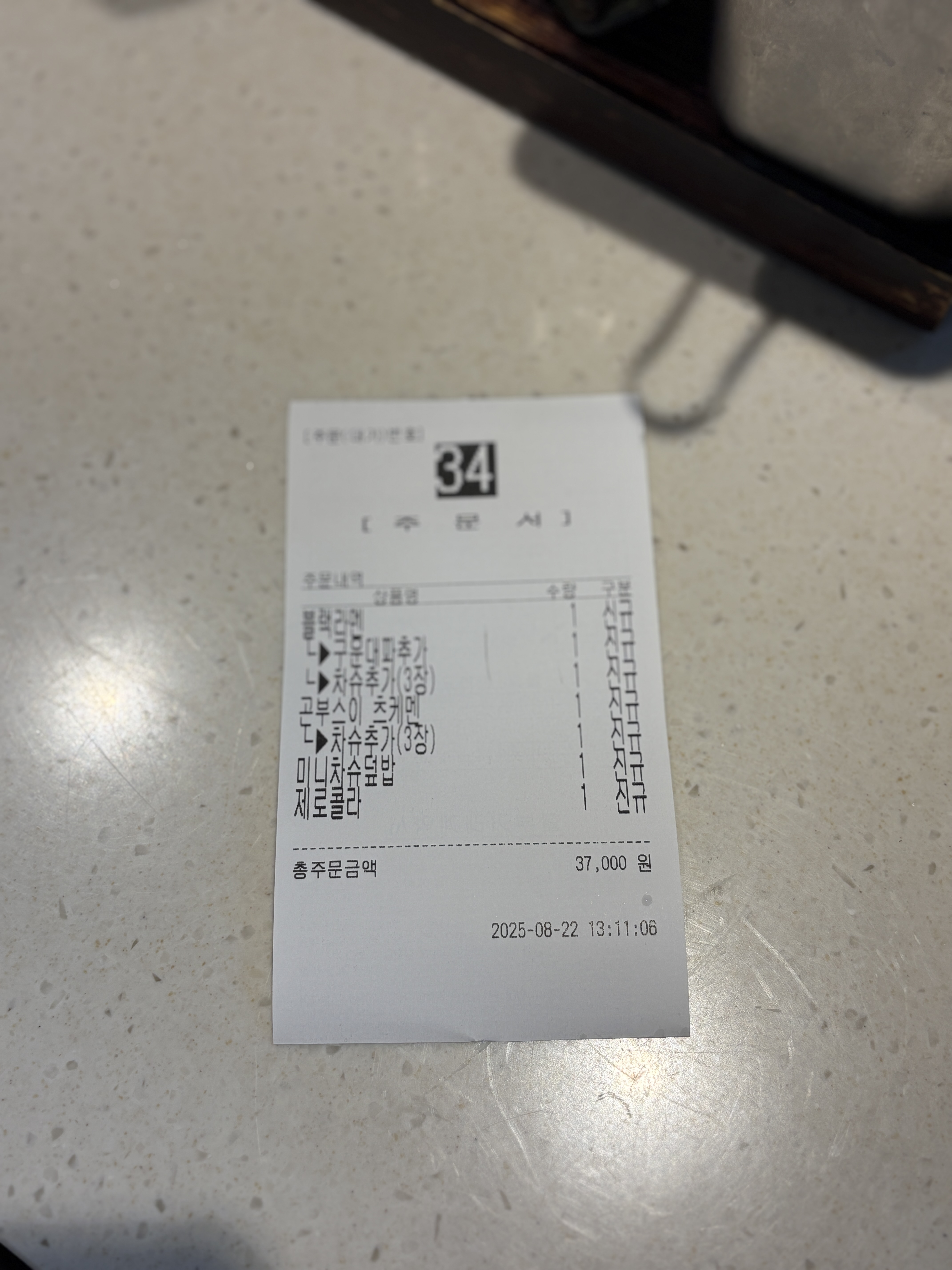 오늘 제가 주문한 메뉴는 위와 같습니다. 구운대파 추가는 이곳에서 선택이 아닌 필수!