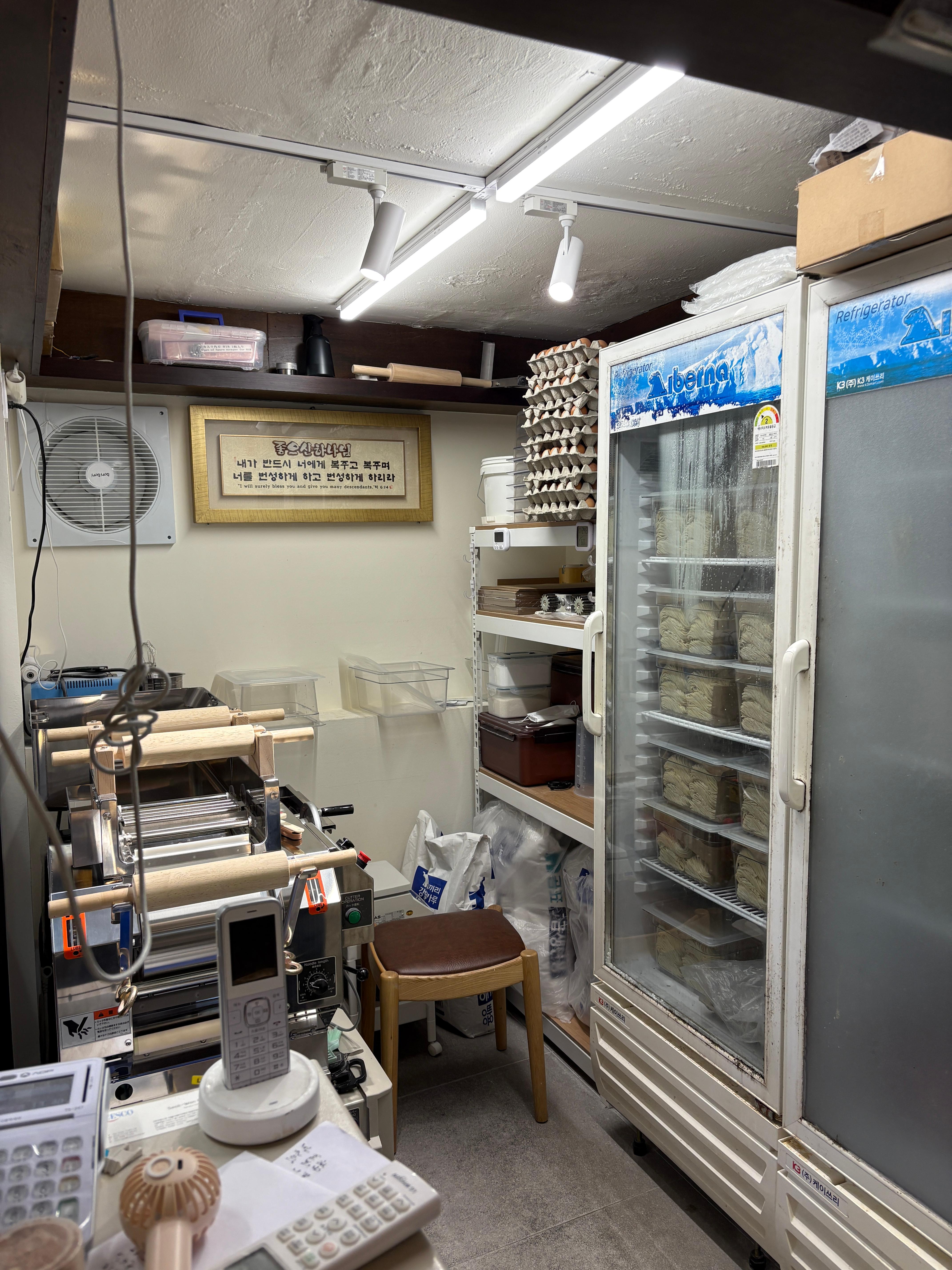 공간은 홍대 상권이 그렇듯 협소한 편입니다만, 다찌를 길게 빼놔서 10명정도는 수용이 가능합니다. 일하시는 주방공간이 좁아서 뭔가 아슬아슬해보이는건 어쩔수없..ㅋㅋ 면을 익히시고 담아내시는 모습을 더 가까이 볼 수 있어서 좋은가요? ㅎㅎ