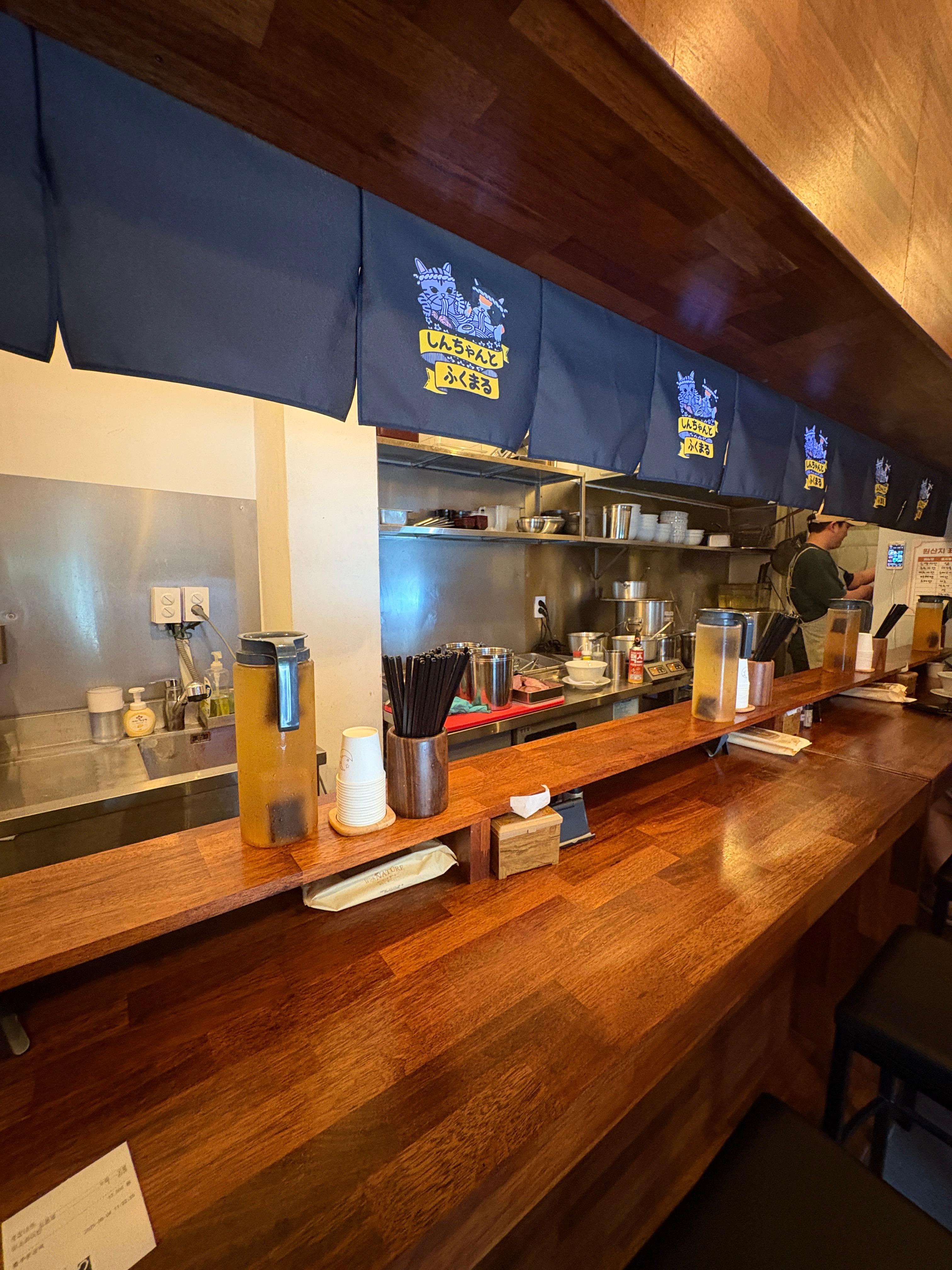 오픈시간 즈음에 와서 그런지 쾌적하게 식사할 수 있었습니다. 사장님 혼자서 운영하고 계셨구요, 전형적인 다찌식의 라멘야 구성입니다. 사장님 응대도 매우 친절하셨습니다. 파이탄 국물 밥없이 다 먹으니 걱정도 해주시더라는..