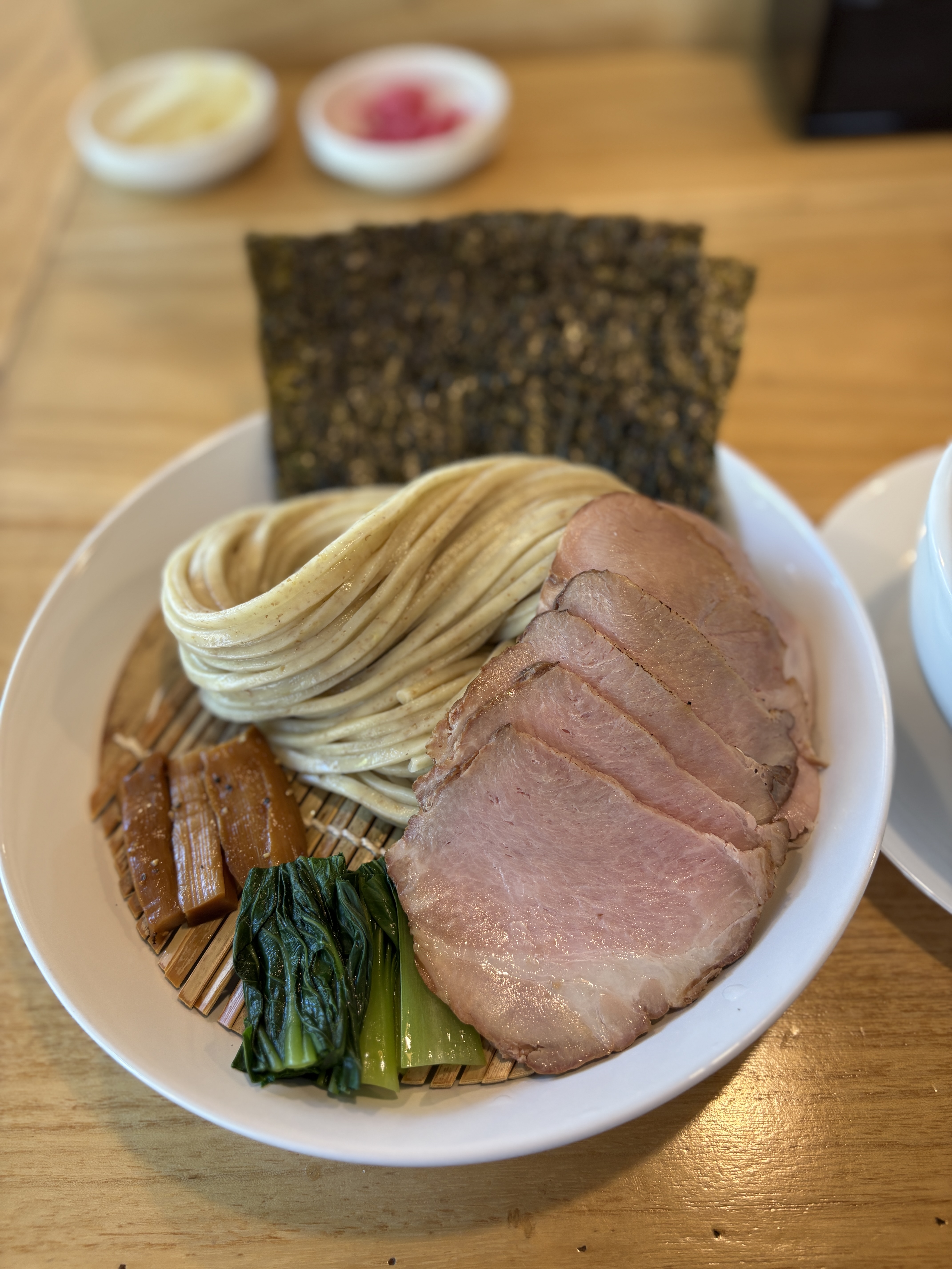 츠케지루의 농도도 진하고 유자(레몬?) 제스트와 적양파가 산뜻함도 잡아주어서 잘 균형잡힌 츠케지루였습니다. 보기도 좋은 라멘이 먹기까지 좋다니!