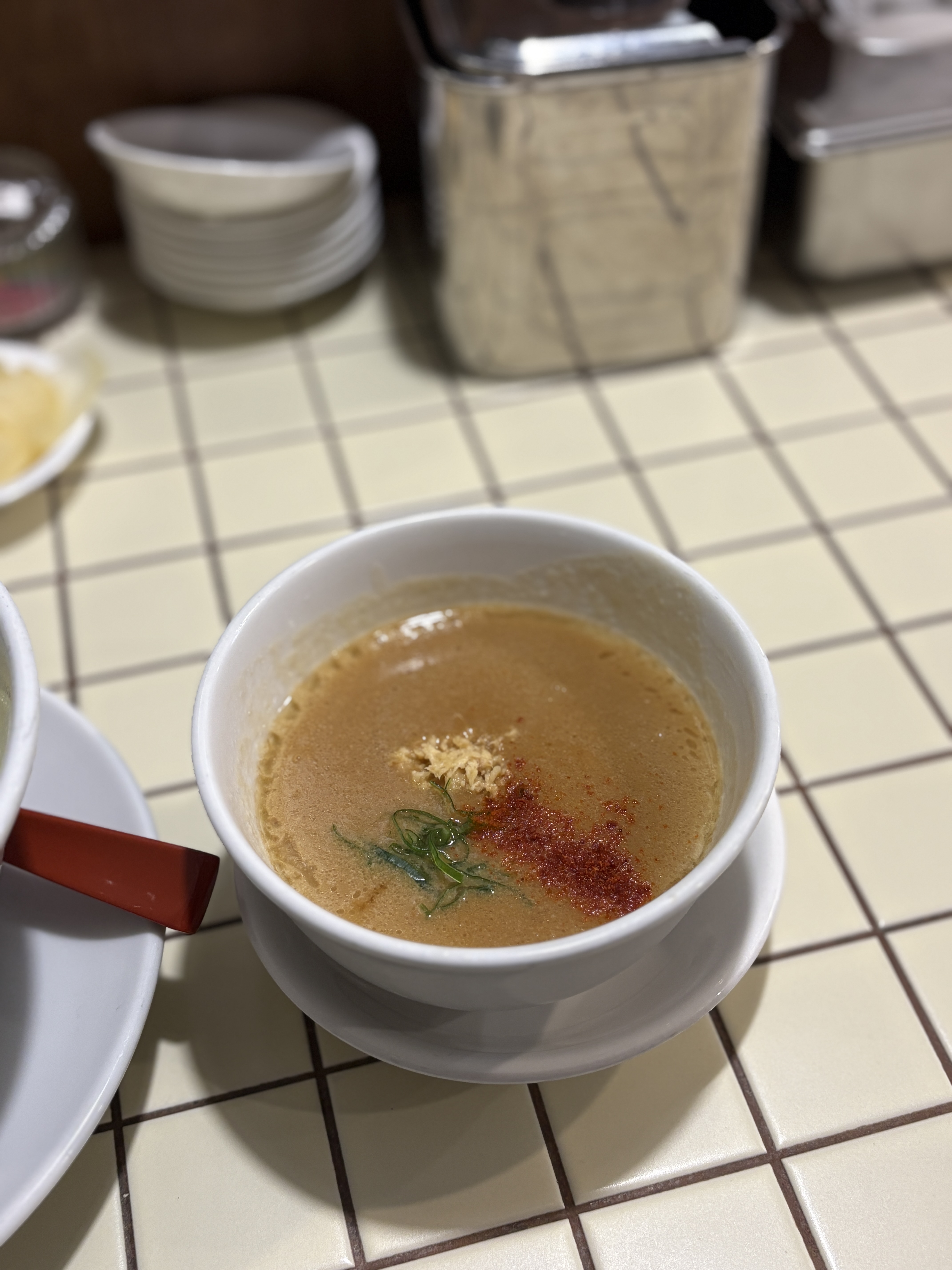 츠케멘을 다 먹고 나서 남은 츠케지루에 와리스프를 청하니 주시는 스프에서 새우머리를 우려낸듯한 진한 새우탕맛이 나더라구요. 와리스프를 넣고 나니까 이제 새우츠케멘이라는 말이 납득이 되는..