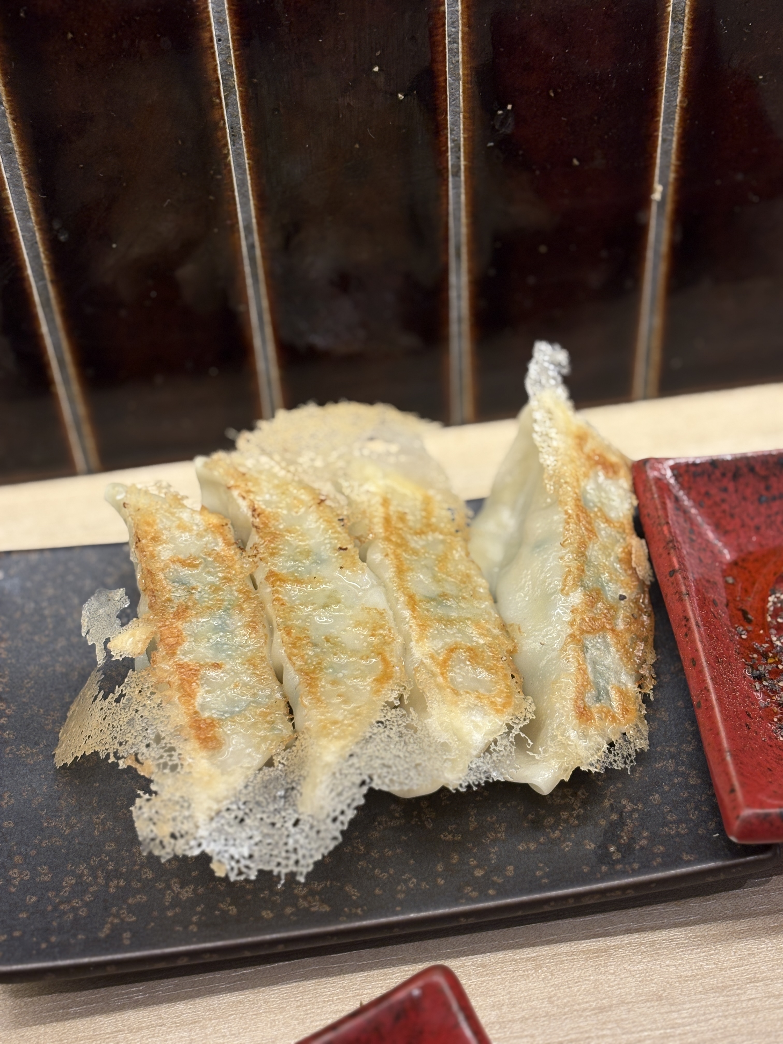 그리고 이날 에피소드가 하나 있었는데요, 나온 그릇 중에 하나에서 겉부분에 밥풀이 살짝 붙어있더라구요. 음식이 담겨나온건 아니라 전 크게 신경쓰지않고 그릇만 바꿔달라고 말씀드렸는데요, 죄송하다고 하시면서 음료서비스를 제안하시더라구요. 그럴려고 말씀드린게 아니라서 정중히 사양하고 라멘에 몰두하고있는데 갑자기 눈앞에 서비스 교자가..