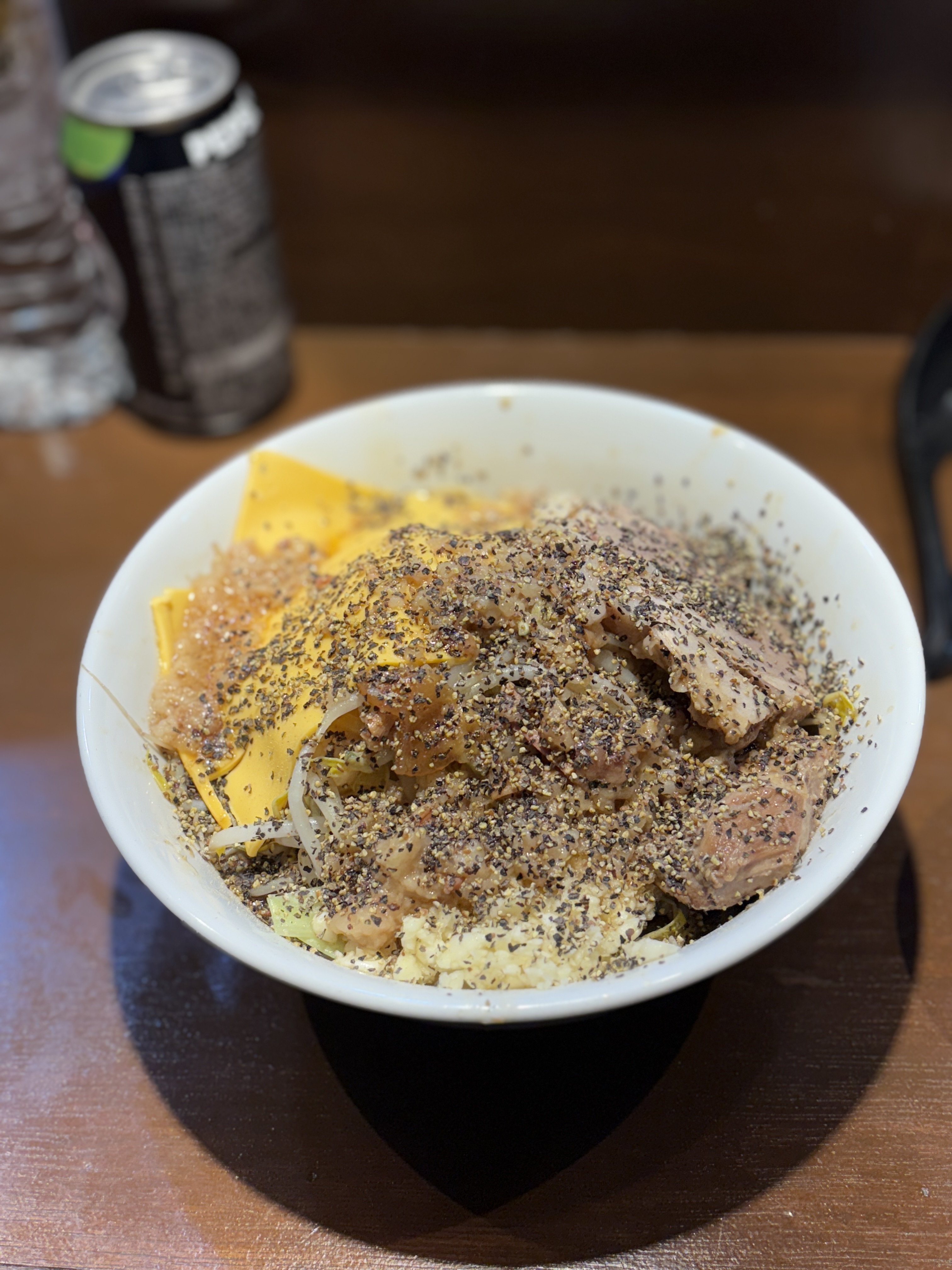 스트레스 푸는 음식을 라멘 분야로 한정한다면 아마 지로케 라멘이 빠질 수 없을 것 같습니다. 일본 라멘에 폭식계 열풍을 가져온 지로 계열 라멘은 압도적인 비주얼도 비주얼이지만 높은 염도와 기름이 특징이기도 해서 '오늘 한번 죽어보자'라는 느낌으로 먹기 좋은(?) 라멘이라고 할 수 있겠습니다.
