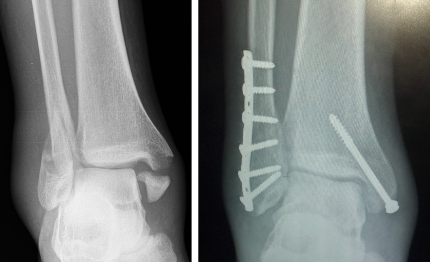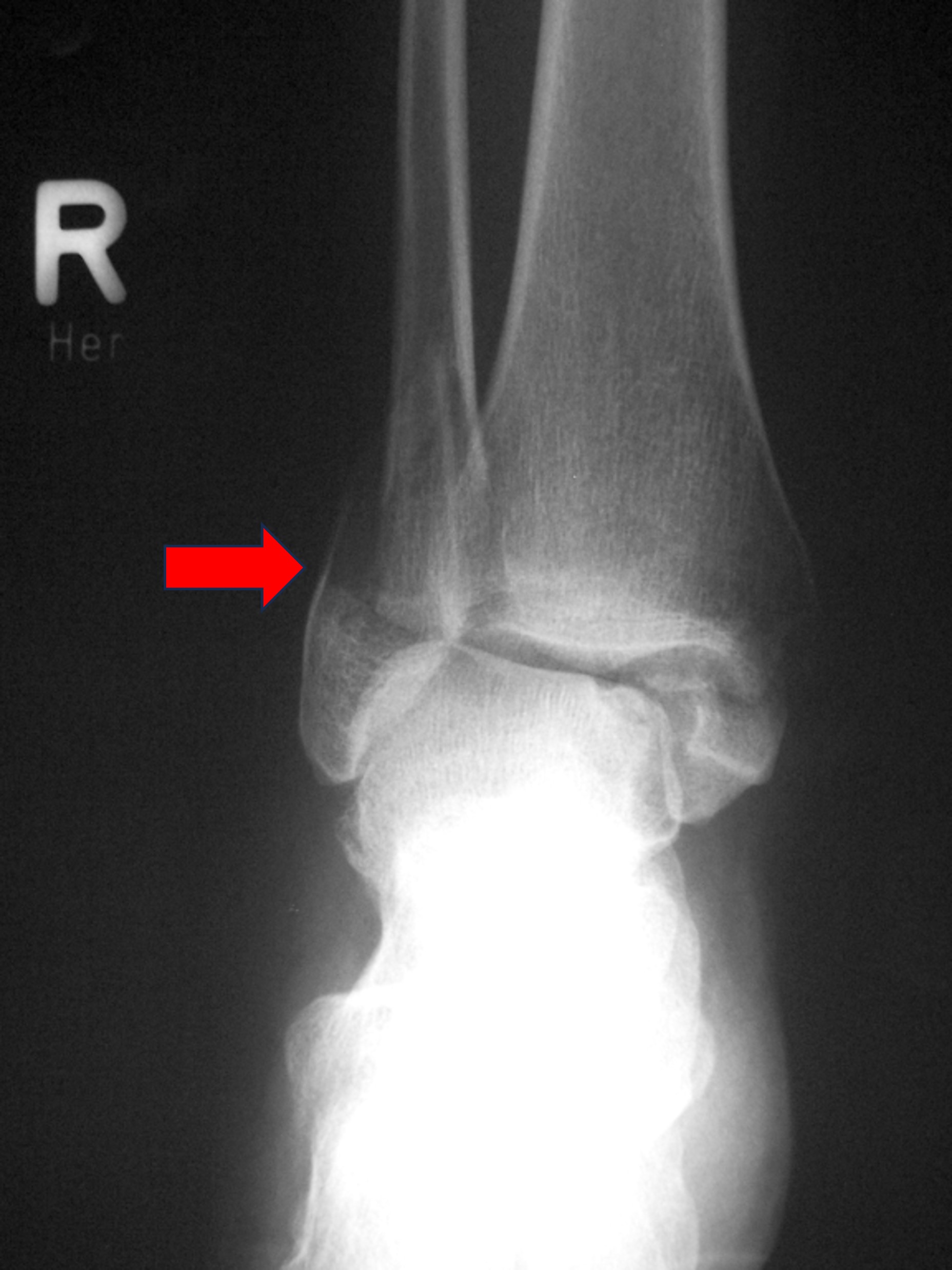 발목 염좌에서 X-ray는 아주 중요한 역할을 하는데요, 바로 골절을 감별해주기 때문입니다. 생각보다 일상생활에서 발생한 발목 염좌로 인해 병원에 오신 분들 중에서, 골절이 동반되는 경우가 많이 있습니다. 격한 운동을 하지 않았더라도, 본인의 체중이 발목에 온전히 실린채로 넘어지거나 미끄러지는 경우에, 하이힐을 신거나 게단을 내려오던 중에도, 골절이 발생하는 경우가 있습니다. 불완전 골절이나 골절 자체가 흔히 말하는 '금만 간 골절'인 경우, 다시말해 골절편의 전위 (어려운 말이죠)가 없는, 또 쉽게 말하자면, '뼈는 부러졌지만 부러진 뼈조각이 원래 자리에서 벗어나지 않은' 골절이라면 X-ray로 진단 후에 석고 부목으로 고정을 함으로써 비수술적 치료를 시도할 수 있습니다.