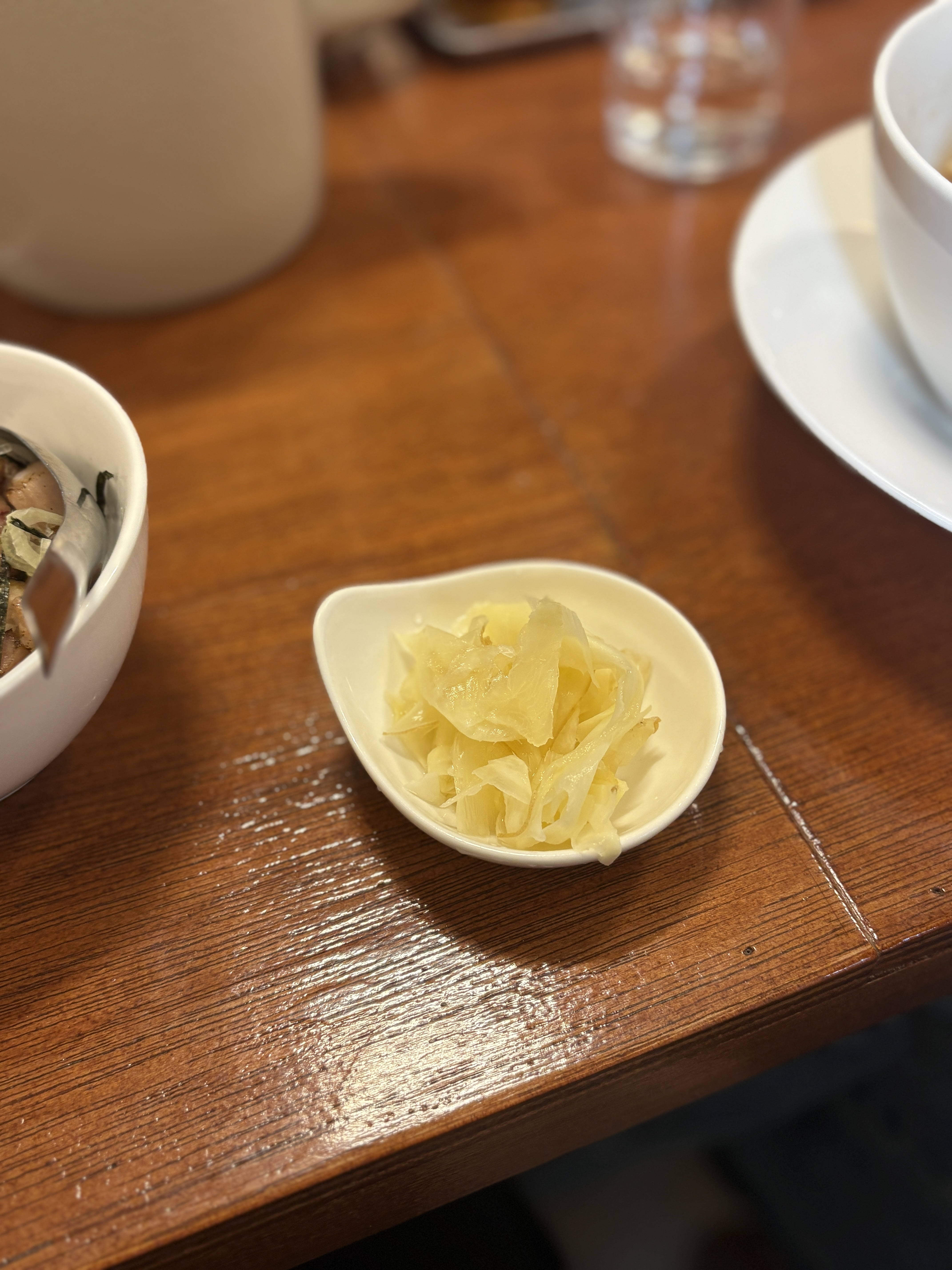 반찬통이 자리에 있진 않고 요청하면 초생강을 따로 내어주십니다.