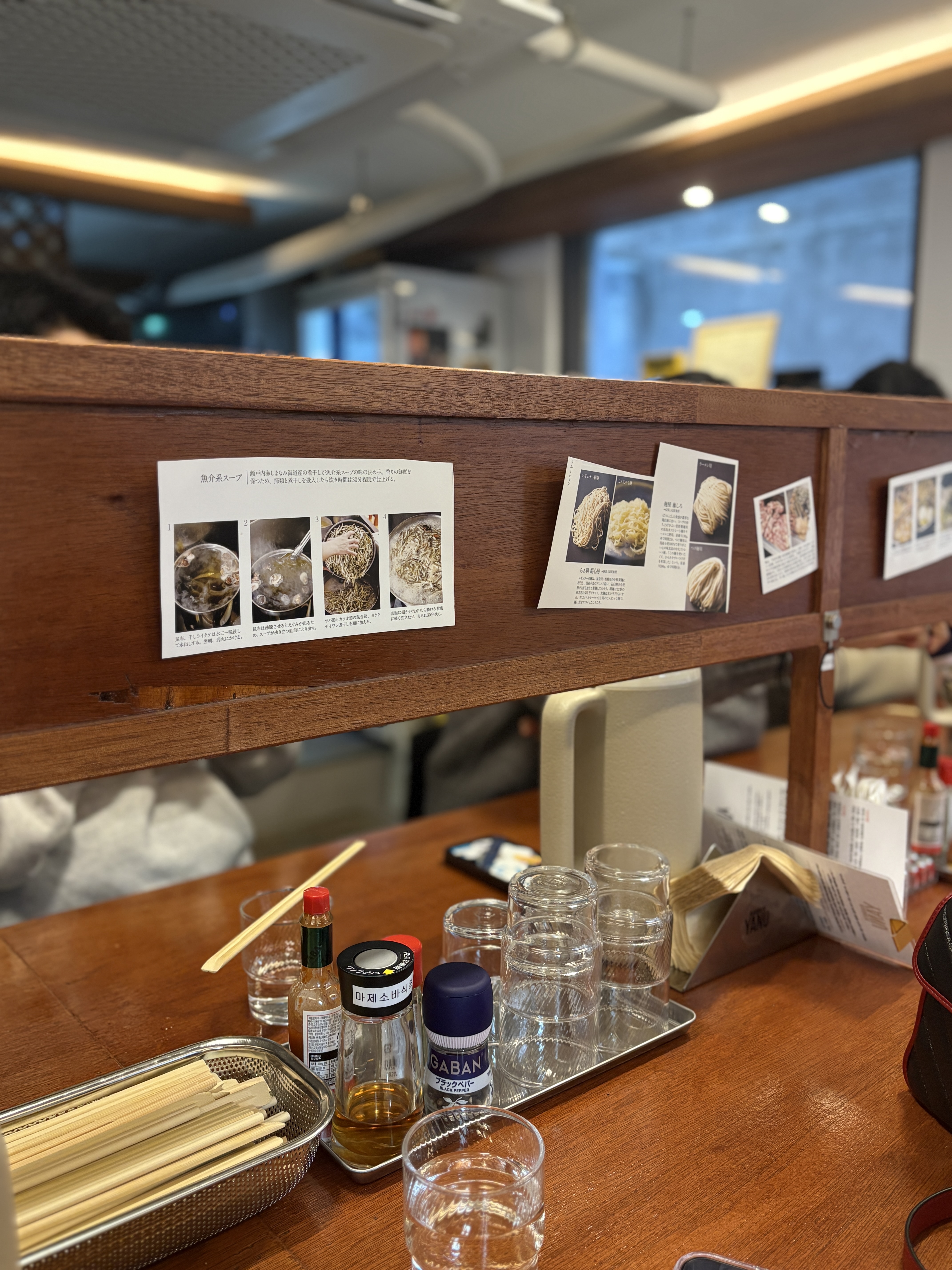 면은 전립분을 넣은 스트레이트 면입니다. 하카타 돈코츠에 쓰이는 호소멘보다는 좀 더 두꺼운 느낌이구요, 푹 익혀내서 주시기에 식사시간동안 면이 스프에 끼치는 영향이 덜해서 좋았습니다. 간스이의 방해도 적었구요. 돈코츠는 저도 바리카타를 좋아하는데 청탕에선 야와에 가까운 맛을 더 좋아하게 되는 것 같습니다.