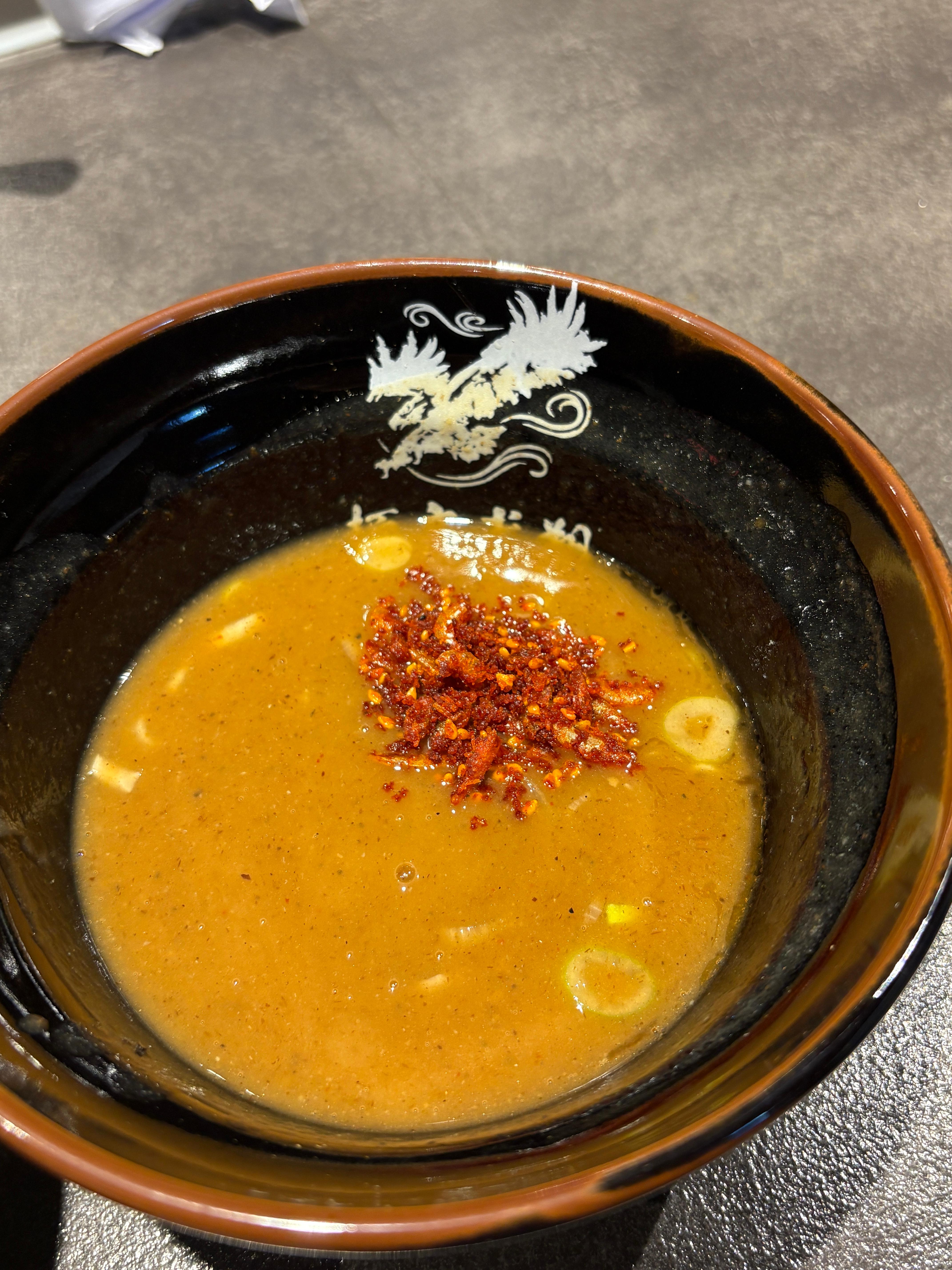 멘타카무쇼 사장님은 츠케멘으로 유명한 도쿄의 멘야무사시에서 츠케멘을 배우신 분입니다. 때문에 멘타카무쇼의 츠케멘에서는 멘야무사시의 느낌을 많이 받을 수 있는데요, 약간은 달짝지근한 츠케지루가 가장 큰 특징입니다. 오픈 초기에는 말그대로 농후츠케멘이라는 장르에 걸맞은 느낌이었는데 최근에는 본점의 츠케지루가 이전만큼 농후하진 않다는 라오타들의 평가가 있었어요. 게다가 장점이었던 가쿠니 차슈도 광교점에만 남아있던 터라..