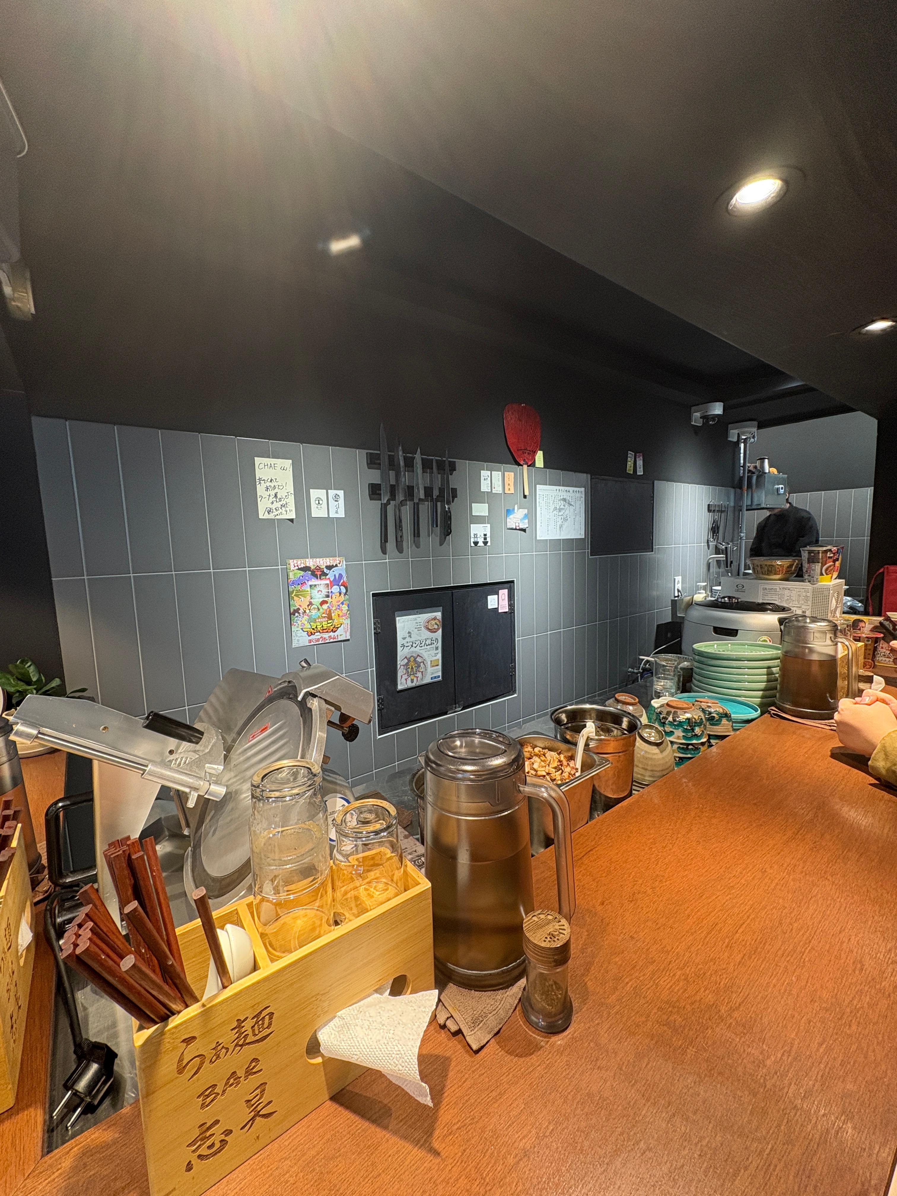 가게 내부는 상당히 좁고 6석밖에 안되는 곳이지만 조리하시는 곳은 상당히 정돈이 잘 되어있는 느낌입니다. 담려계 라멘을 하시는 사장님들의 공통적인 특징이랄까요. 이전에는 못봤던 차슈조각들이 담긴 바트도 있네요. 이날은 배가불러 못먹어봤지만 이곳 차슈밥도 호평이 자자합니다.