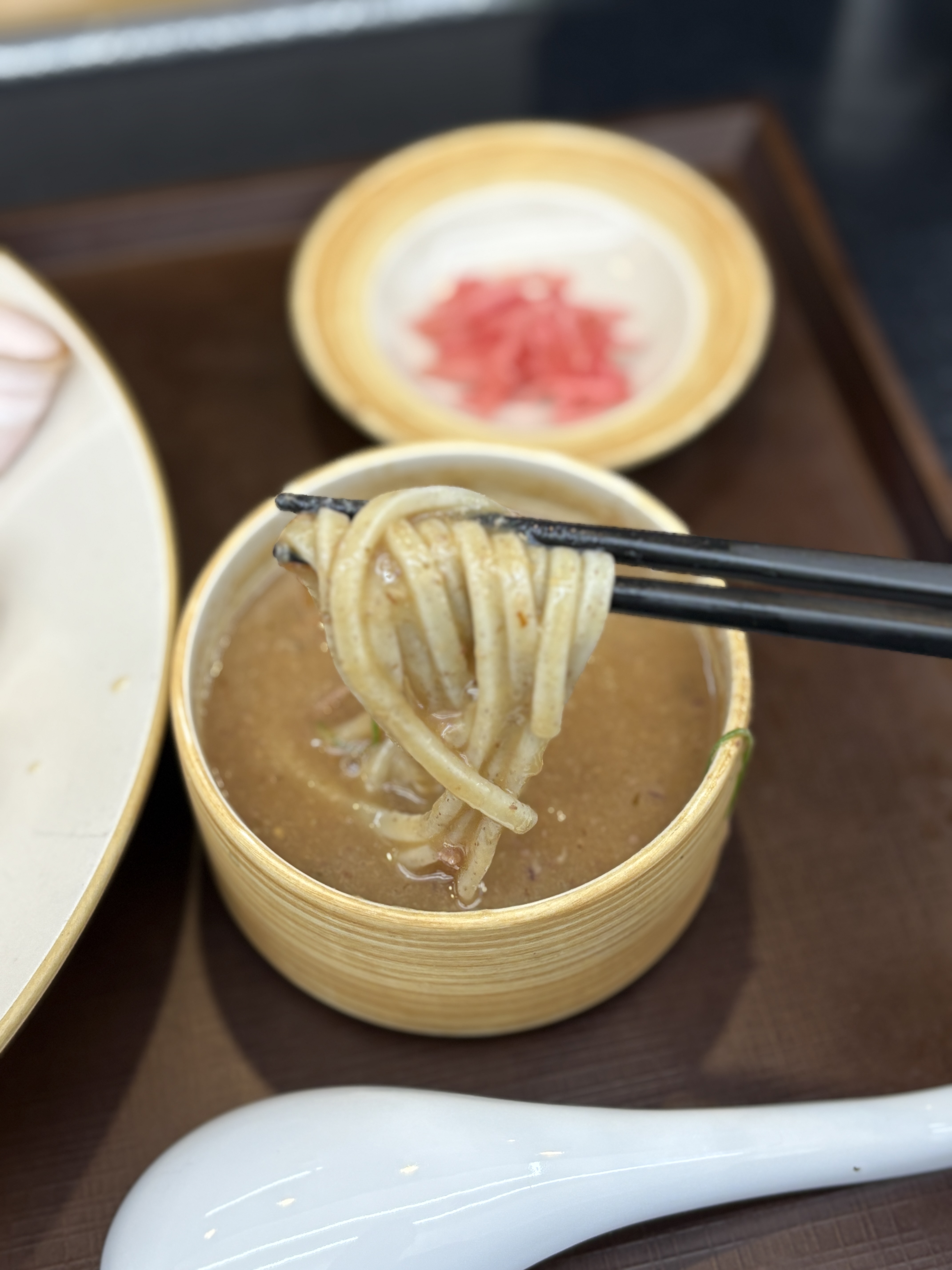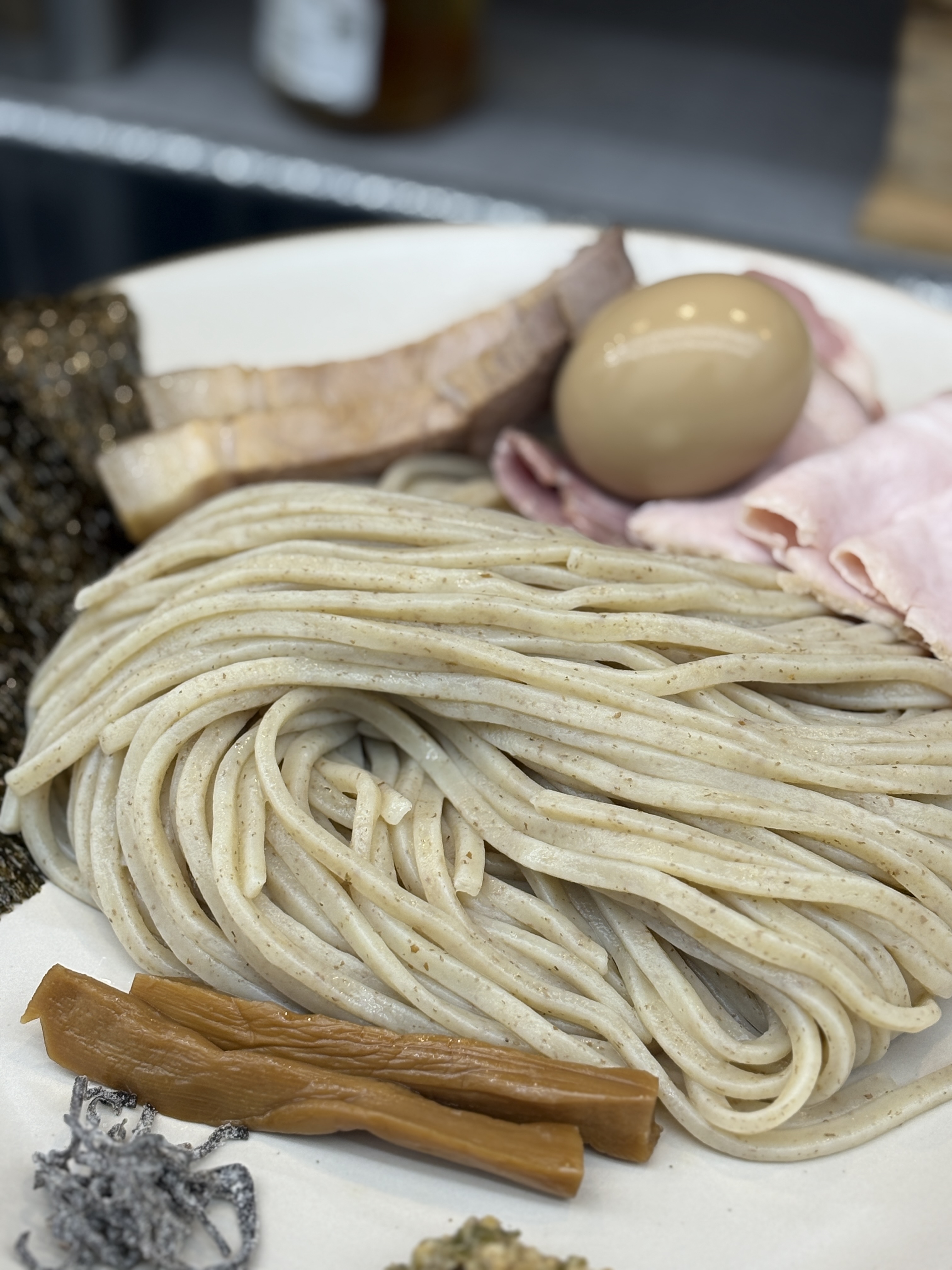츠케지루도 변화를 많이 주셨다고 하시는데요, 이전에는 교카이 츠케멘이었는데 어계향을 빼고 돼지와 닭 위주로 바꾸셨다고 하십니다. 음 그전 츠케지루도 개인적으로 나쁘지 않았는데.. 그리고 어분가루를 빼면 확실히 점도가 낮아지는 감은 있습니다. 내부에 고기는 충분히 여전히 들어있고, 맛도 좋은 츠케지루지만 기존 것이 제게는 좀 더 취향이었어요.