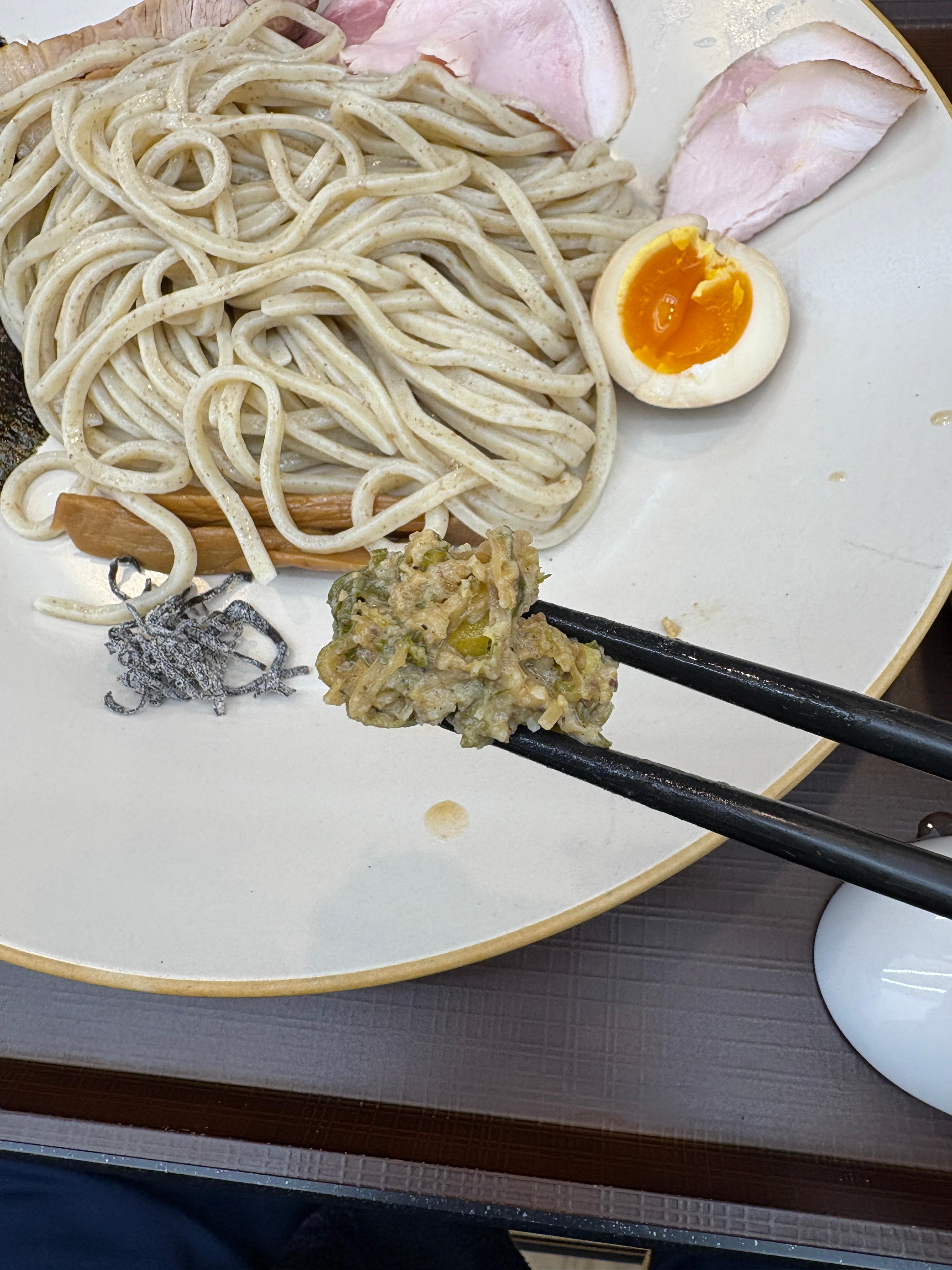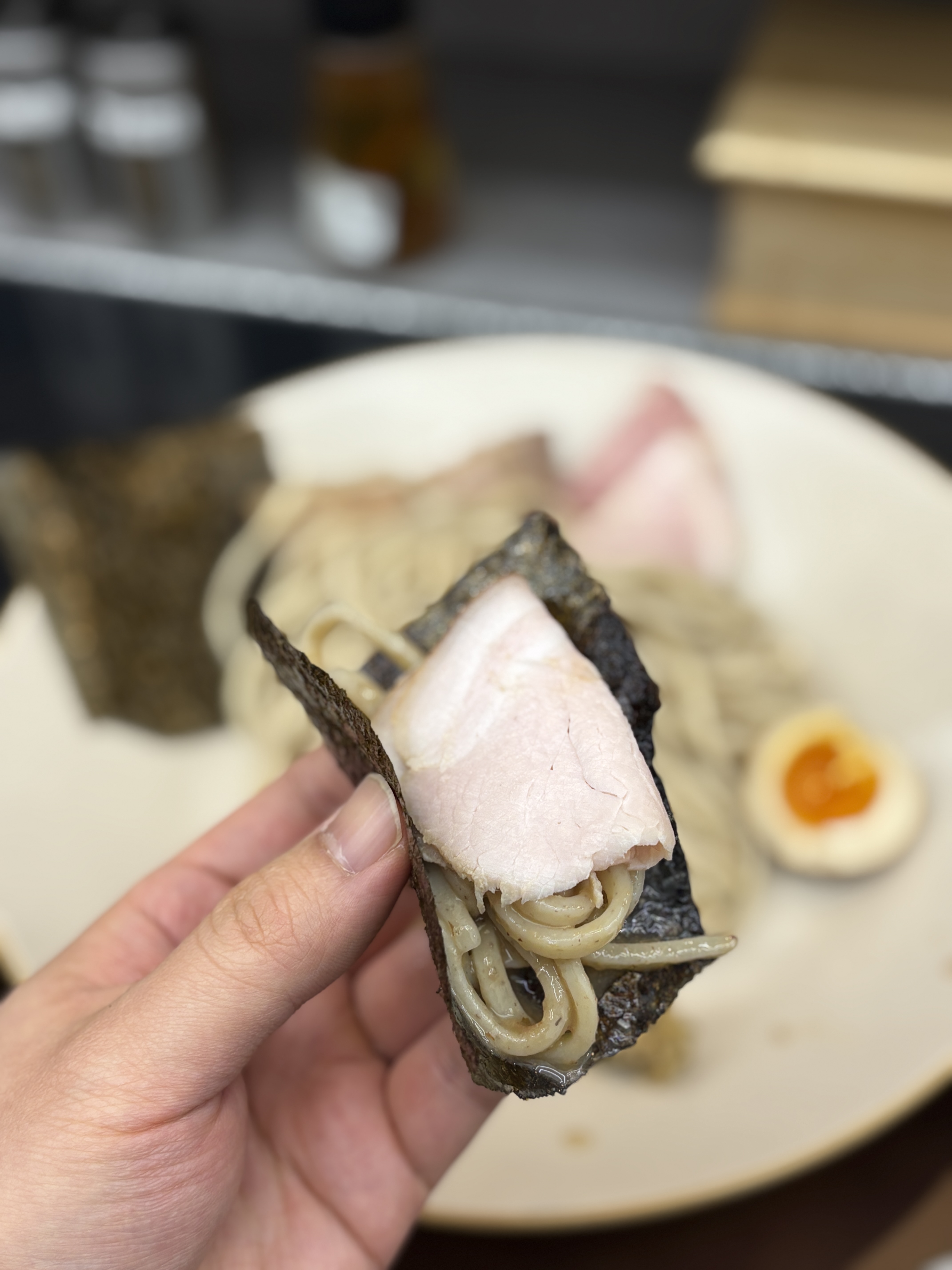 츠케지루도 변화를 많이 주셨다고 하시는데요, 이전에는 교카이 츠케멘이었는데 어계향을 빼고 돼지와 닭 위주로 바꾸셨다고 하십니다. 음 그전 츠케지루도 개인적으로 나쁘지 않았는데.. 그리고 어분가루를 빼면 확실히 점도가 낮아지는 감은 있습니다. 내부에 고기는 충분히 여전히 들어있고, 맛도 좋은 츠케지루지만 기존 것이 제게는 좀 더 취향이었어요.