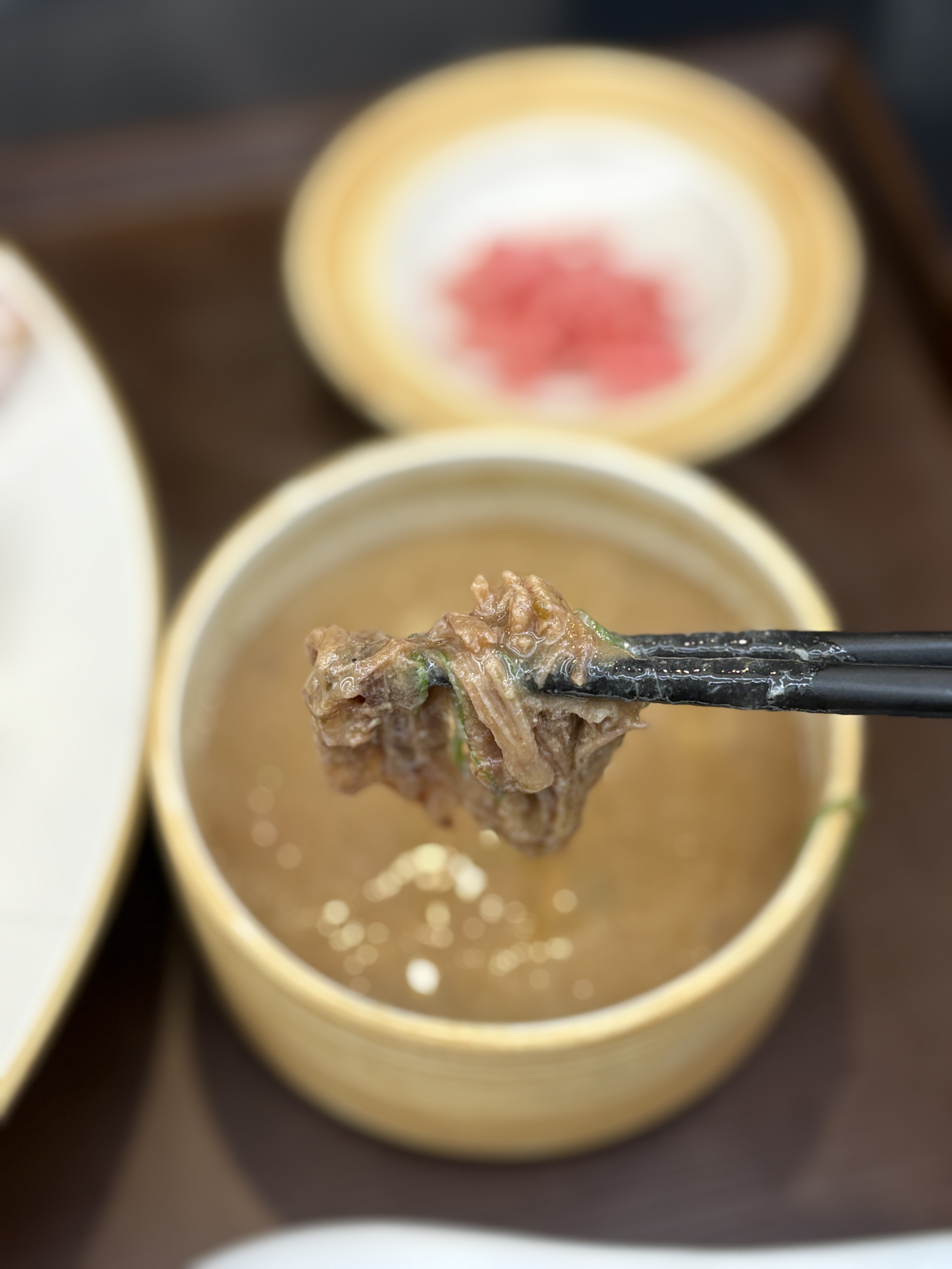 삼겹차슈는 모양에 변화가 생겼습니다. 두께감은 더 있는데 그래서 어쩔 수 없이 퍽퍽해지는 느낌은 나요. 내주시기전에 스팀을 한번 맞추면서 타래도 발라서 주시지만.. 사실 타래를 바르면서 스팀을 하는 작업이 맛을 극대화시키는지는 모르겠어요. 차슈라기보다는 단단한 수육을 먹는 느낌이 더 났습니다. 차슈는 뭔가 아쉬웠어요.