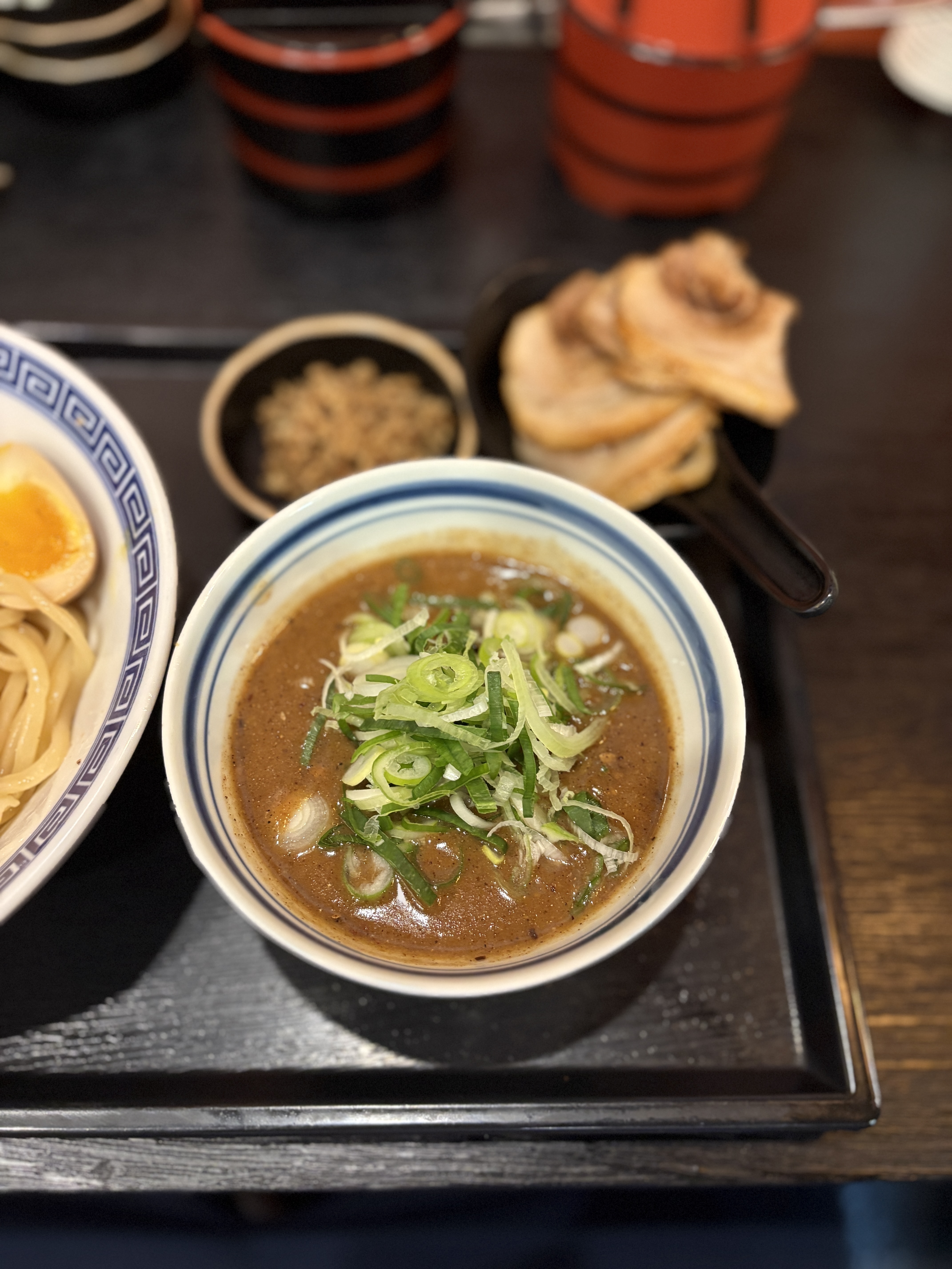 츠케지루에는 대파를 올려주셨구요, 전형적인 교카이/돈코츠 베이스의 농후한 츠케지루입니다. 염도도 꽤 강해서 매니아들도 좋아할 맛입니다. 비슷한 맛을 국내에서 굳이 꼽자면 광화문의 츠키정도인거같아요.