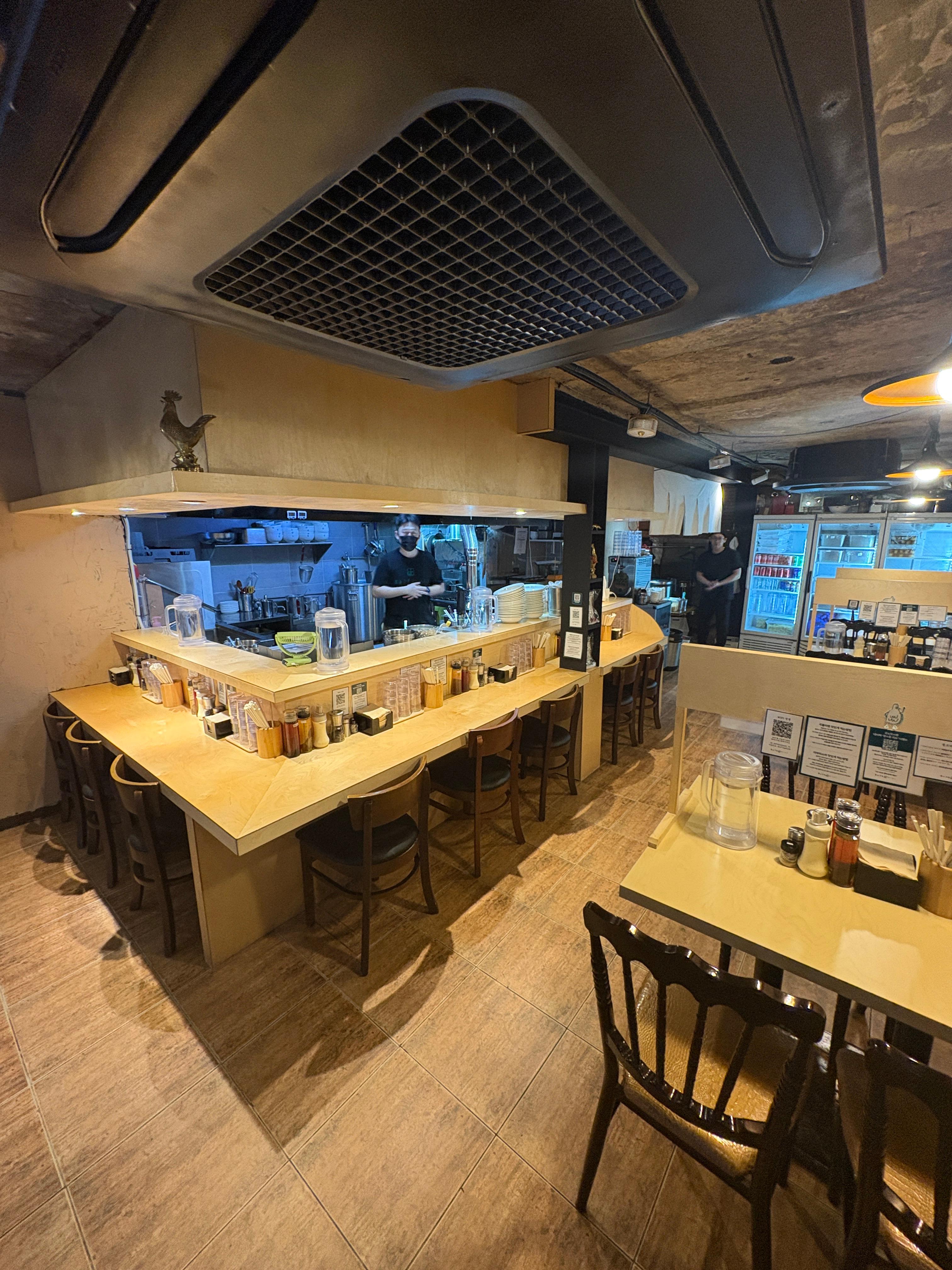 가게 내부는 생각보다 좌석 수가 많았어요. 다찌 석이 도합 8석이 준비되어있었고 4인용 테이블이 3개 준비되어있었습니다. 테이블의 경우 칸막이도 있어서 1,2인 손님들을 한테이블에 같이 배치할 수도 있는 구조입니다.