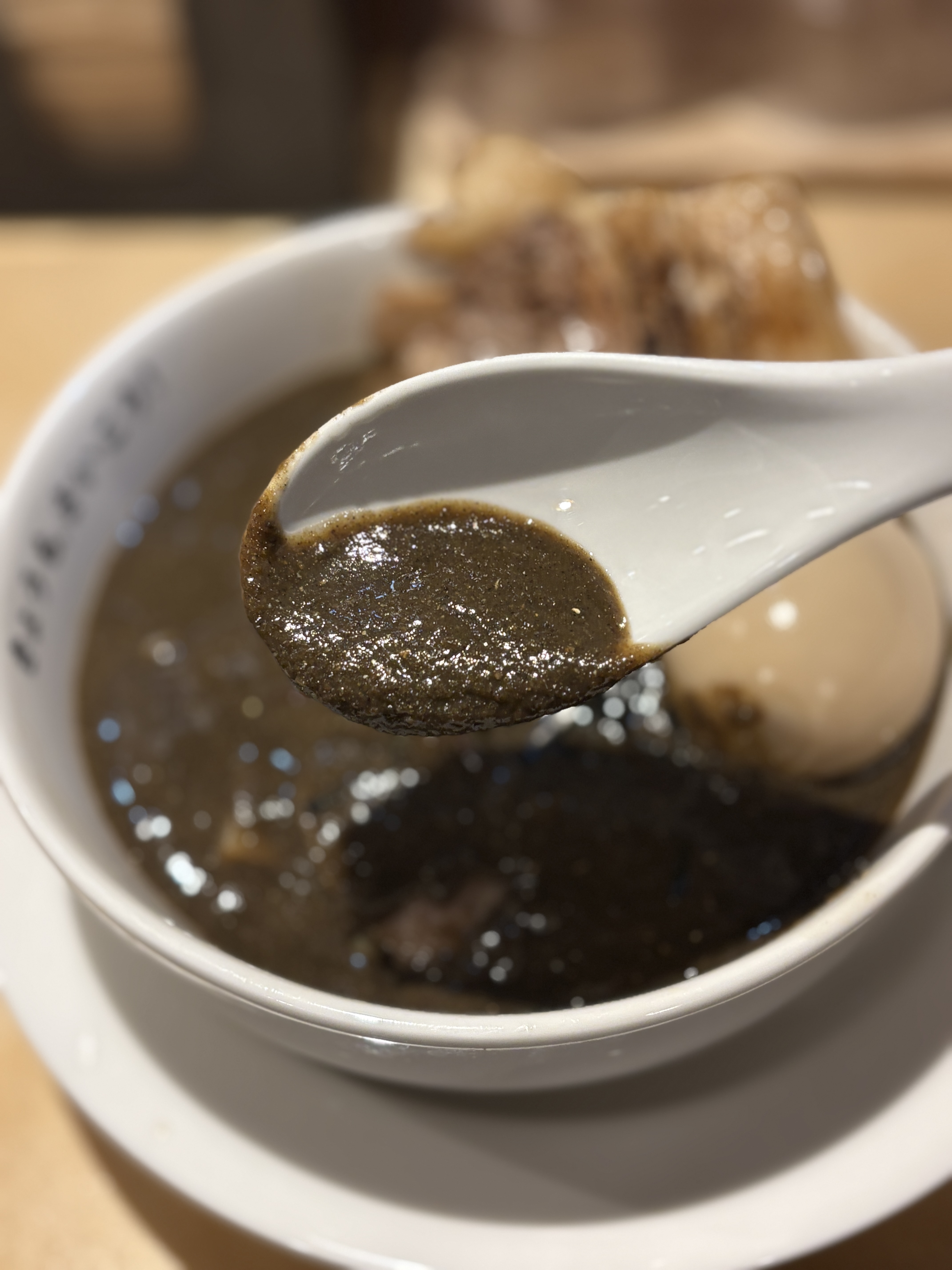 변화한 점도가 보이시나요? 이렇게 하니까 마치 킨카라만에서 제가 좋아하던 니보시쇼유파이탄과 같은 정도의 점도가 되었습니다. 실제로 스프도 멸치향의 진함은 남아있으면서 동물계 육수가 들어가서 더욱 꿀떡꿀떡 넘어가는 스프가 되었더라구요.