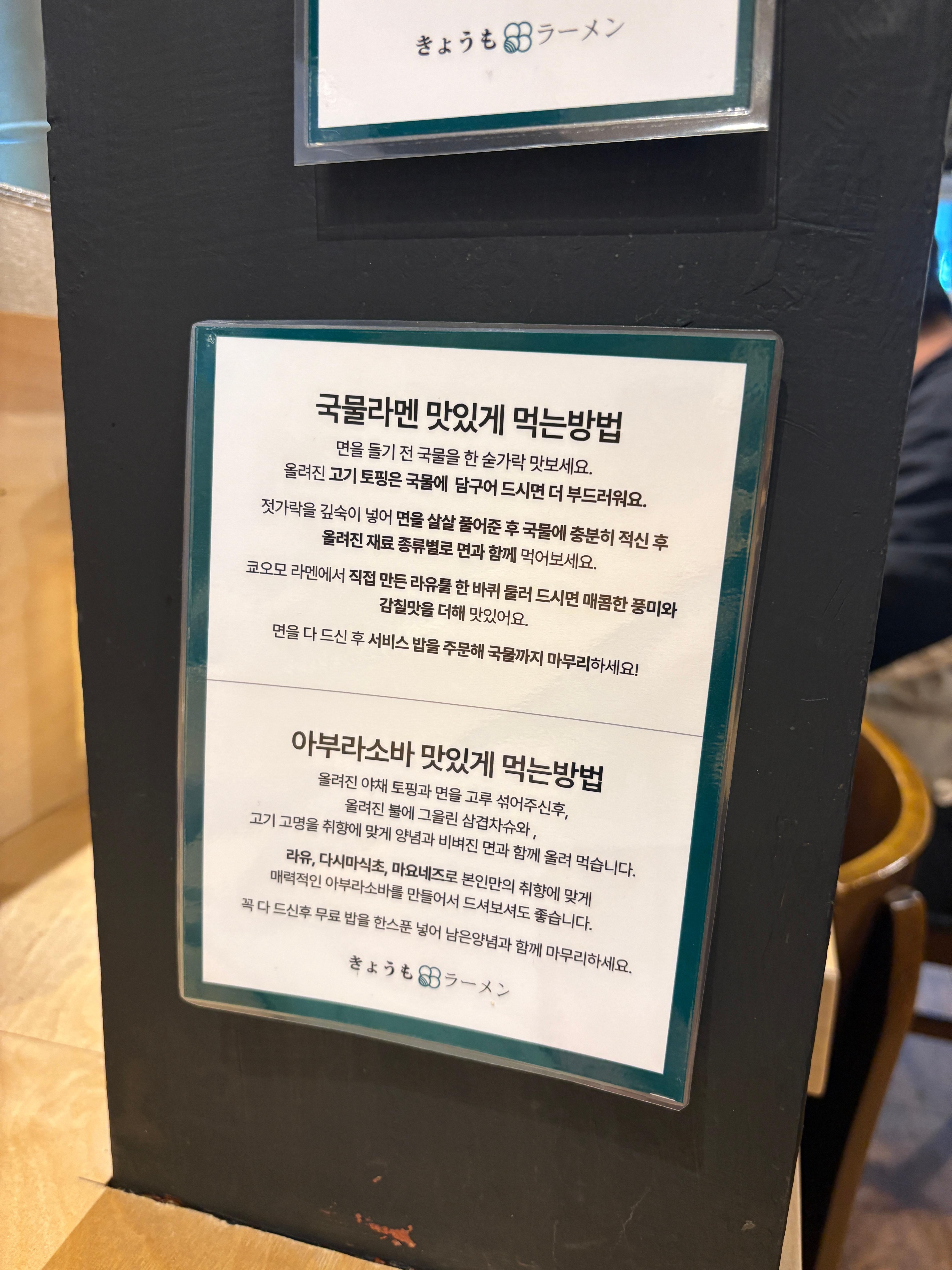 초객들을 위해서 라멘을 맛있게 먹는 방법을 역시 설명해주고 계시구요, 오늘 제가 주문할 니보시 아부라소바는 아래 아부라소바 맛있게 먹는 방법을 기준으로 먹으면 될 것 같네요.