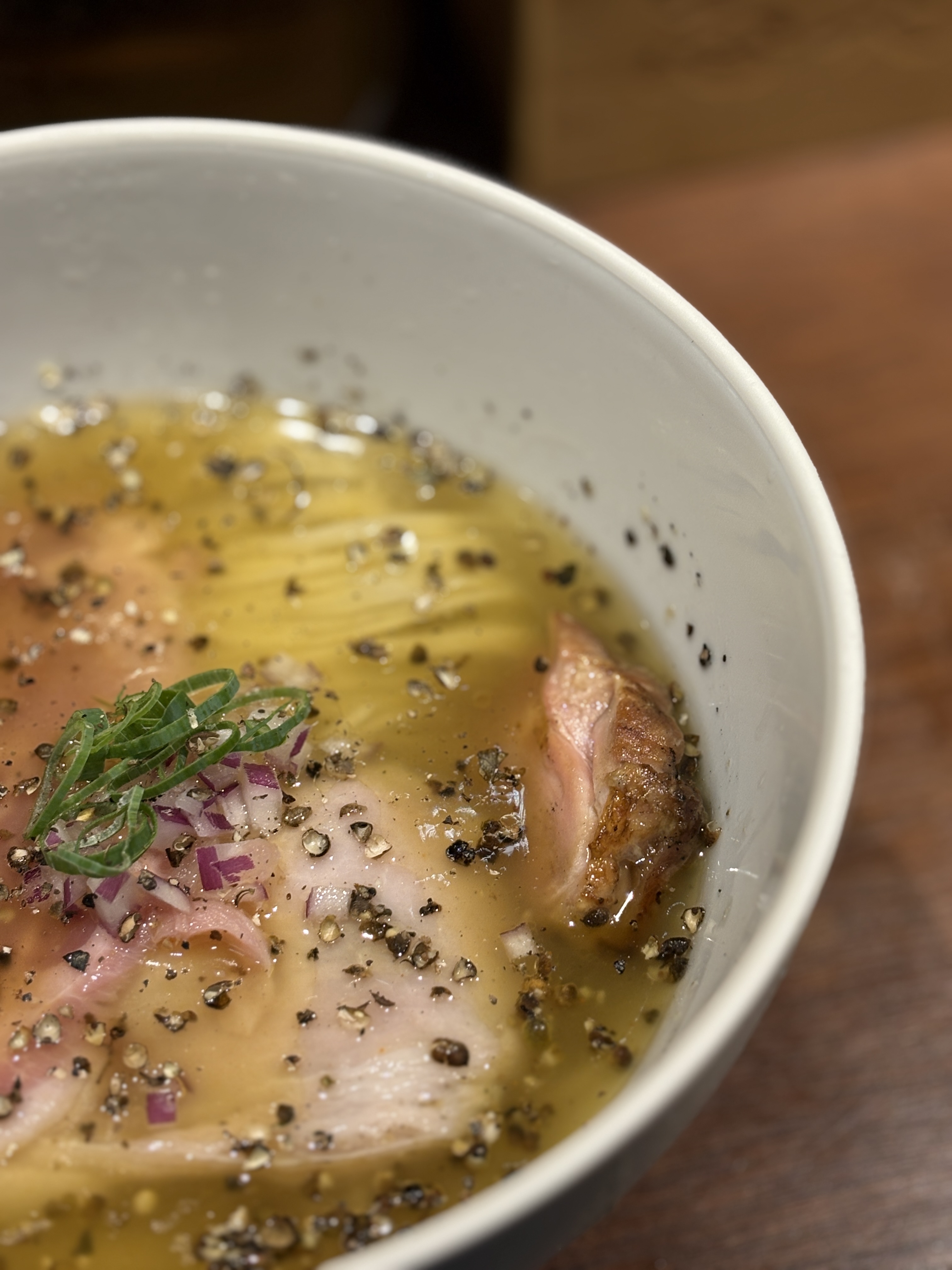 츠케지루에 담궈져 있어서 그런지 유난히 윤기가 나보이던 닭정육 차슈.