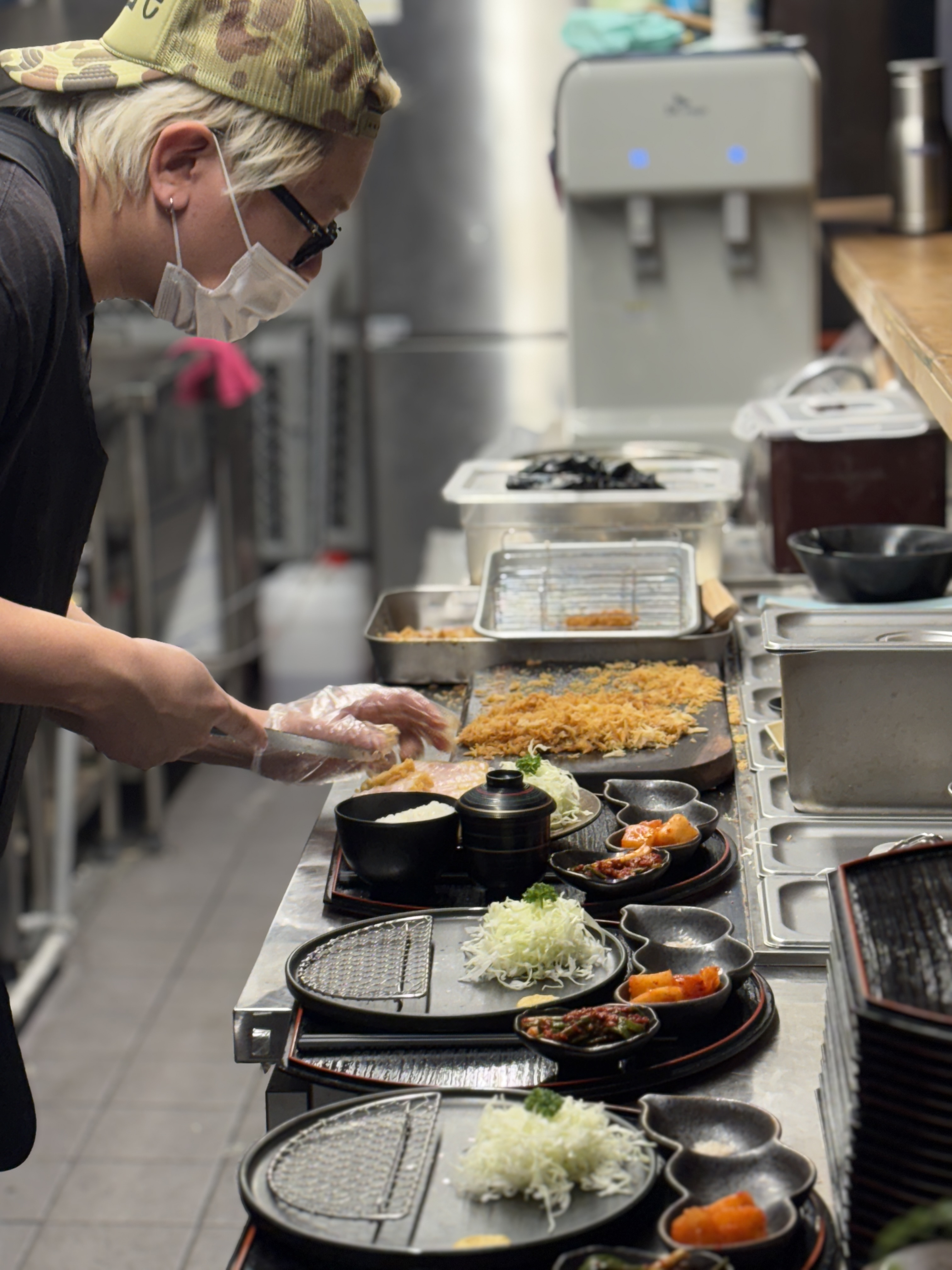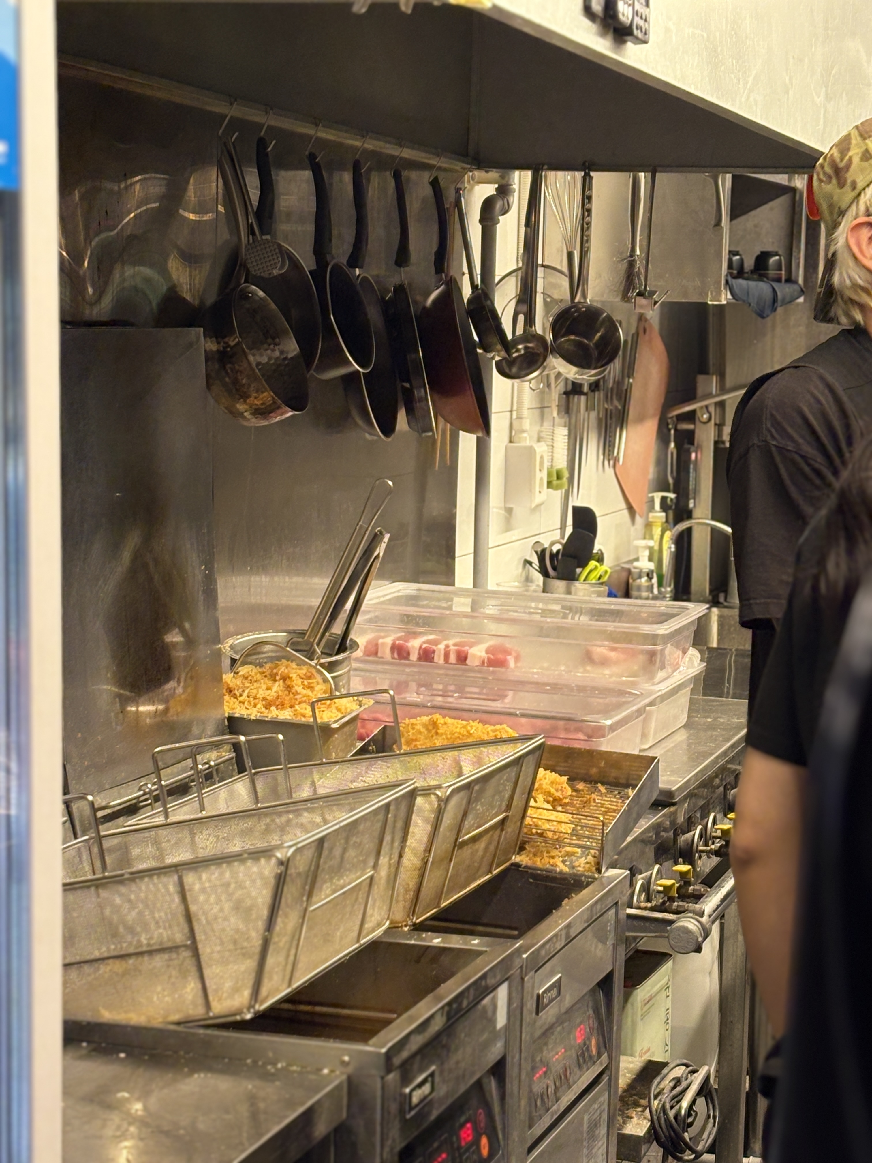 좌석은 모두 바 좌석으로 되어있습니다. 바로 앞에서 돈카츠를 만드시고 튀기는 과정을 볼 수 있는 장점이 있구요, 플레이팅 하시는 모습도 다 직관이 가능합니다. 준비해둔 고기에 튀김옷을 입히시는 과정을 찍어봤습니다. 사장님이 따로 요식업에 대한 경력이 있으셨던건 아니라고 하시는데 정말 대단하십니다. 가게가 돌아가는 시스템 자체가 굉장히 고민을 많이 하시고 동선을 짜두신것 같구요, 요식업 경험이 없는데도 이렇게 구성을 해서 준비하셨다는게 대단하다고 느껴졌습니다. 돈카츠에 관해서는 사장님이 일선에서 다 작업하십니다.
