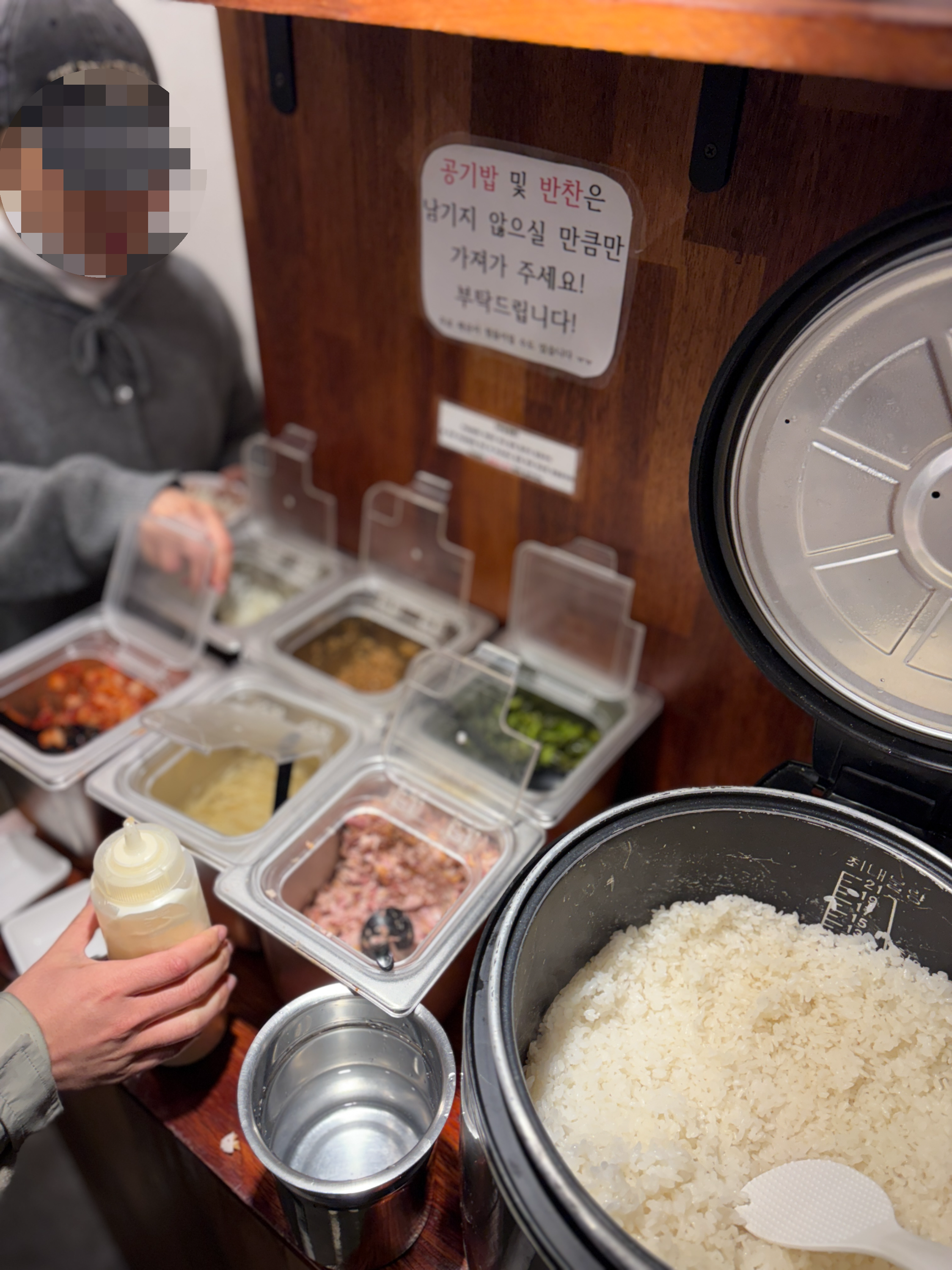 하쿠텐이 인기있는 요소중에 하나인 무료 셀프바입니다. 커다란 밥솥에 있는 갓지은 밥이 무료이구요, 좌측에는 여러 반찬들이 준비되어있습니다. 늦은시간에 가면 구경도 못한다는 자투리 차슈조각도 준비되어있습니다. 일찍 방문하니 이런 호사도 누리는군요 ㅎ