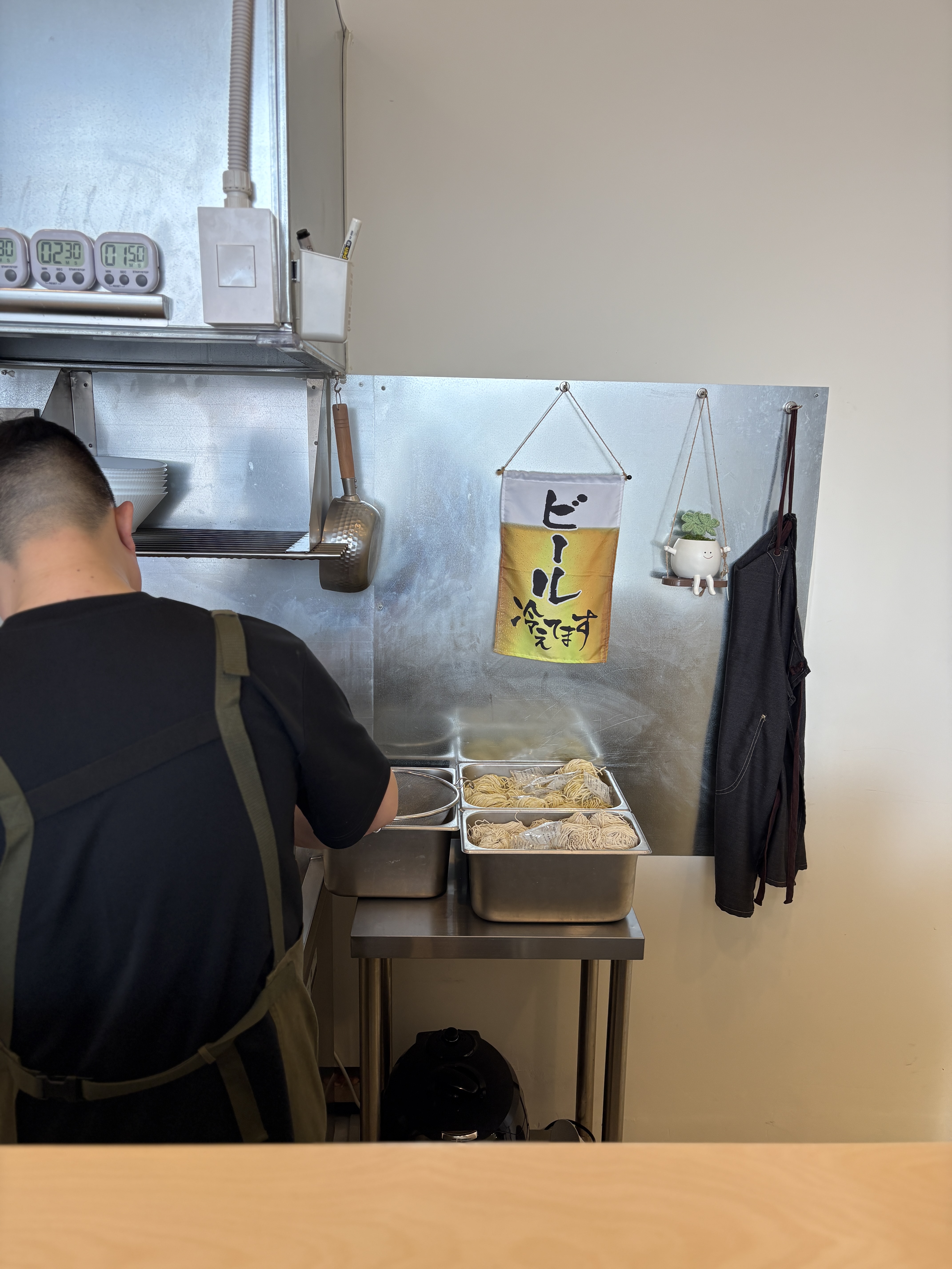 내부는 모두 다찌 좌석으로 되어있었구요, 조리하시는 공간이랑 매우 가까워서 사장님의 손길을 직접 눈으로 좇을 수 있는 장점이 있습니다. 면 삶는 타이머 세팅하시는 것도 다 보이다보니 ㅎㅎ  내 면은 꼬들하게인데 몇초 삶으시나 이런것도 볼 수 있구요.