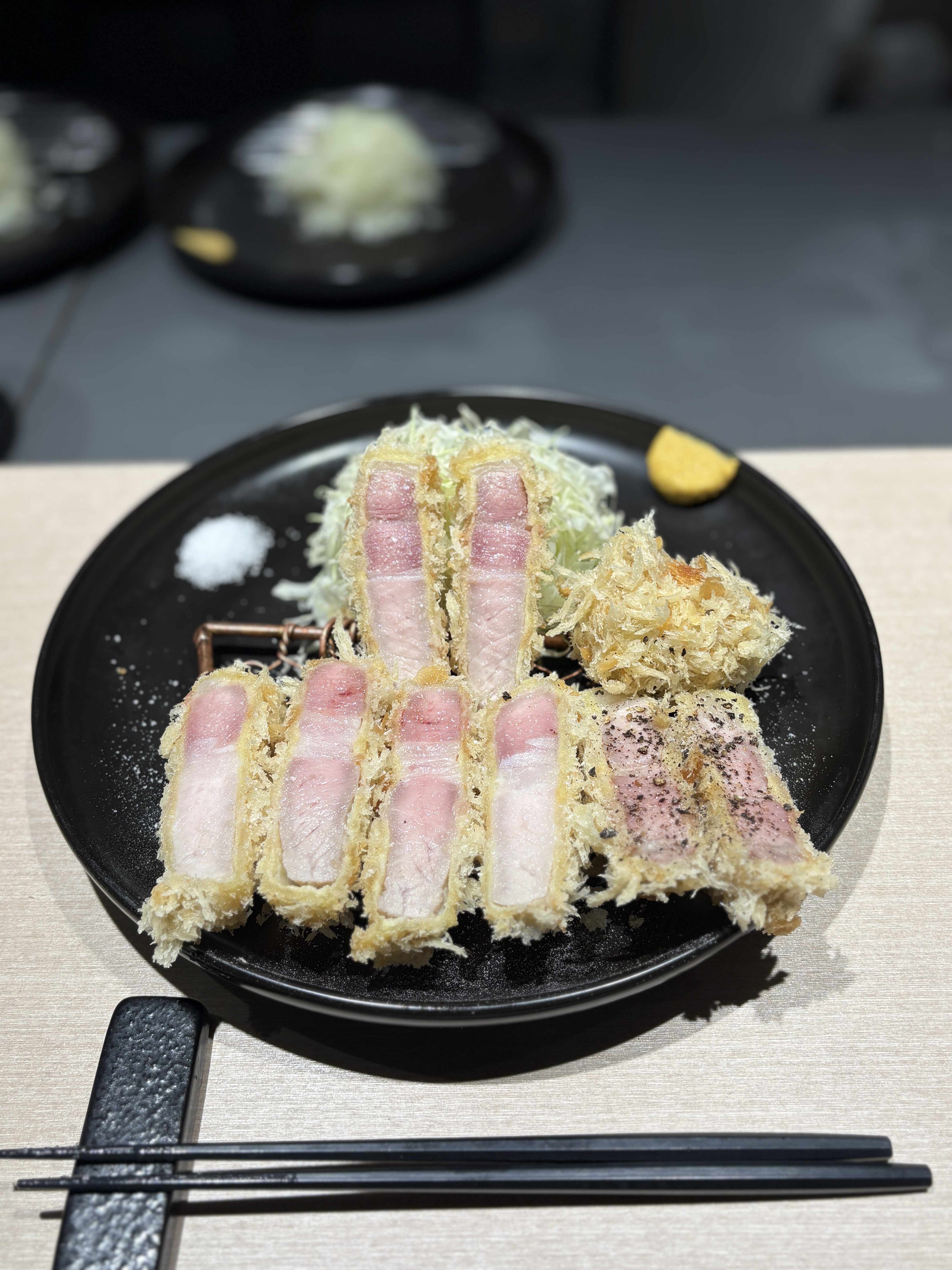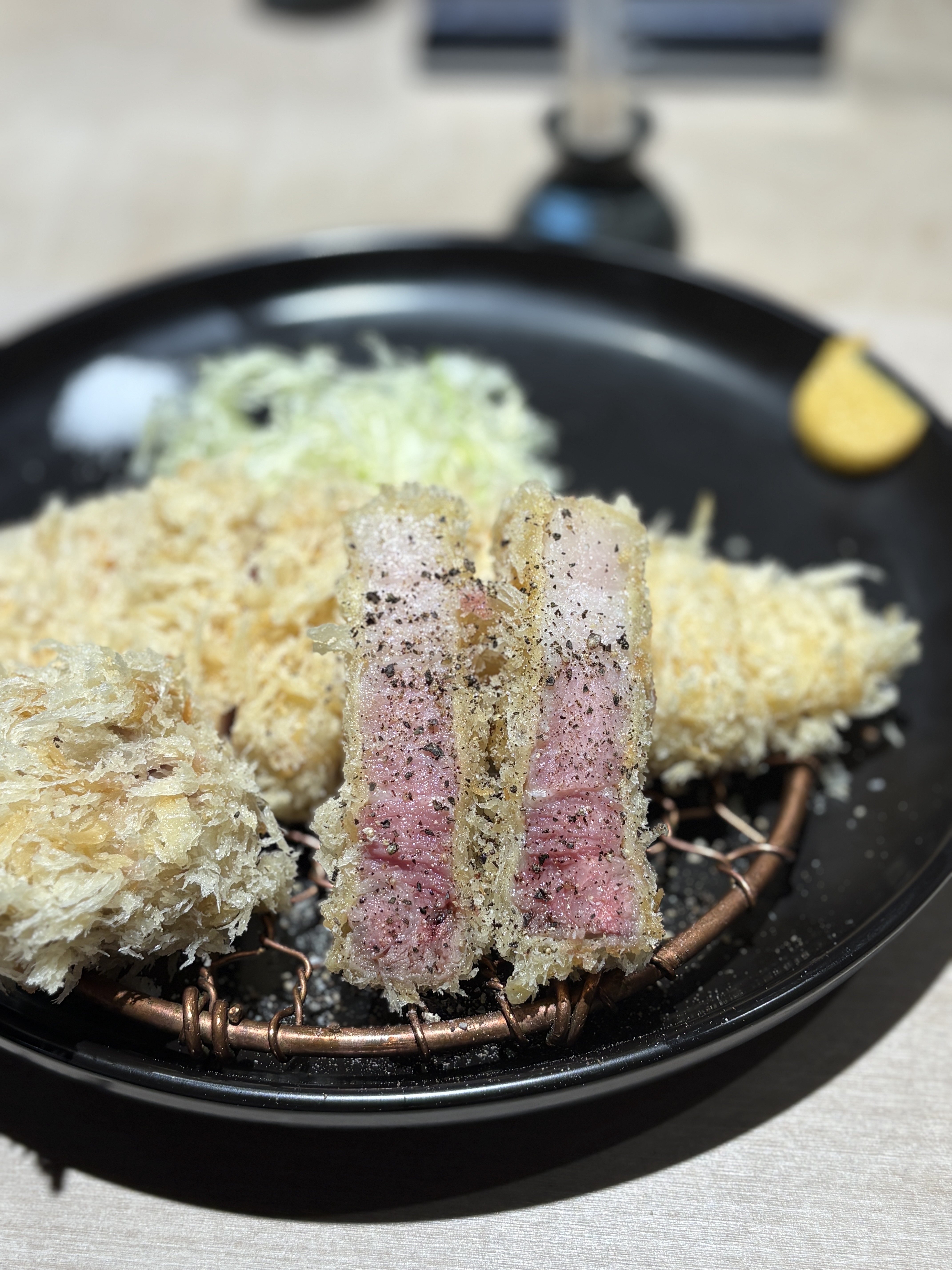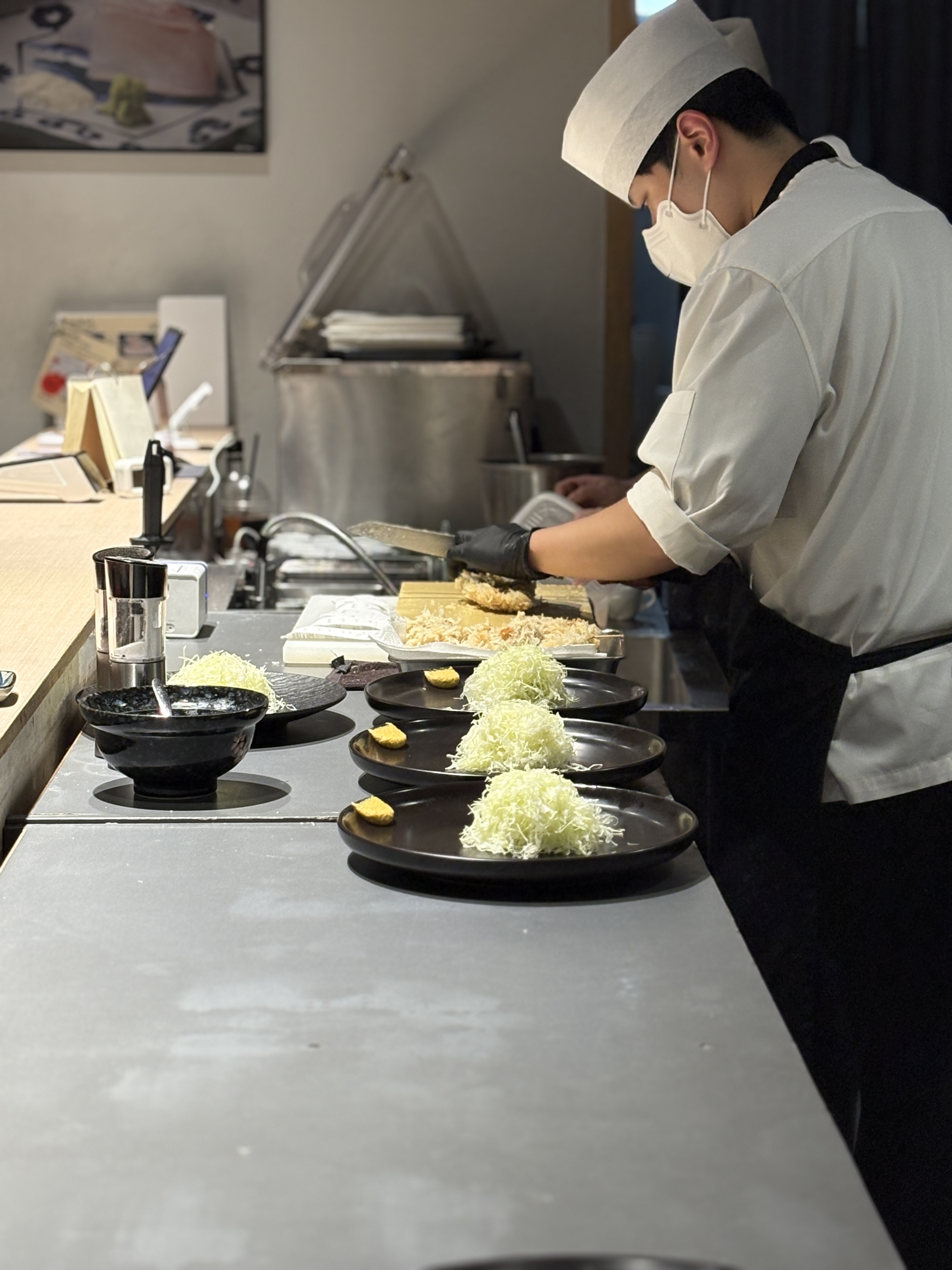 저도 집에서 일식카츠를 몇번 만들어봐서 느끼는건데 이런 단면의 원육을 일반 소비자들은 절대로 구할수가 없습니다. 타 돈카츠 업장에서도 실제로 1일에 3-4식 정도 나온다고 하시더라구요. 나름 특수부위 소비가 잘 되는 상권에서 원육을 공수해도 그렇다고 하시니 이게 절대적인 수량이 부족하다는게 좀 더 체감이 됩니다. 안그래도 궁금했던 순종 듀록의 특상을 먹게된건 정말 운이 좋다고밖에..