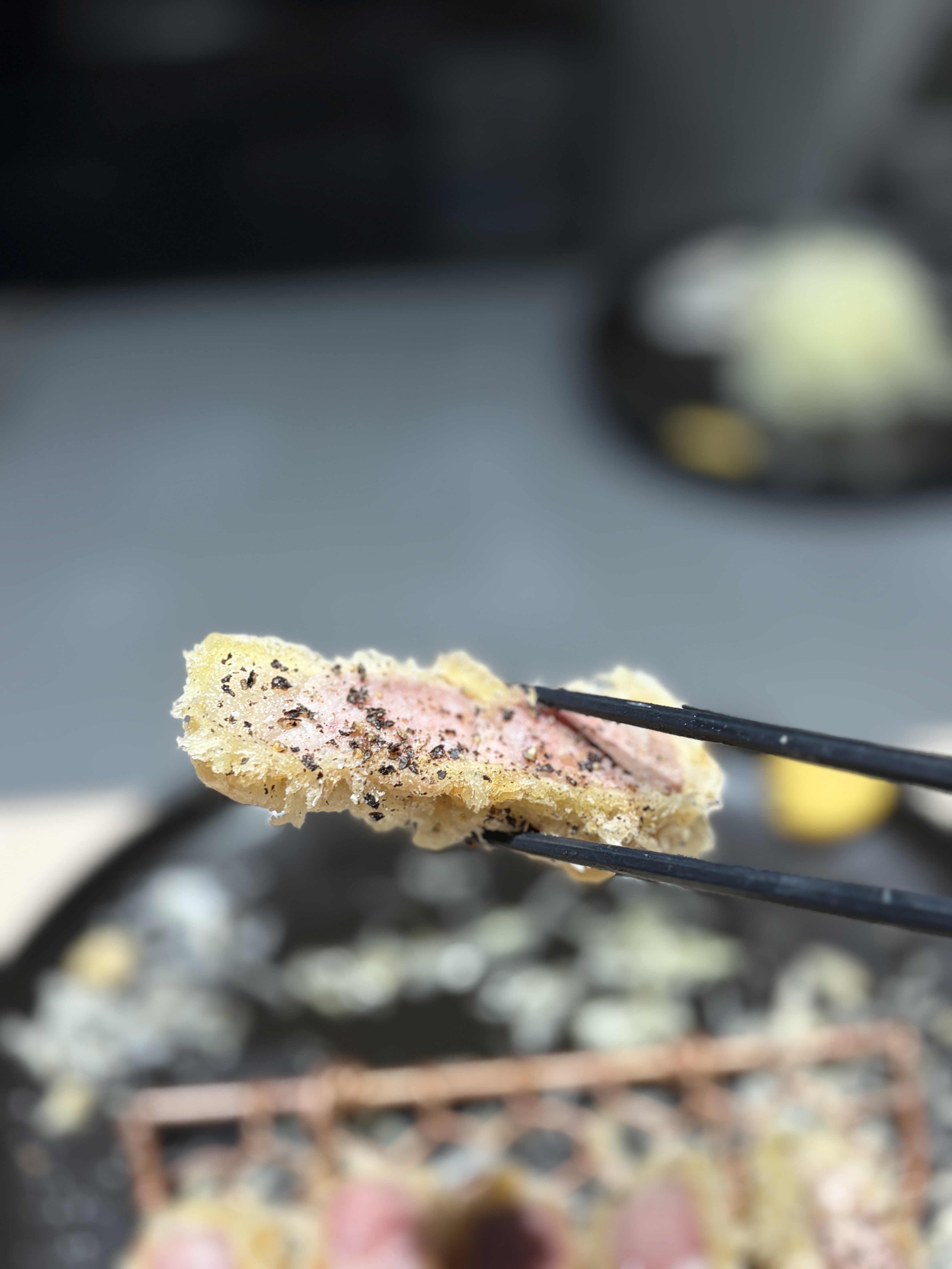 뭔가 마킹의 의도인지 흑후추를 이렇게 많이 뿌려주시는데..ㅋㅋ 확실히 구분이 되긴하는데 이게 또 호불호가 있을 순 있을 것 같아요. 전 후추를 사실 좋아해서 무리는 없었는데 뭔가 비싼부위인데 후추가 이렇게 미리 뿌려져있으니까 딴지를 걸 사람은 걸 수도 있겠다는 생각이 드네요 ㅋㅋㅋㅋㅋㅋ