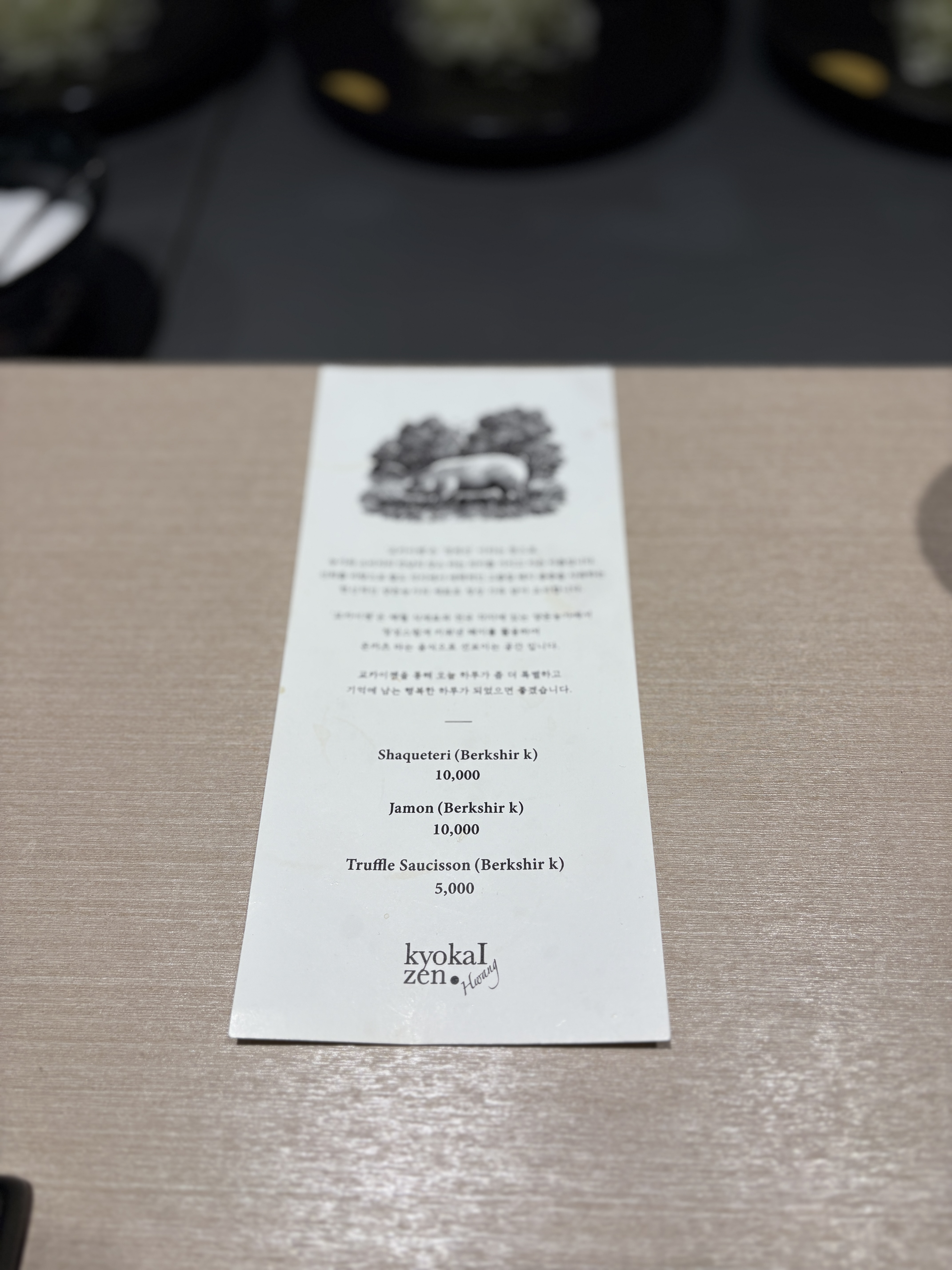 식당의 철학으로 내세우시는 'Farm to table'이란 의미를 살려서, 교카이젠이 농가와 소비자 사이의 '경계선'에서 최적의 품질의 좋은 원육을 소비자에게 소개하겠다는 포부가 상당히 인상적입니다.
