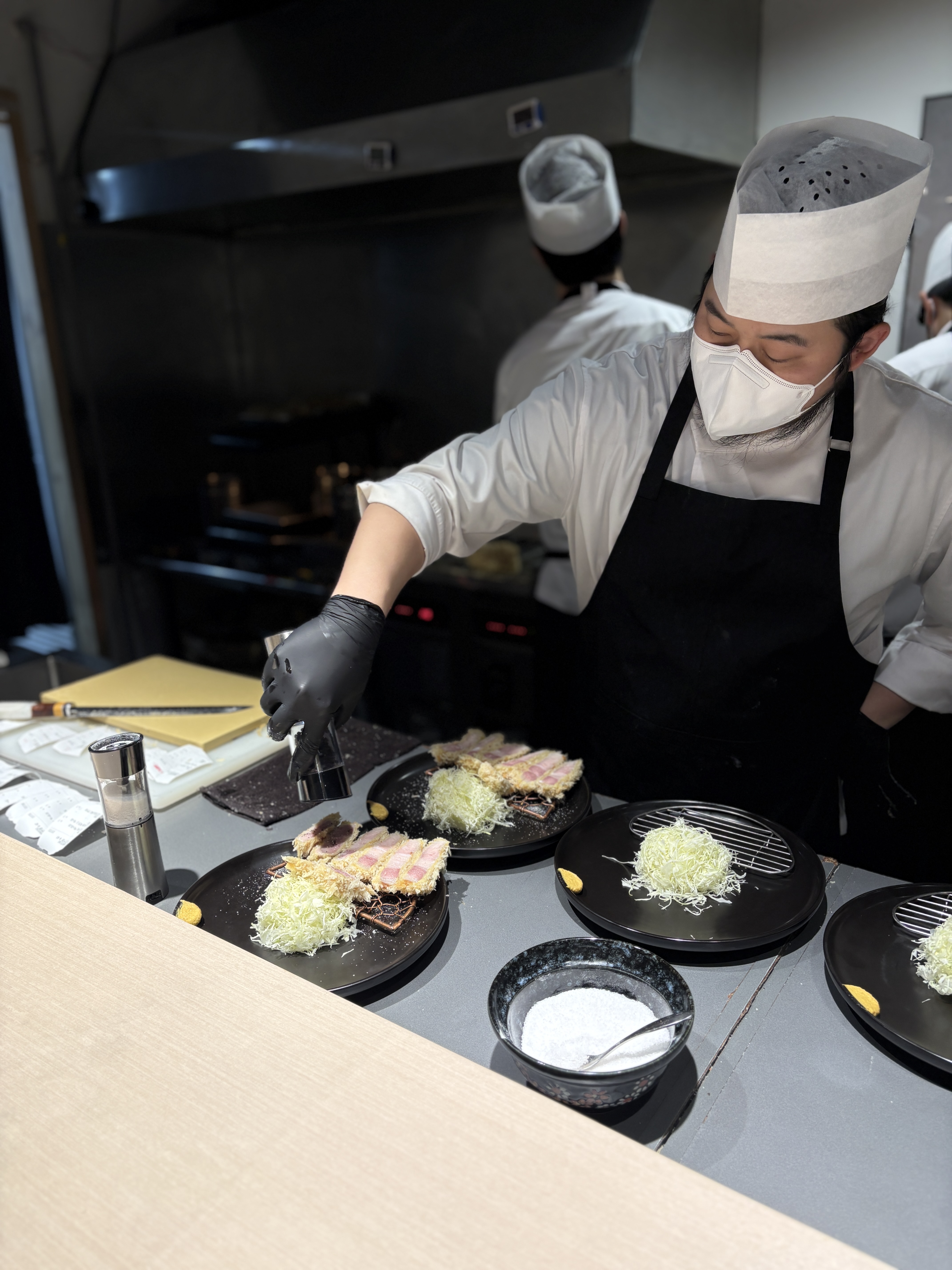 (사진 촬영 허가를 받고 촬영했습니다.) 교카이젠에서는 플레이팅 후 특수부위에는 후추를 마무리해서 주시더라구요. 표시의 역할인건지 아니면 흑후추와 더 잘어울려서 그런 것인지는 모르겠지만.. 그리고 소금을 옅게 흩뿌리는 연출도 해주십니다.