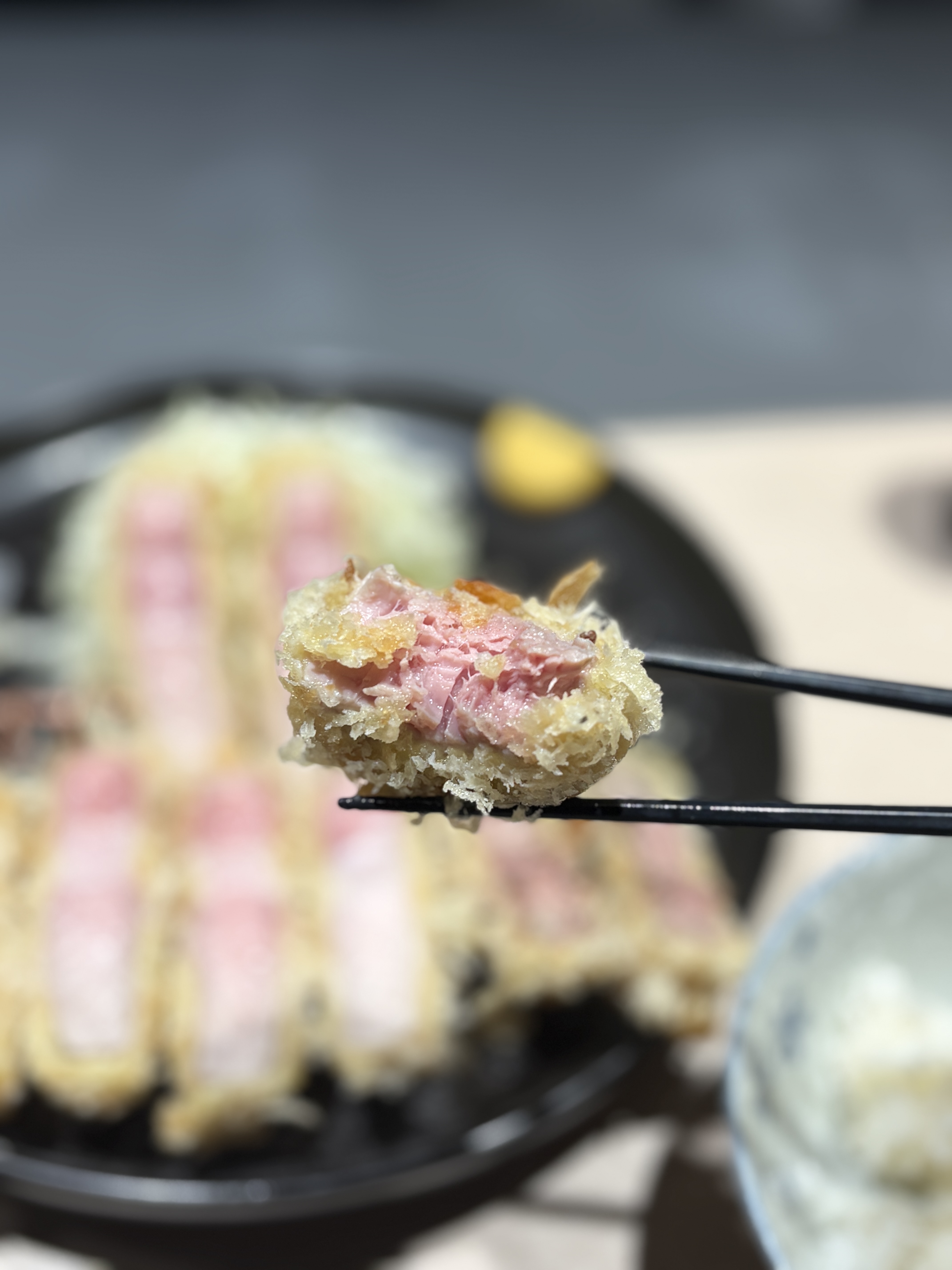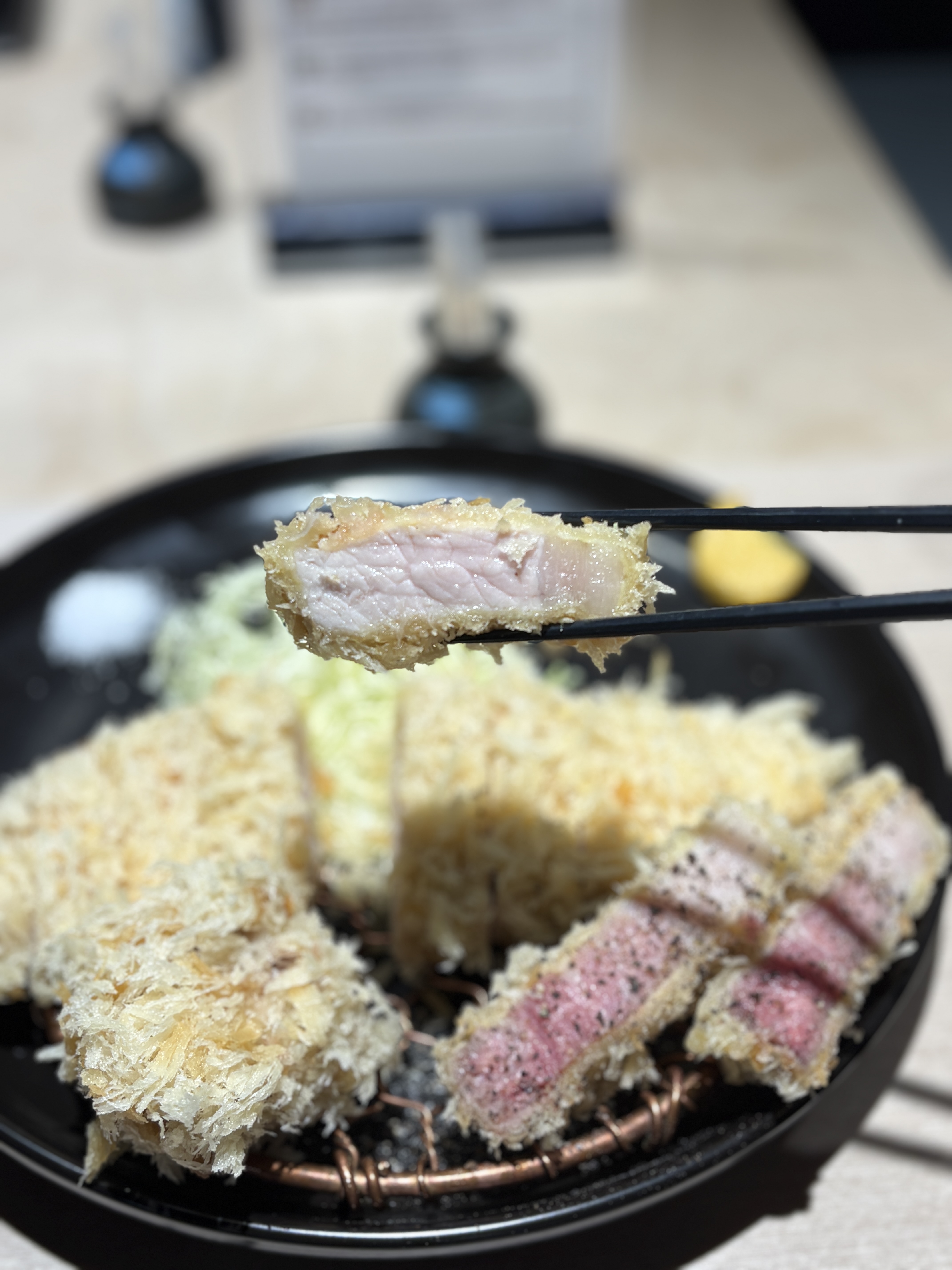 저도 집에서 일식카츠를 몇번 만들어봐서 느끼는건데 이런 단면의 원육을 일반 소비자들은 절대로 구할수가 없습니다. 타 돈카츠 업장에서도 실제로 1일에 3-4식 정도 나온다고 하시더라구요. 나름 특수부위 소비가 잘 되는 상권에서 원육을 공수해도 그렇다고 하시니 이게 절대적인 수량이 부족하다는게 좀 더 체감이 됩니다. 안그래도 궁금했던 순종 듀록의 특상을 먹게된건 정말 운이 좋다고밖에..
