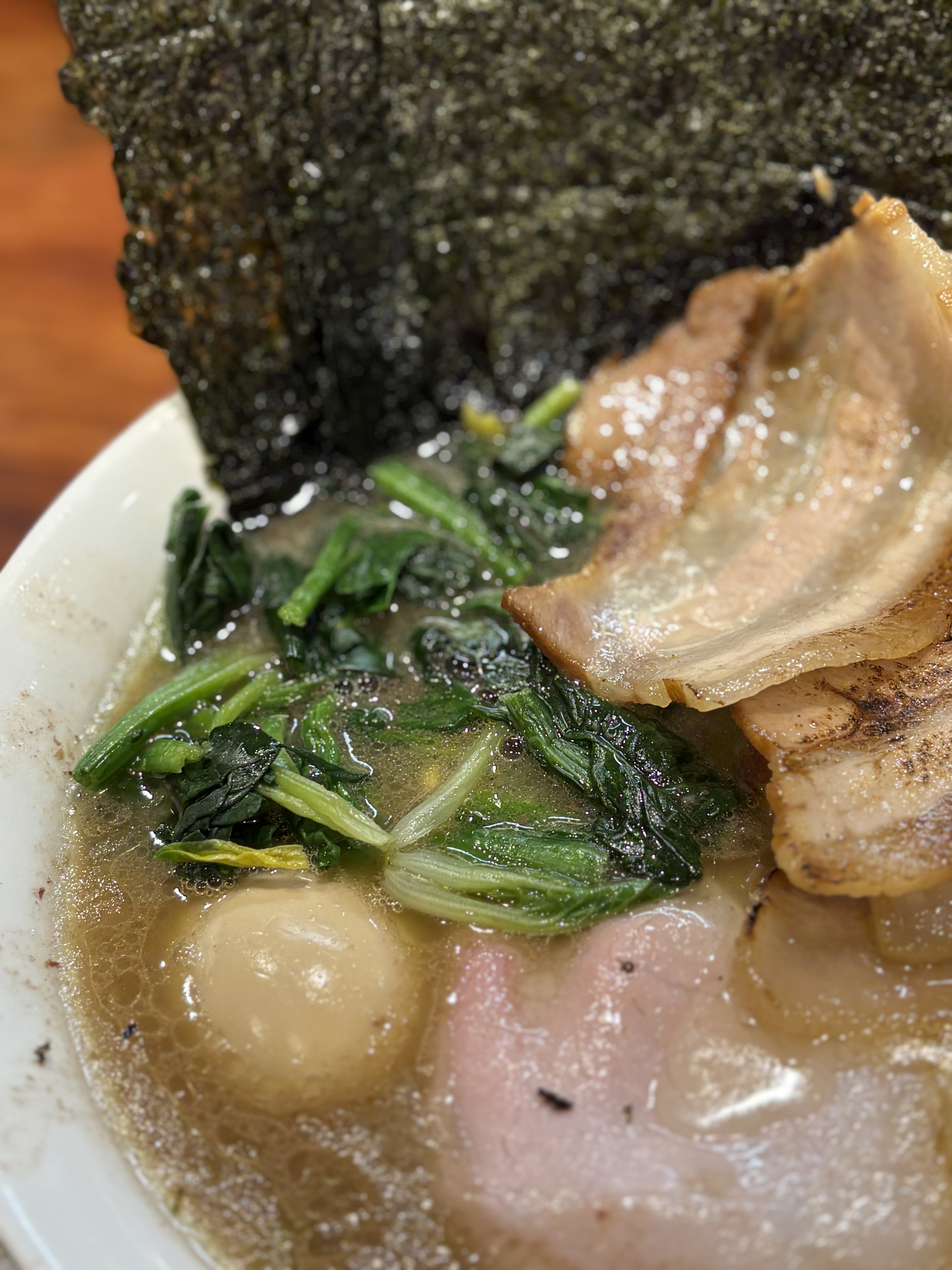 드디어 라멘님이 나오시자마자 주문한 삼겹차슈를 올리고 사진 한 컷 찍습니다. 그냥 기본으로 나오는 라멘도 잘 담겨서 나오지만 이 삼겹차슈가 올라가야 비쥬얼이 완성되는 것 같은 느낌 ㅋㅋ