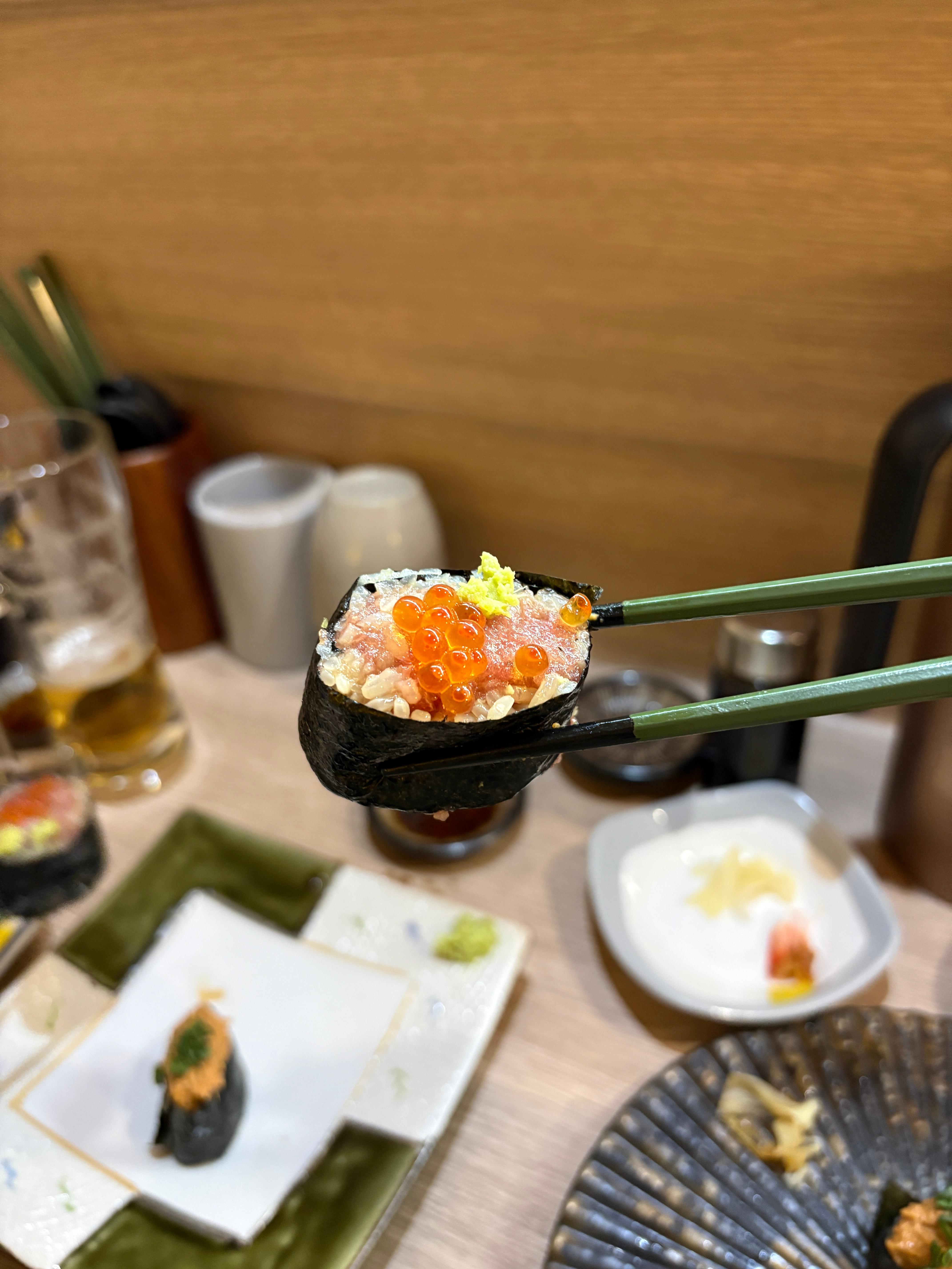 네기토로마키 맛은 아주 좋았어서 안먹었으면 아쉬웠을 뻔.. 정식 메뉴에도 좀 들어있으면 좋겠네요 ㅎㅎ 아마 일일 한정 특선 스시에는 포함되어있었을 것 같은데..