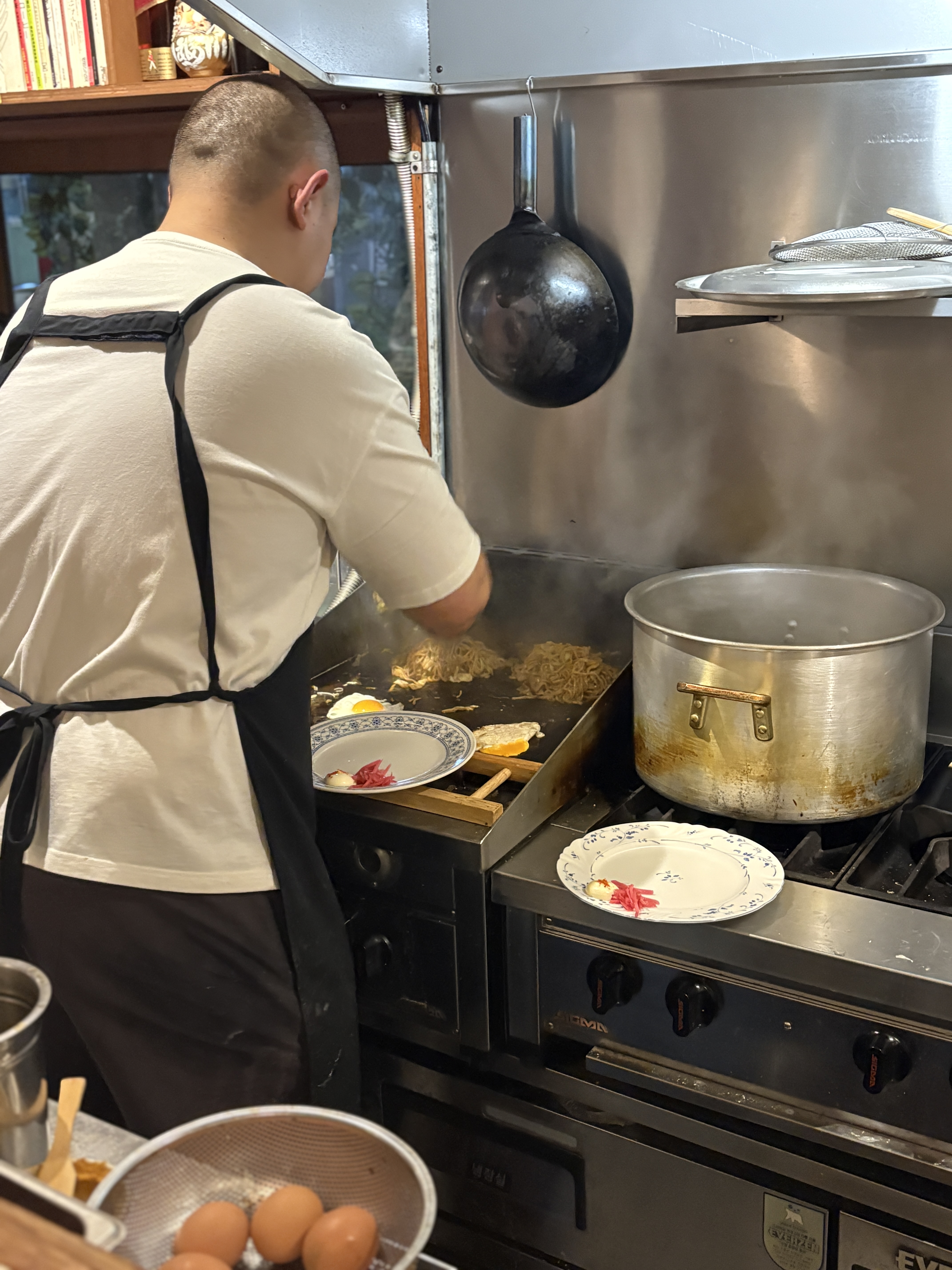 실시간으로 볶아지는 야끼소바의 모습도 이렇게 볼 수 있습니다. 기물부터 재료, 그리고 요리하시는 과정까지 일본에서 먹던 야끼소바의 느낌이 물씬 풍겨집니다.