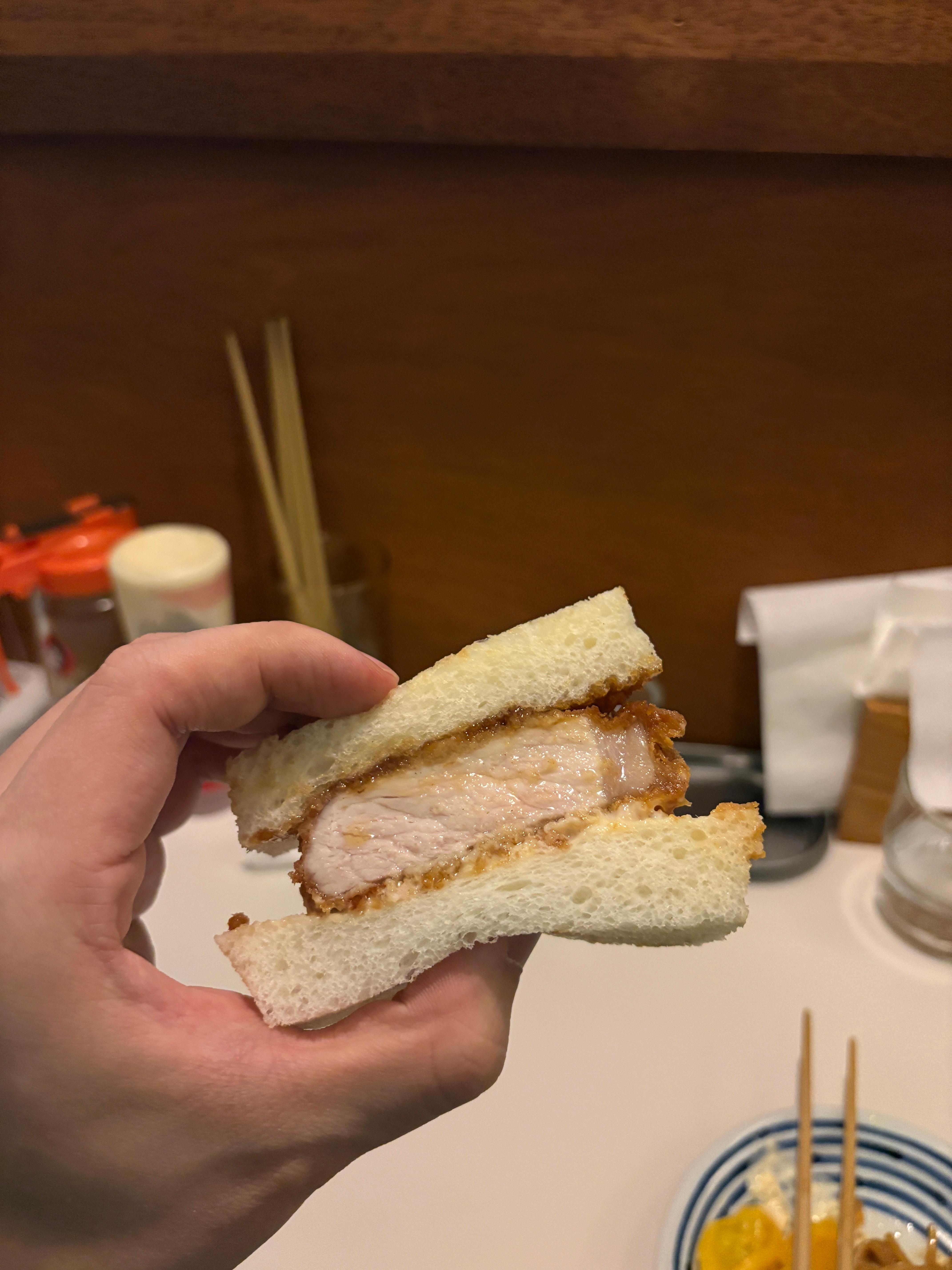 이윽고 등장한 마지막 메뉴 카츠 산도. 단면을 봐도 왜 키타미가 돈카츠 맛집으로 불리는지 알 수 있습니다. 돈카츠 정식이라는 메뉴로 나오는 돈카츠와 카츠산도로 나오는 돈카츠는 분명 달라야한다고 생각하는데요, 제가 한국에서 먹어본 카츠산도 중에서 단면 첫인상으론 단연 1위입니다.