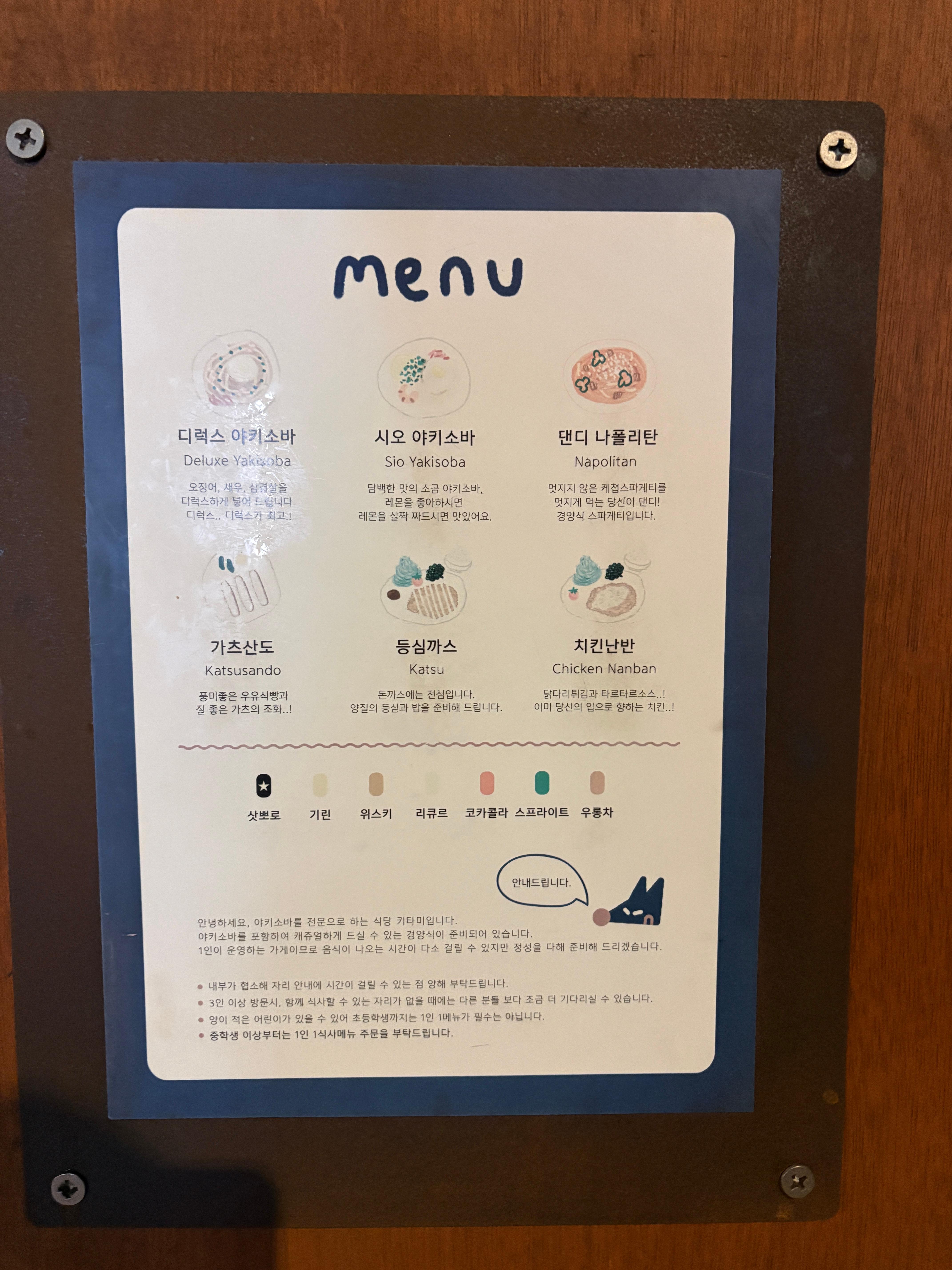 이름에서 알 수 있듯이 키타미는 야키소바를 판매합니다. 종류는 '디럭스'와 '시오'로 나뉘어있구요, 주력 메뉴로 보이는 메뉴들에는 Best 표기가 되어있어 처음 방문하시는 분들도 주문할 때 고민을 덜어줍니다.