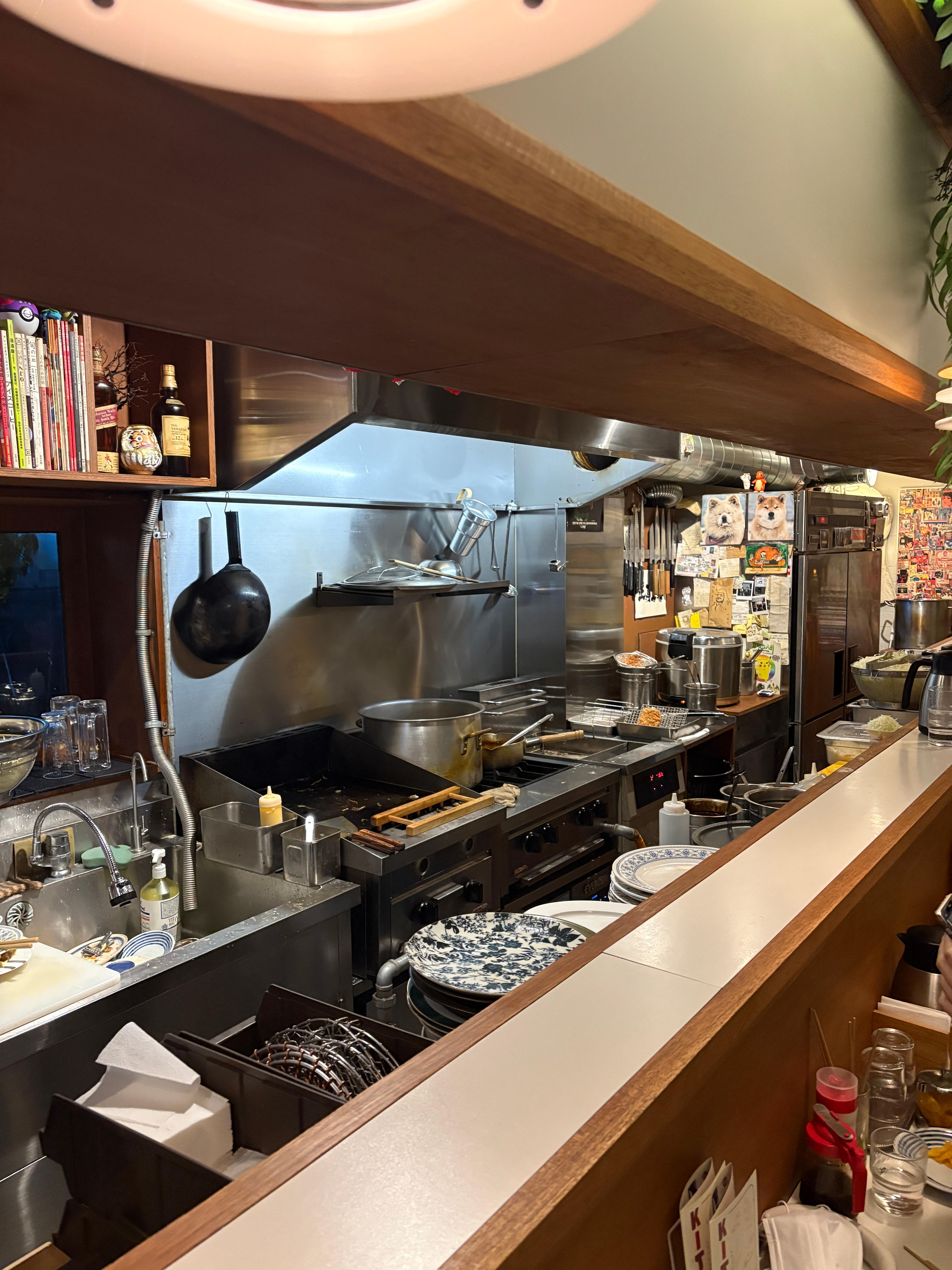 다소 높지만 조금만 허리를 피면 안쪽에 훤히 들여다보이는 카운터석으로만 이루어진 좌석은 카운터 너머로 보이는 사장님과 편하게 이야기를 주고받을 수 있도록 설계된 느낌입니다.