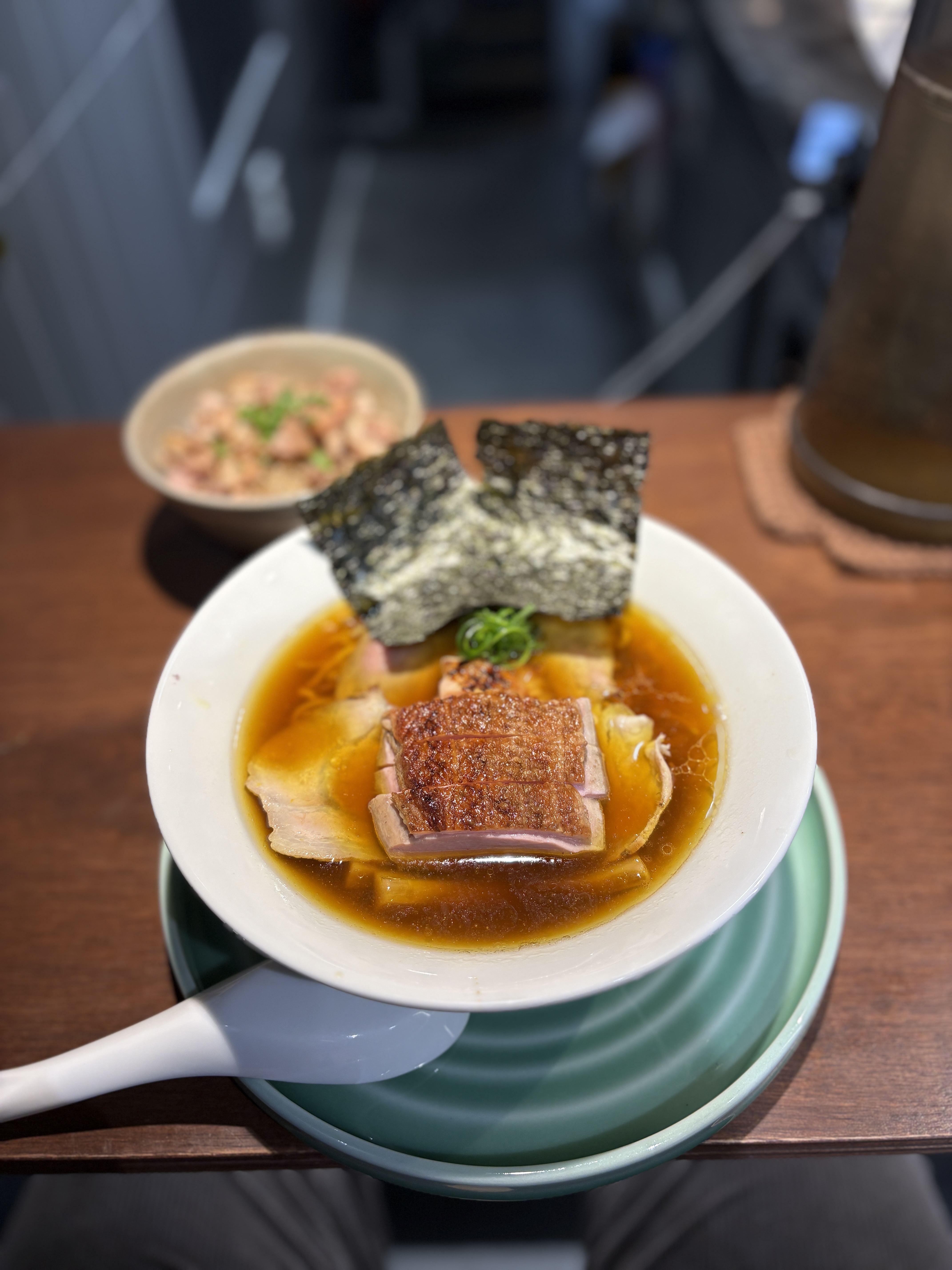 오늘 방문한 두가지 이유 중 첫 번째는 새로 추가된 오리 차슈입니다. 이전 호텔 식당에서 근무하실 때 터득하신 프렌치식 조리기법으로 만드신 오리차슈는 라멘 먹으면서 오리의 뀌숑 어쩌구를 논하긴 뭐하지만 시각적으로는 굉장히 잘 어울리는 비쥬얼입니다.