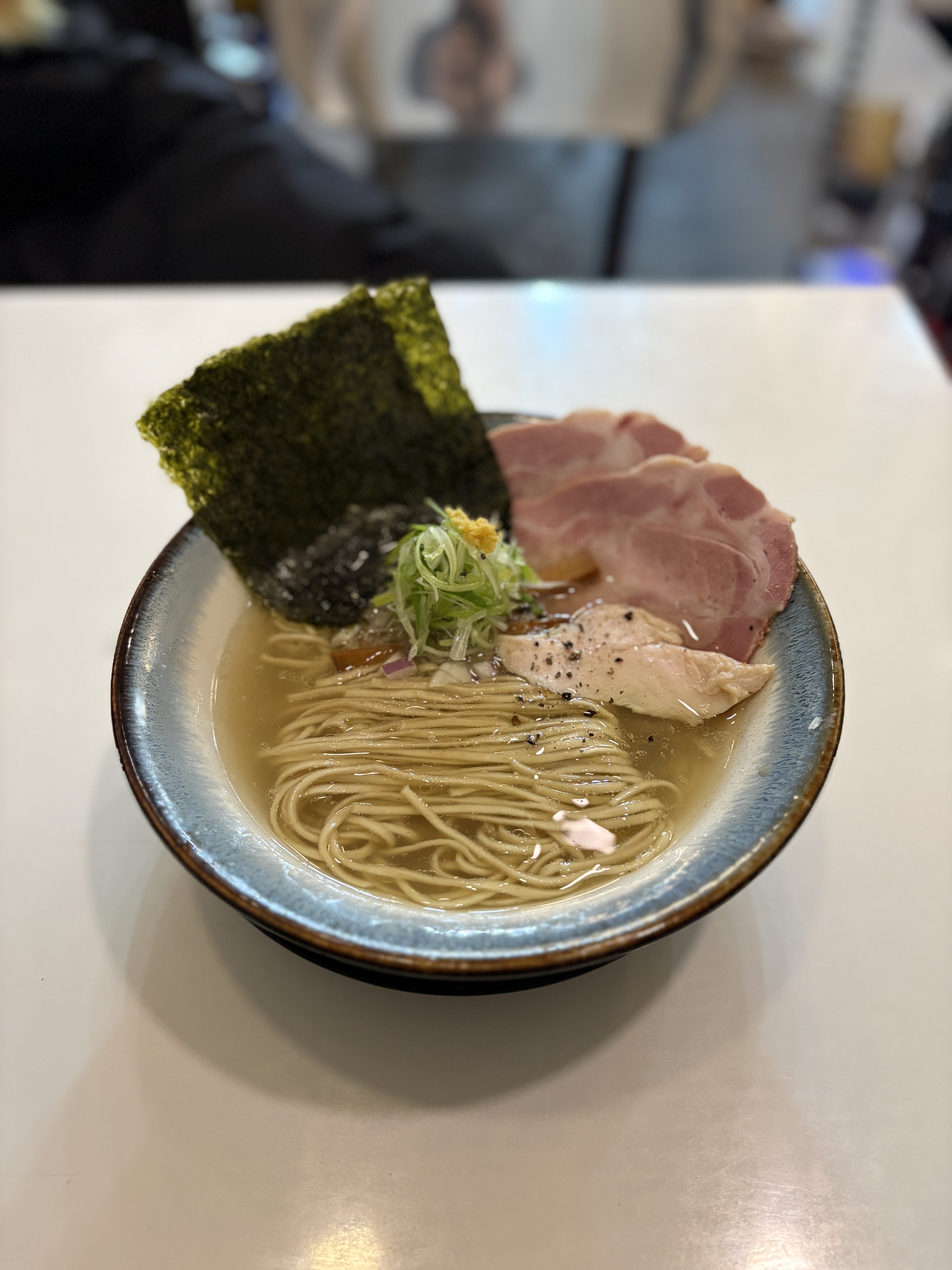 이날은 연식을 했구요, 시오라멘 쇼유파이탄 중에 시오라멘이 먼저 나오도록 청하였습니다. 푸른색이 감싸는 예쁜 면기에 담겨 나오는 시오라멘의 비주얼이 아주 인상적입니다. 면선도 예쁘구요.