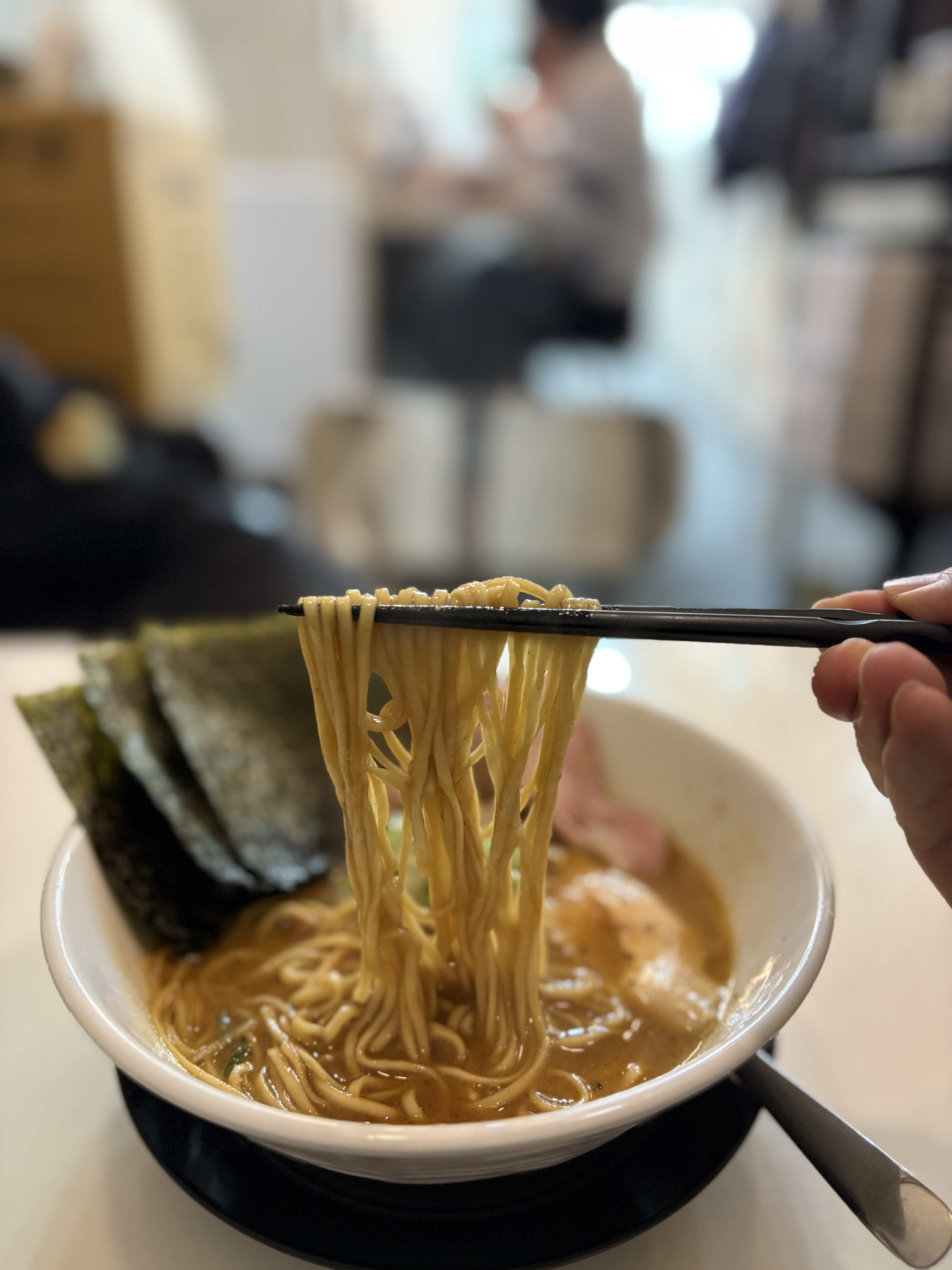 스프를 떠서 마셔보면 단순히 묵직하기만 한게 아니라 삼킬때 목구멍을 긁듯이 자극하면서 넘어가는 맛이 일품입니다. 염도를 더 짜게하시는 분들도 있지만 전 오래살고싶기 때문에 요즘은 자제를.. 다른 청탕보다는 아주 약간 온도가 더 낮은 편인데요 너무 뜨거우면 백탕 스프는 마실때 좀 데일까봐 무서울 거 같은데, 나오자마자 바로 드링킹해도 이상적인 온도를 갖추고 있습니다. 정신없이 스프를 먹다보면 아 면도 먹어야지 하면서 면을 먹게된다는.. 제가 백탕 스프 요즘 완식을 잘 안하는데 이날은 바닥까지 싹싹 비우고 나왔네요. 거부할 수 없는 마력..