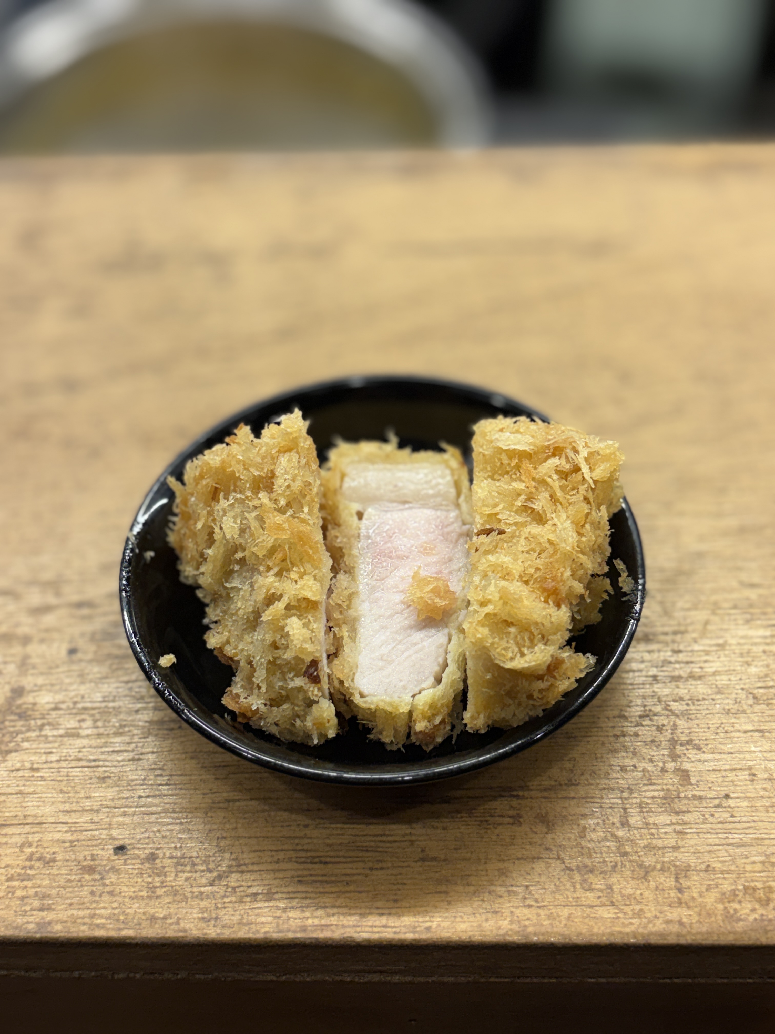 원물에 따라서, 또는 고기 컨디션이나 부위에 따라서, 아니면 실험적으로도 숙성 기간을 다르게 잡으시는 훈타인데요, 지난 번에 듣기로는 전체적으로 숙성기간을 오래잡는 것을 별로 안좋아하신다고 합니다. 근데 이날 먹은 지리산 흑돼지 등심의 경우에는 숙성기간을 꽤 잡은 고기들에서 느껴지는 고기 결이 뭉그러지는 듯한 단면이었어요. 결과적으로 부드러운 식감의 담백한 맛이 일품이었습니다. 지방질도 적당했구요, 튀김 온도도 좋아서 겉부분과 속 안쪽까지 결 반대로 씹을때 느껴지는 그 특유의 식감도 좋았습니다. 부드럽지만 등심의 매력도 느낄 수 있는. 와이프는 난축맛돈보다 오히려 이 흑돼지가 더 좋았다고 할 정도 ㅎㅎ
