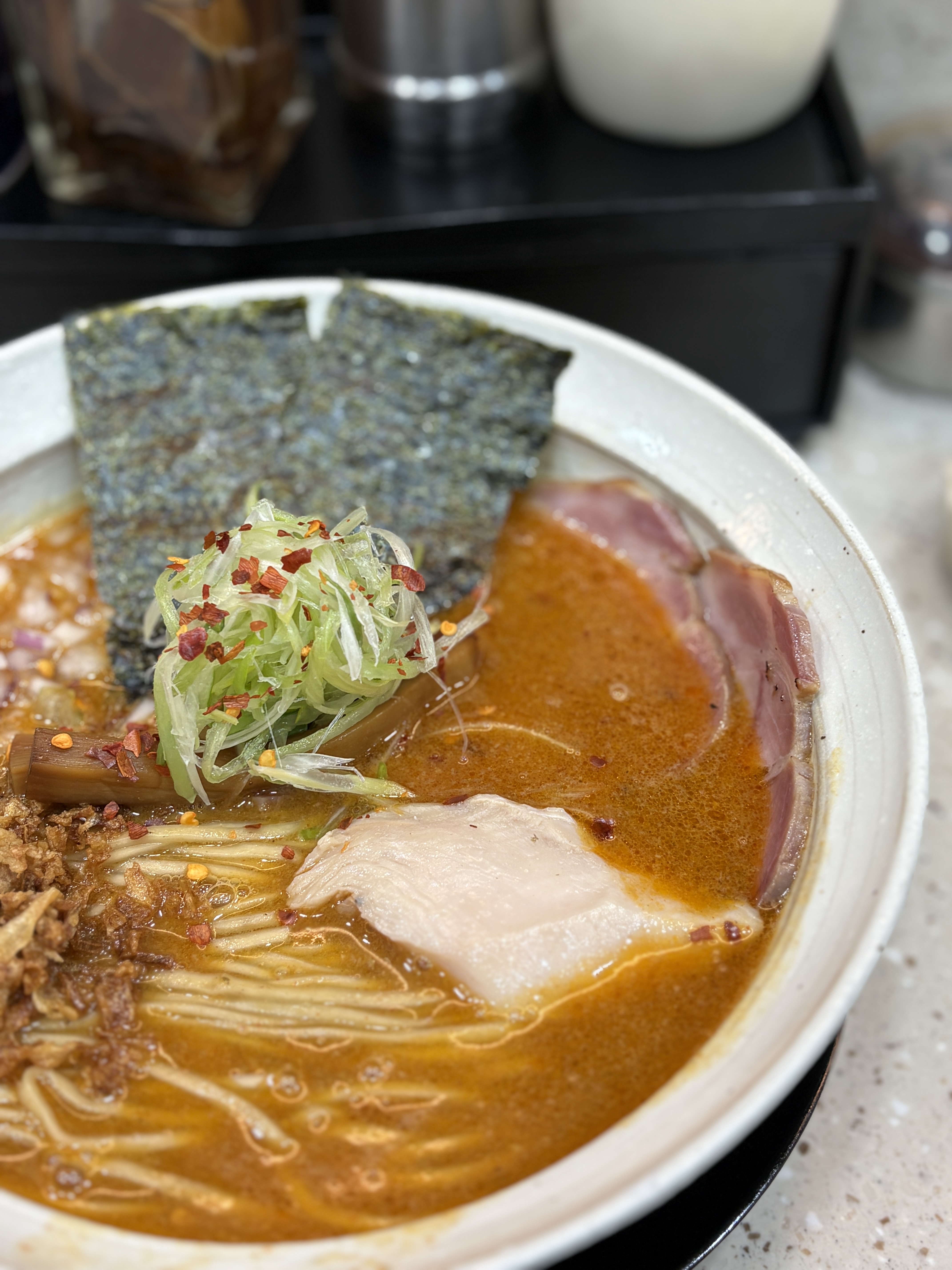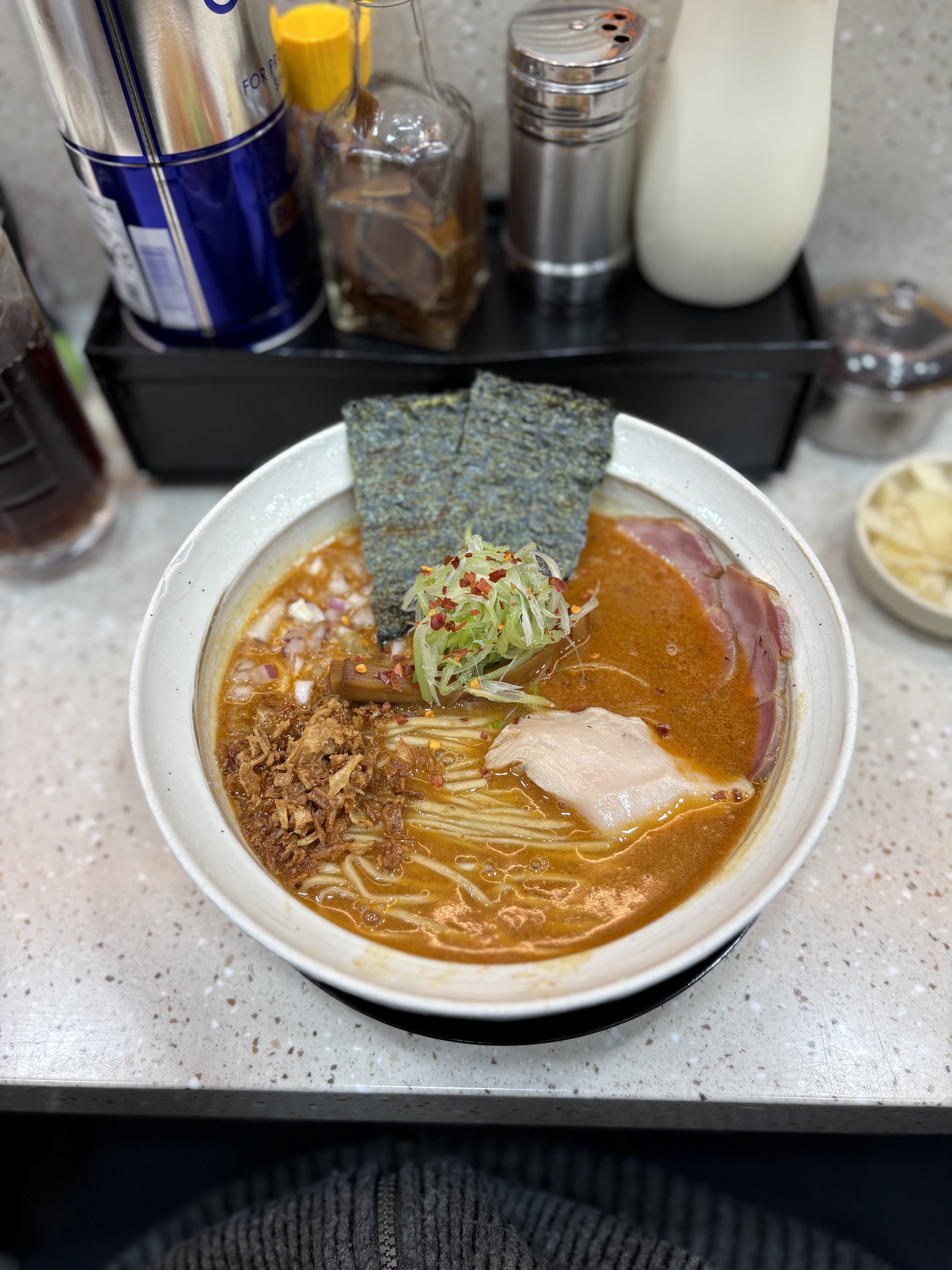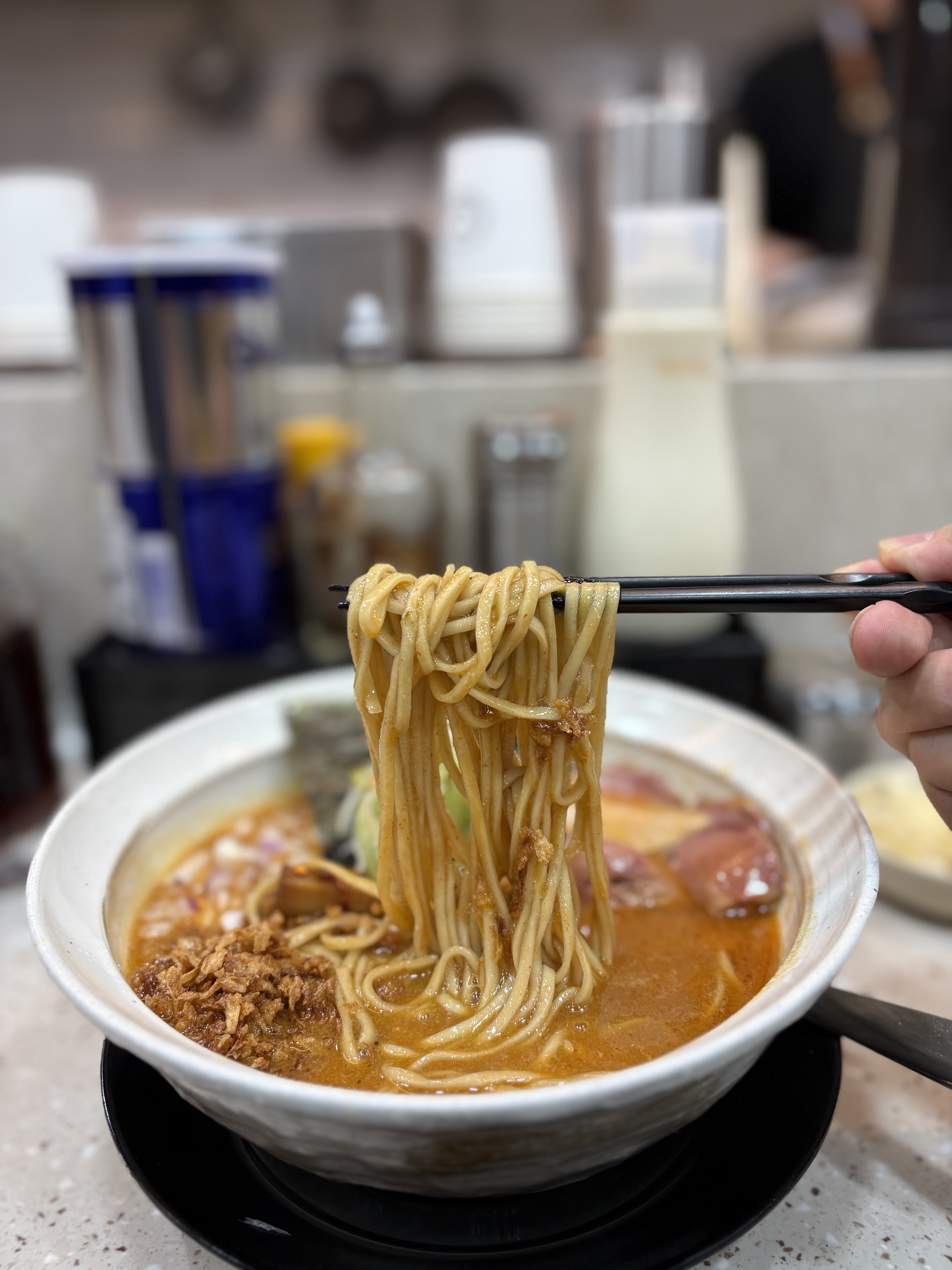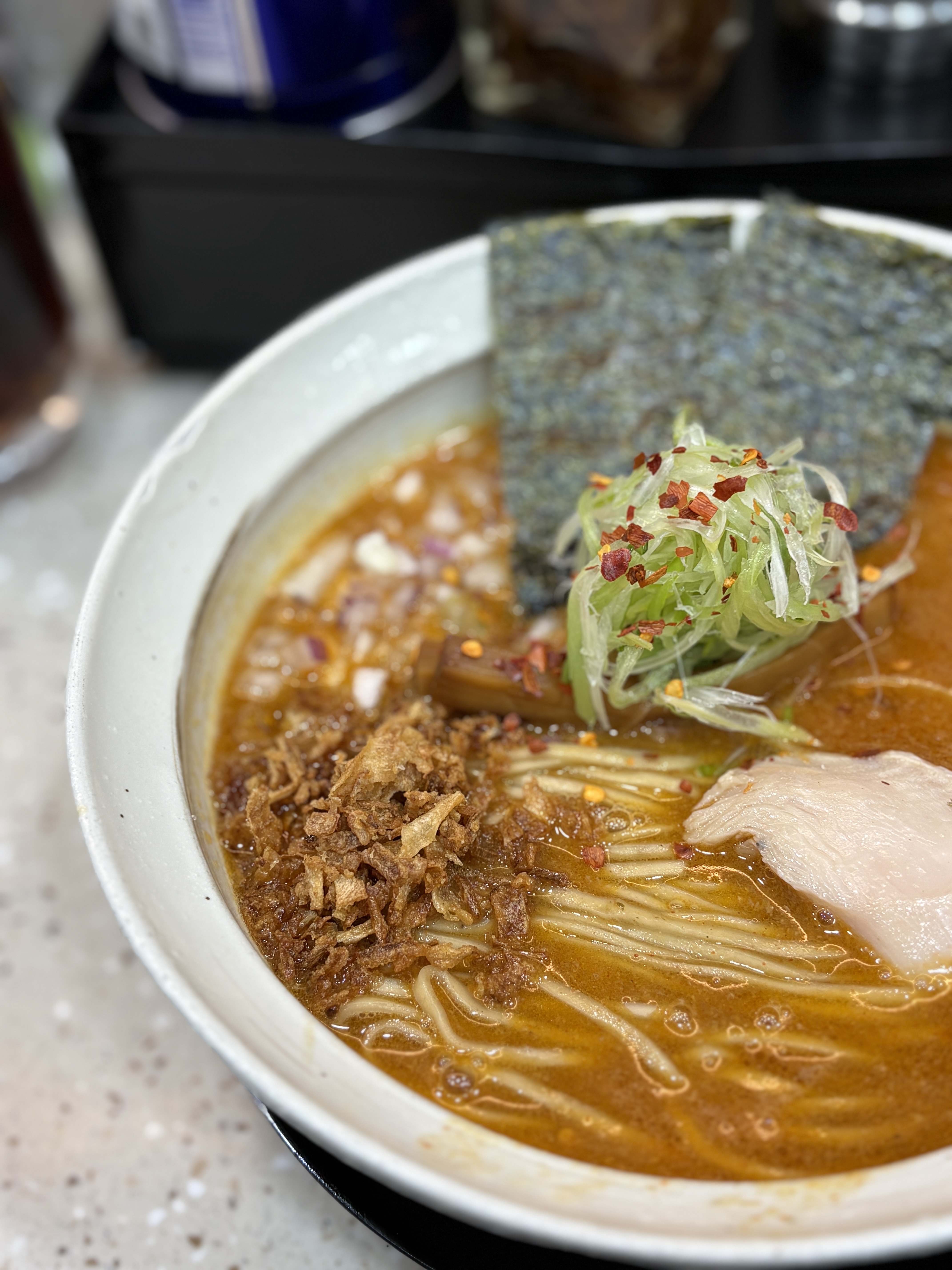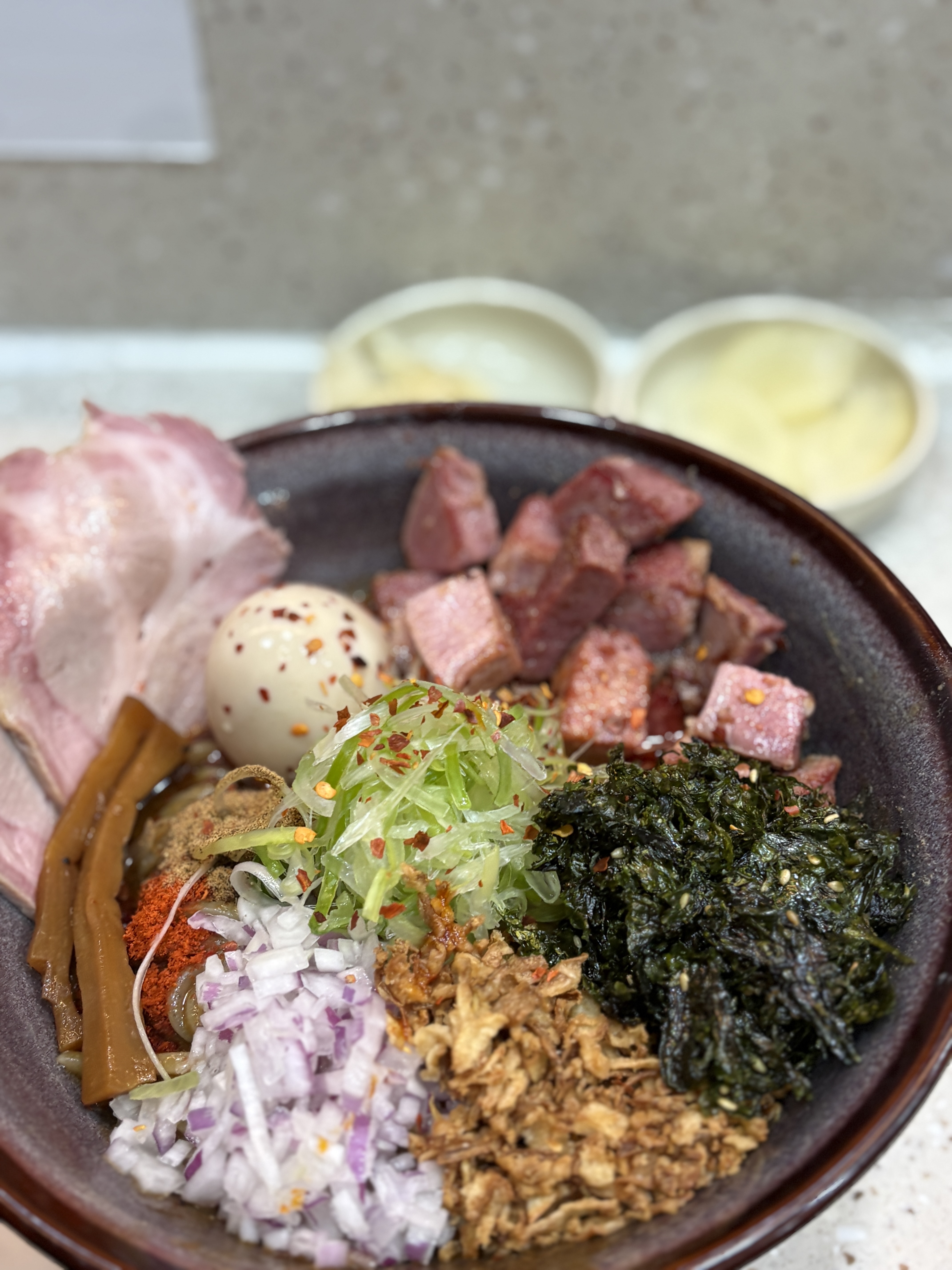 튀긴 양파가 올라가있는데 이게 생각보다 라멘 전체적인 맛에서 중요한 요소를 차지합니다. 파이탄 육수에 타래까지는 뭔가 중화요리 풍의.. 탄탄멘같은 맛이 느껴지다가도 이 튀긴 양파 때문에 뭔가 동남아 풍의 느낌도 살짝 나거든요. 그게 호로 작용하는 분은 잘 맞으실거고, 이도저도 아니라고 느껴버리면 취향에서 멀어질 수 있다고 생각합니다.