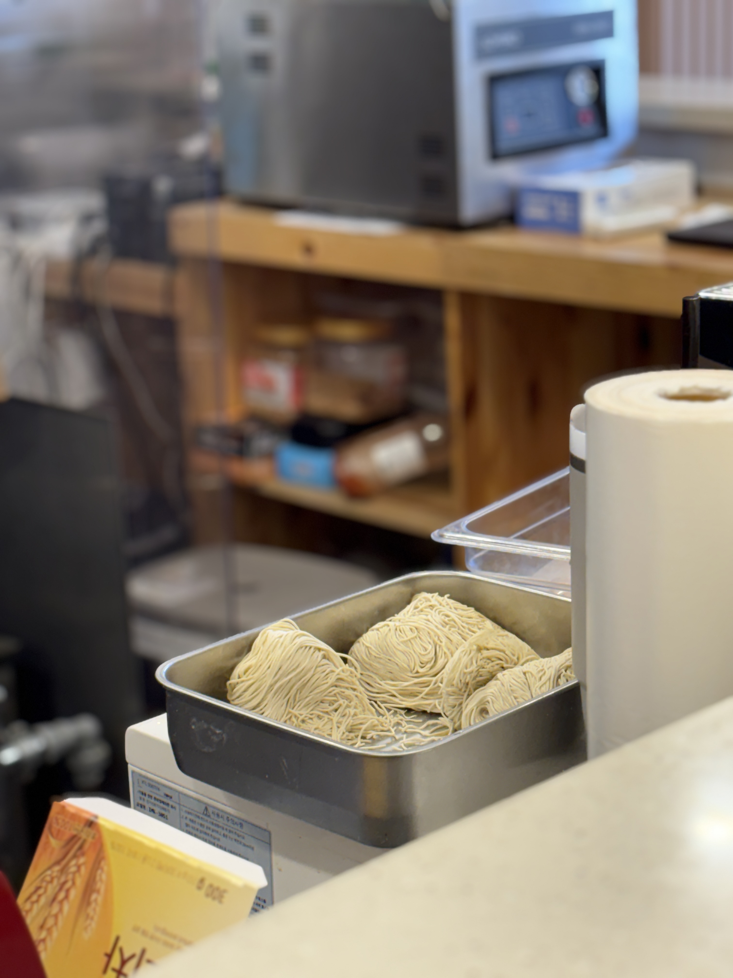 육절기도 좋은 브랜드것을 사용하고 계시더라는.. 근데 차슈가 훈연차슈를 만드신 것 같은데 겉에 부분이 거의 육포처럼 말라있습니다. 차슈 덩어리 내부 색깔은 괜찮았는데 어쩐일인지 표면 마름 이슈가.. 앞서 다녀가신 다른 라오타분 리뷰에서 지적했던 부분이라서 더 눈에 잘 들어왔던 것 같네요.