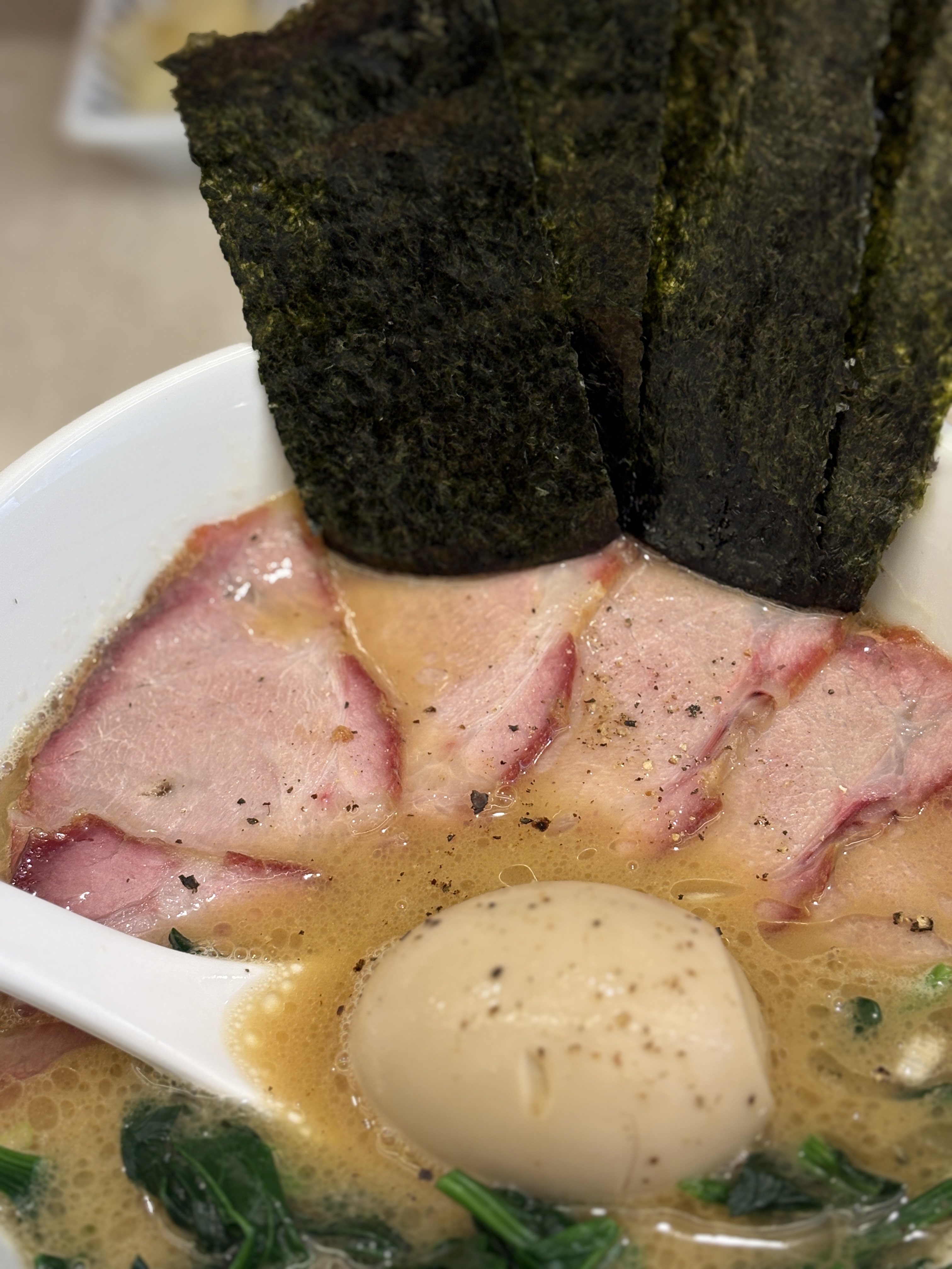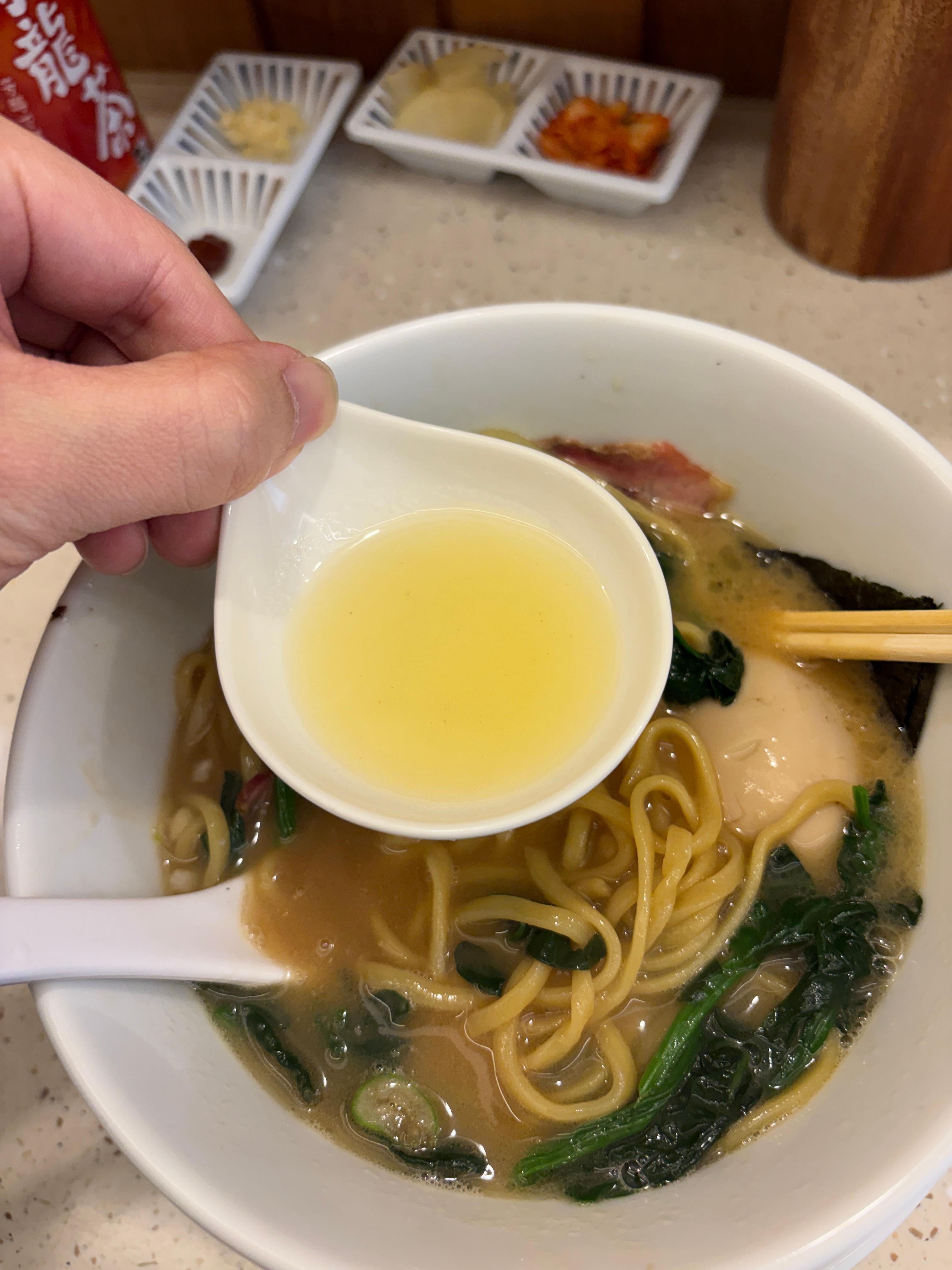 차슈는 훈연차슈를 주셨는데, 매장 내부에 기물들이 잘 보여서 여기저기 둘러봤는데 이에케 차슈를 만들때 쓰는 그 훈연통이 안보이더라구요.. 다른데서 하셨는지는 모르겠지만.. 그래서 그런지 뭔가 좀 아쉬웠더라는.. 차라리 수비드 차슈로 포션을 넉넉하게 해서 주시는게 좀 더 나을 것 같다고 생각했습니다. 차슈 내부의 맛은 괜찮았는데 겉 부분이 말라있어서 질감이 그렇게 좋진 않았어요.
