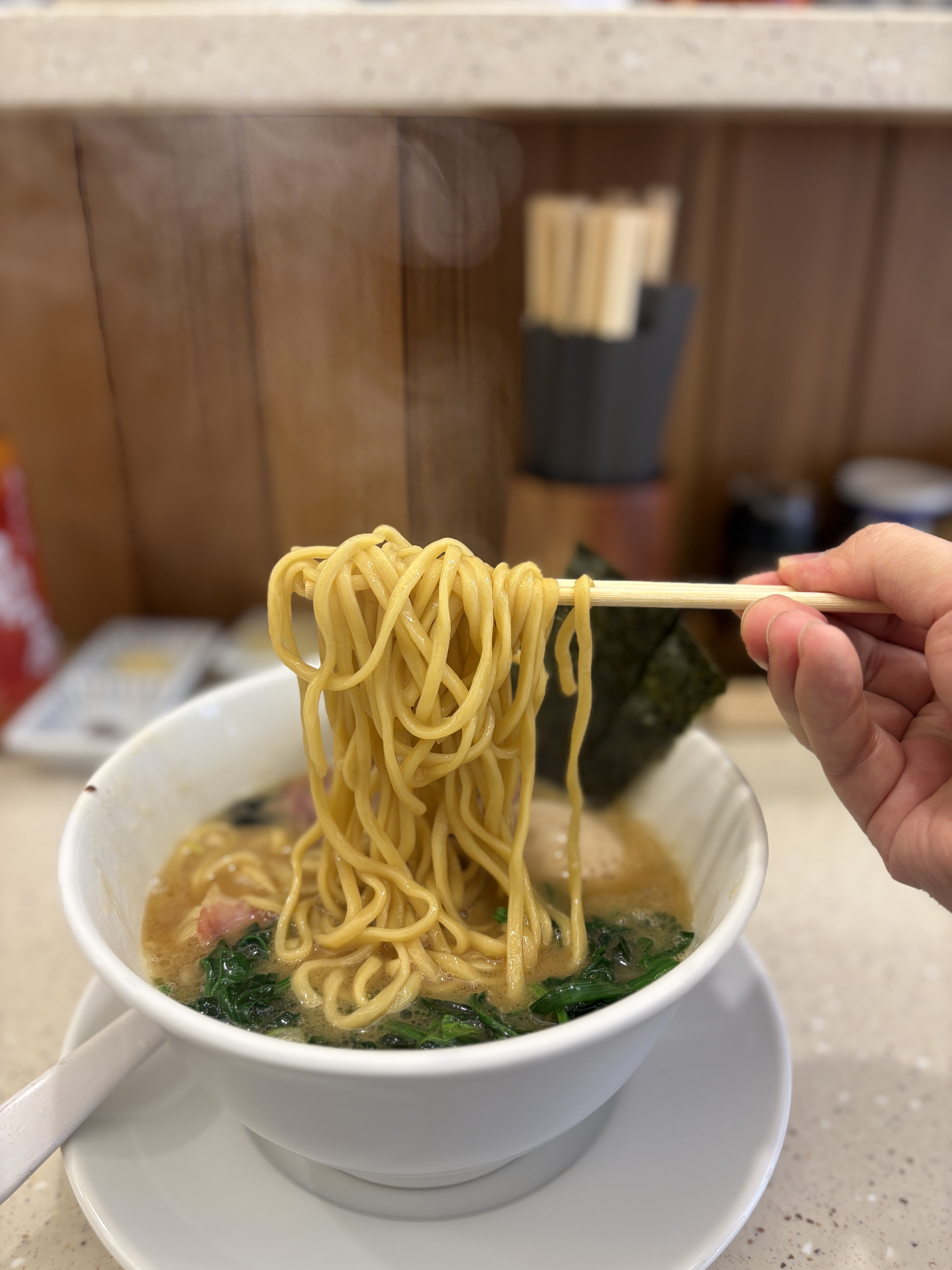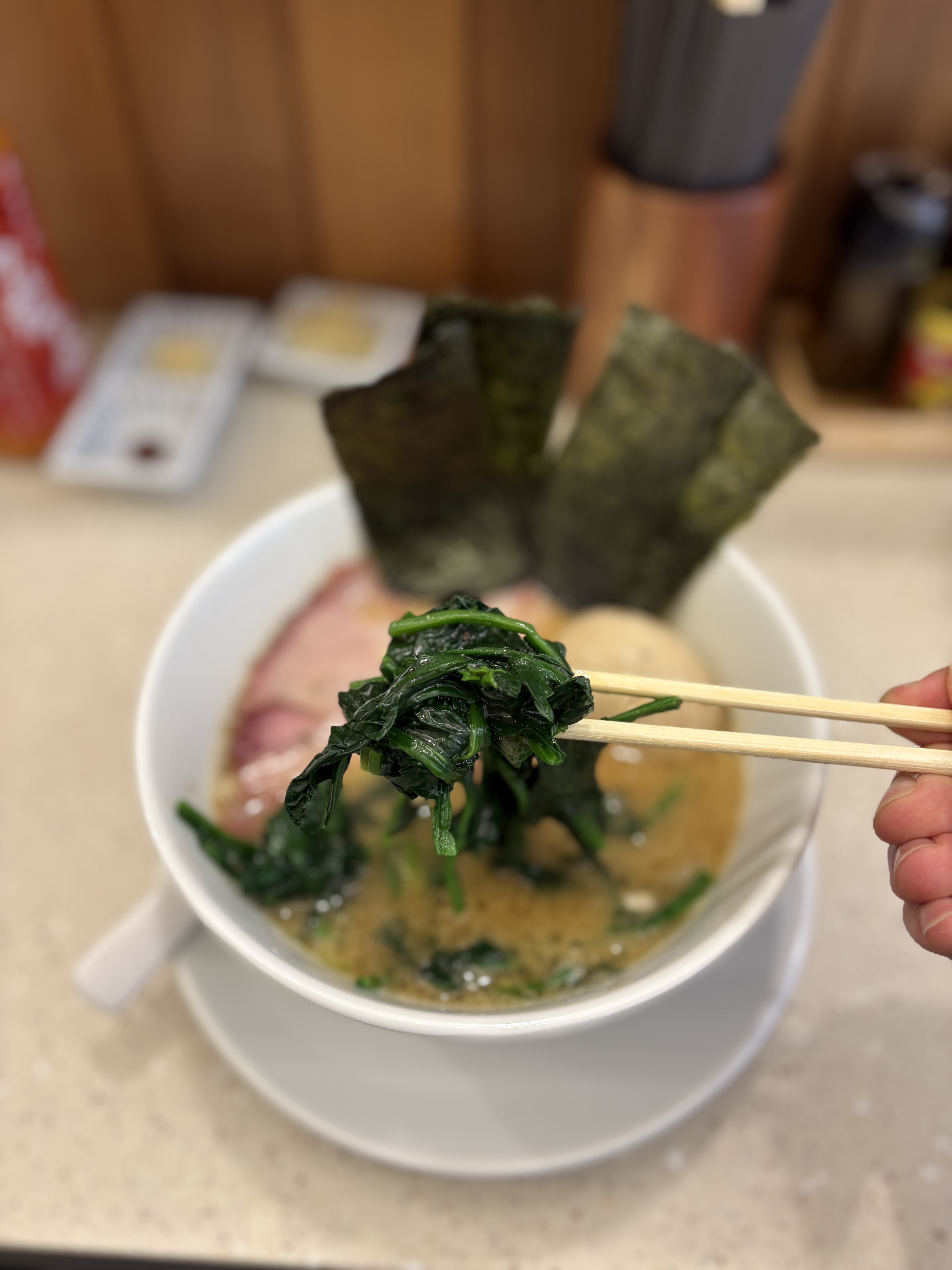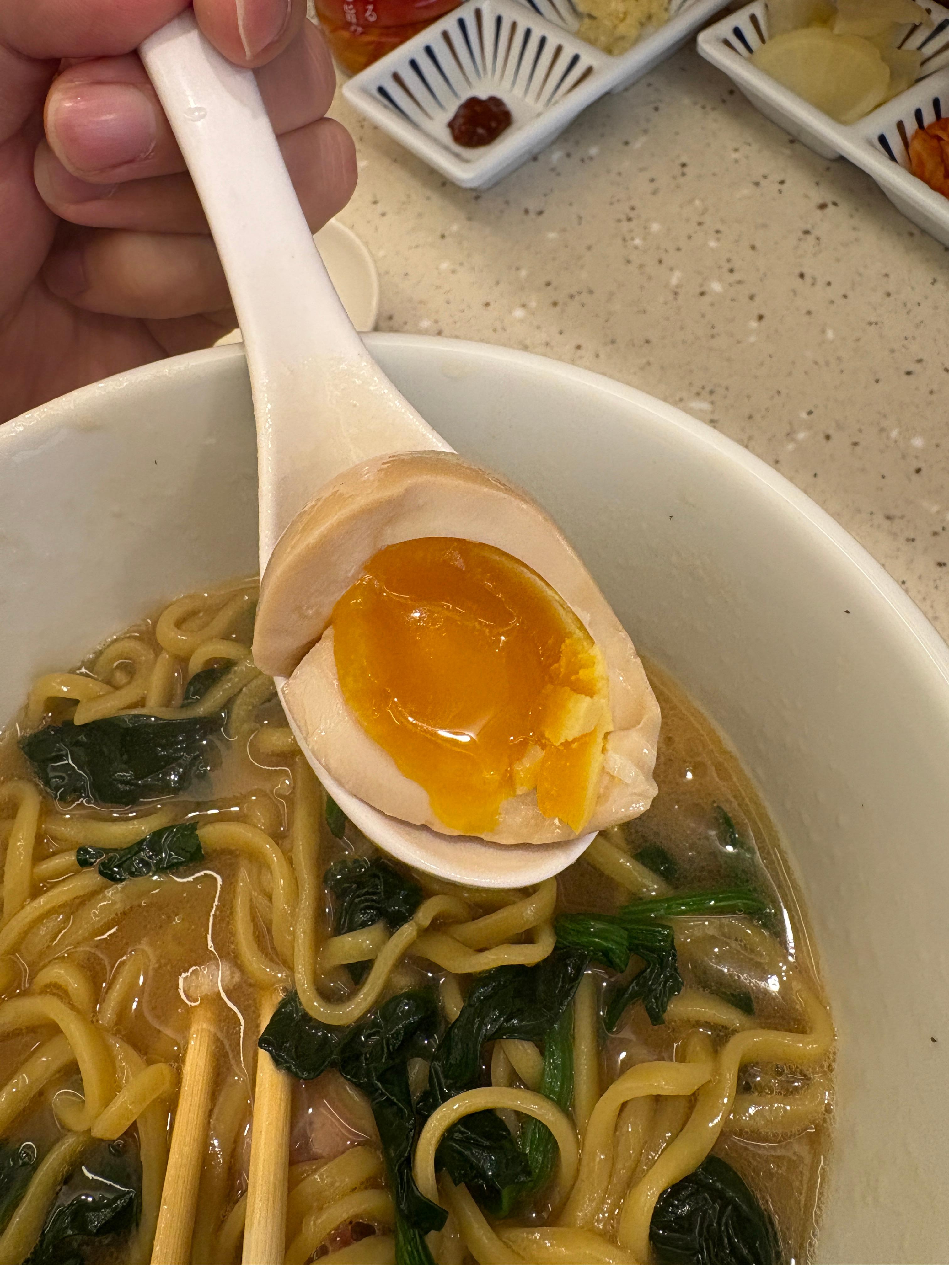 차슈는 훈연차슈를 주셨는데, 매장 내부에 기물들이 잘 보여서 여기저기 둘러봤는데 이에케 차슈를 만들때 쓰는 그 훈연통이 안보이더라구요.. 다른데서 하셨는지는 모르겠지만.. 그래서 그런지 뭔가 좀 아쉬웠더라는.. 차라리 수비드 차슈로 포션을 넉넉하게 해서 주시는게 좀 더 나을 것 같다고 생각했습니다. 차슈 내부의 맛은 괜찮았는데 겉 부분이 말라있어서 질감이 그렇게 좋진 않았어요.