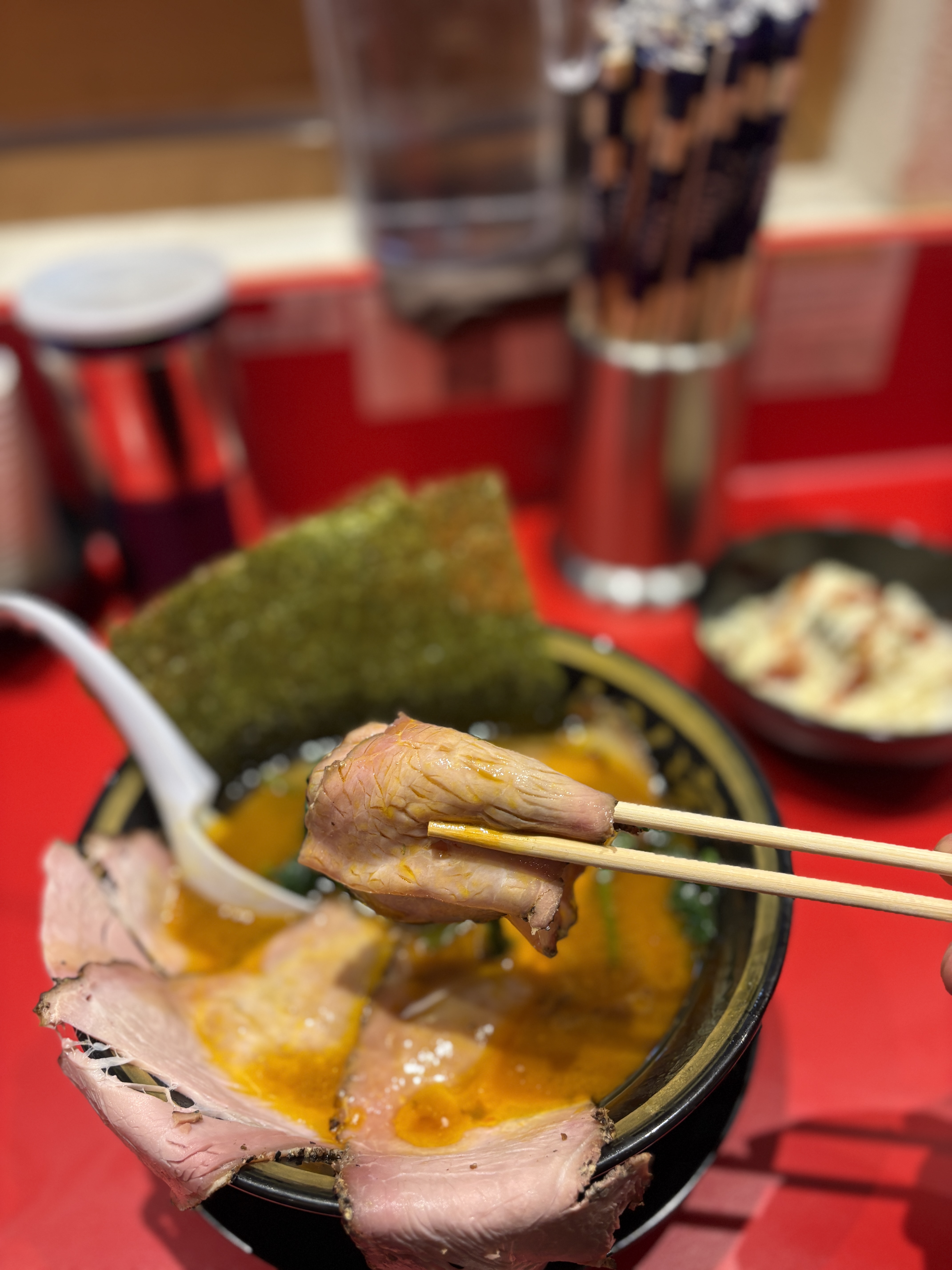 제 기준 이전에는 기복이 있다고 느꼈던 차슈도 아주 훌륭했습니다. 적당한 훈연향에 육질도 매우 촉촉했구요, 차슈멘 답게 아주 길다란 차슈가 여러개 들어있는데 아까 만들어둔 미니 차슈동에 김처럼 밥을 싸먹으면 아주 그냥 천국입니다..