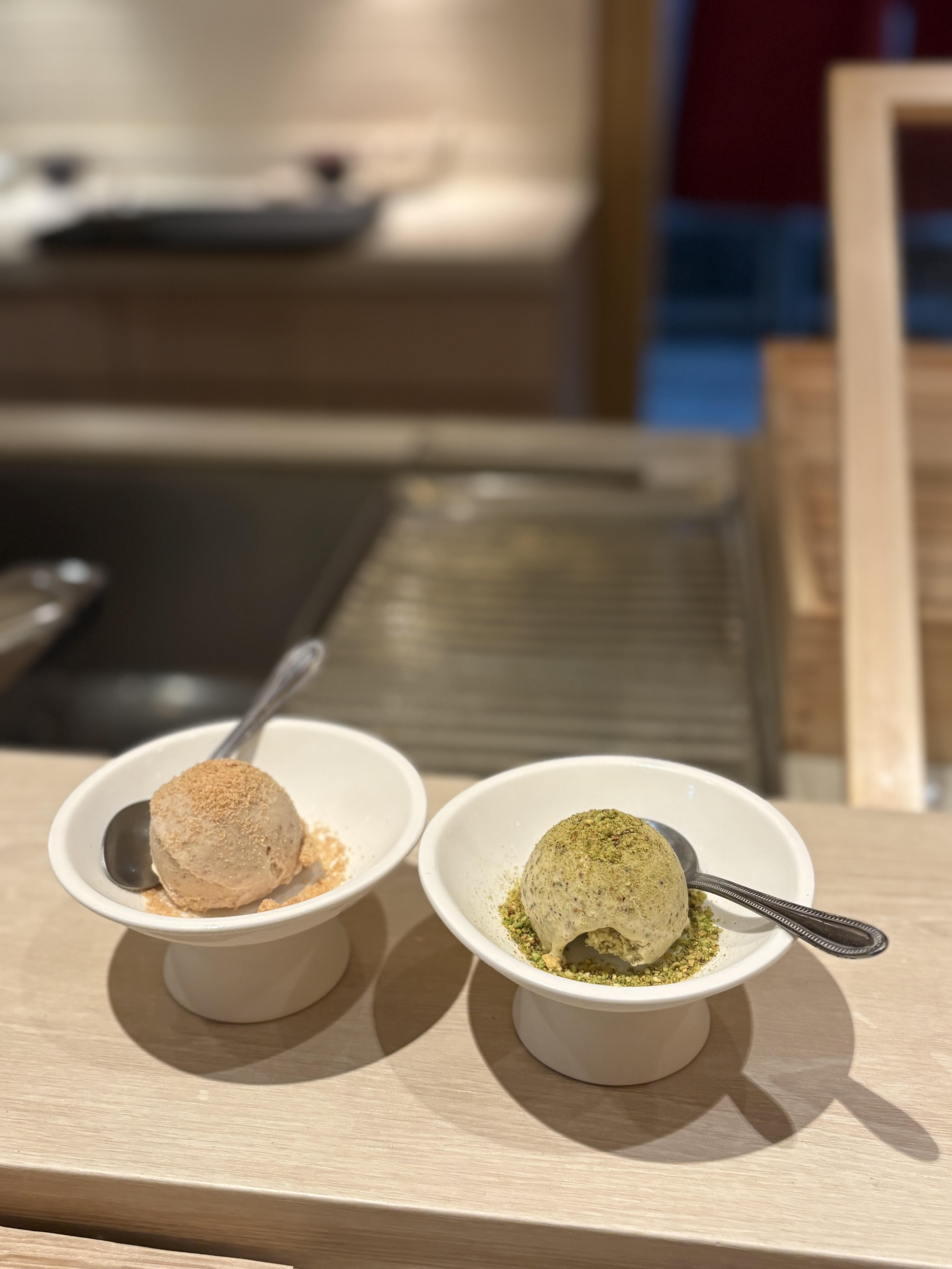 직접 만드신 호두마루 아이스크림과 피스타치오 아이스크림으로 마무리.. 두쫀쿠때문에 원가 상승으로 피스타치오 아이스크림 만드는데 애를 먹으셨다는..ㅋㅋ 식사 처음부터 끝까지 나오는 음식마다 만족도가 높았고, 먹으면서 계속 이 음식들을 어떻게 혼자 다 준비하신건지 감탄만 나왔던 스시 텐주. 목숨을 걸고 하시는만큼 성업하셨으면 좋겠고 봄철에 꼭 다시 찾아오겠다고 다짐했다는..