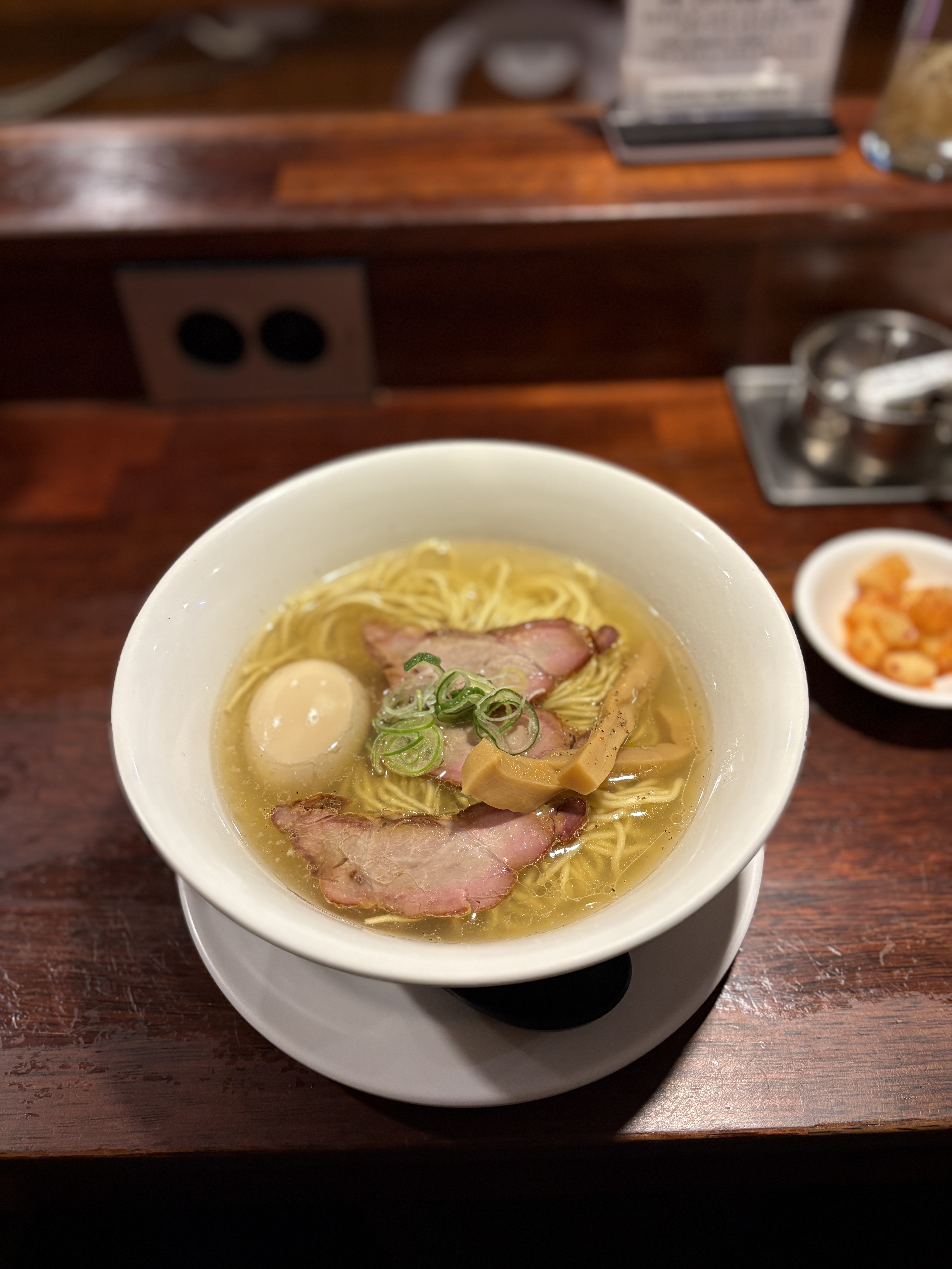 다음으로 나온 것은 맑은 도미라멘. 맑지만 향이 절대 약하지 않습니다. 장작 멘마도 보이구요, 멘마처리가 상당히 마음에 들었습니다.