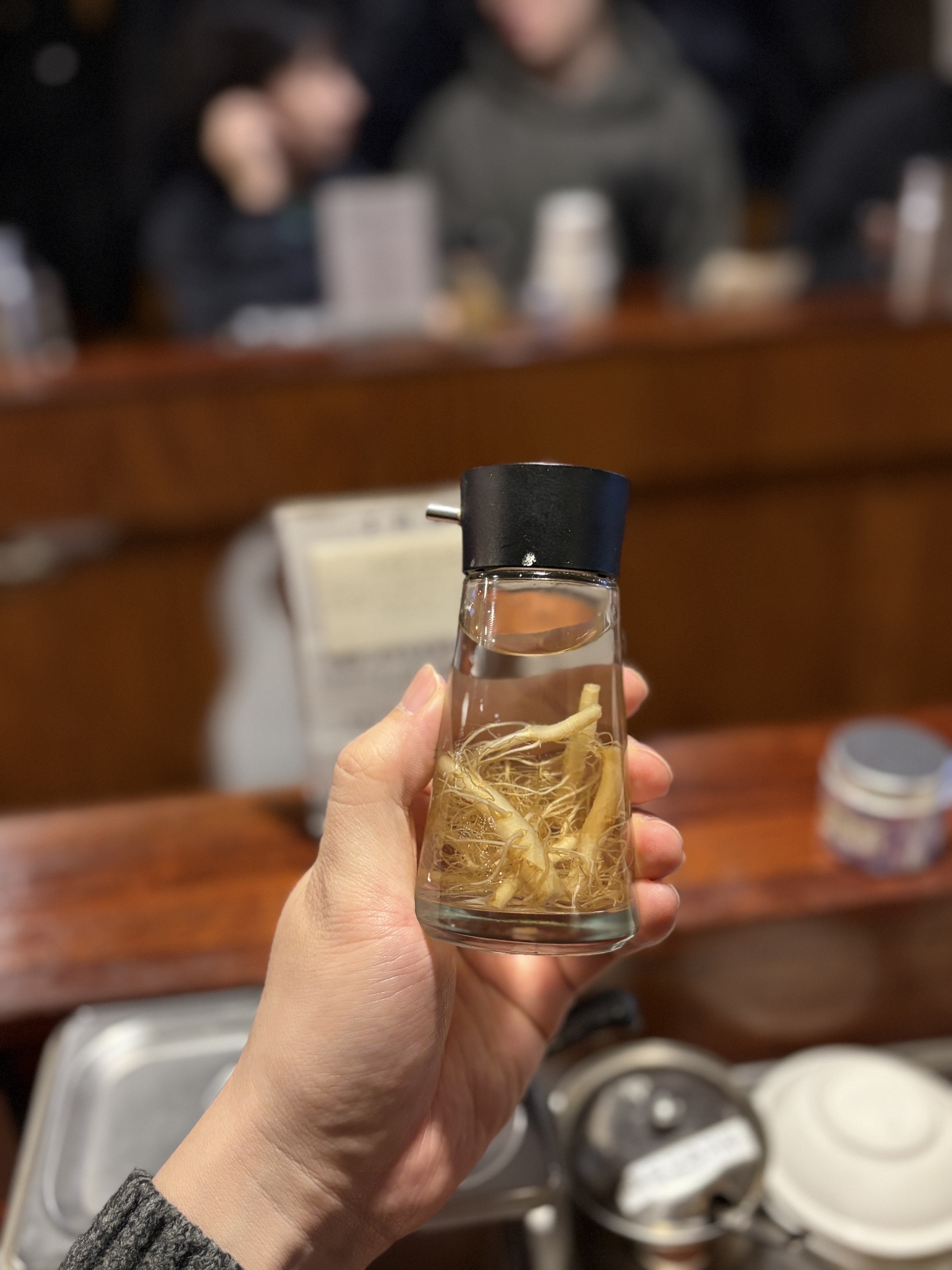 삼이들어간 식초. 다시마도 같이 베어있는지는 모르겠지만 이런것도 특색있습니다. 진한 도미라멘에 같이 나오는 우엉과 함께 시너지가 좋습니다.