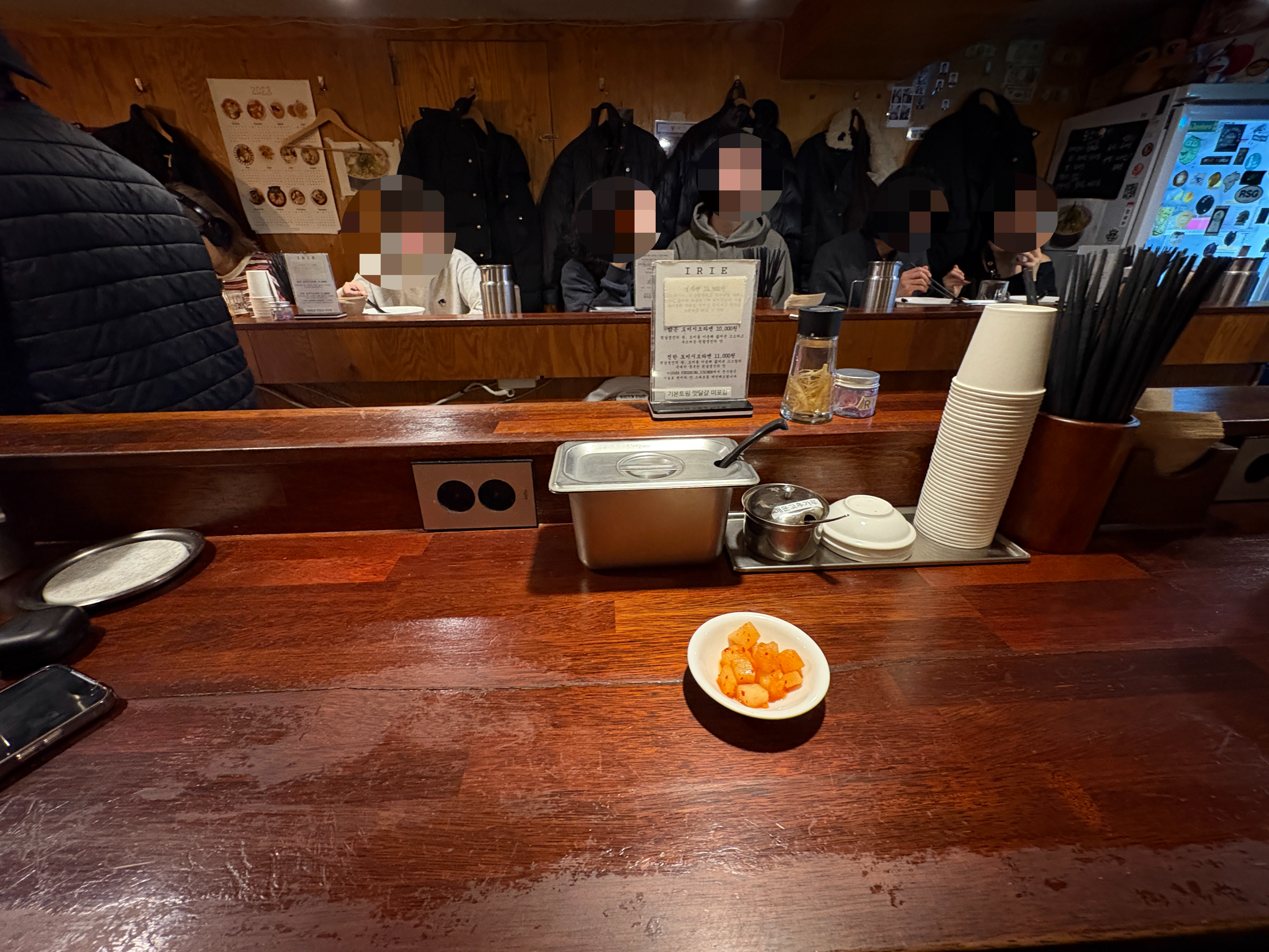 찬으로는 깍두기가 준비되어있습니다. 이게 생선 육수를 이용한 라멘이다보니까 은근 깍두기랑 잘어울리더라는..ㅋㅋ 밑반찬 요즘 잘 안먹는데 리필해서 먹었네요.