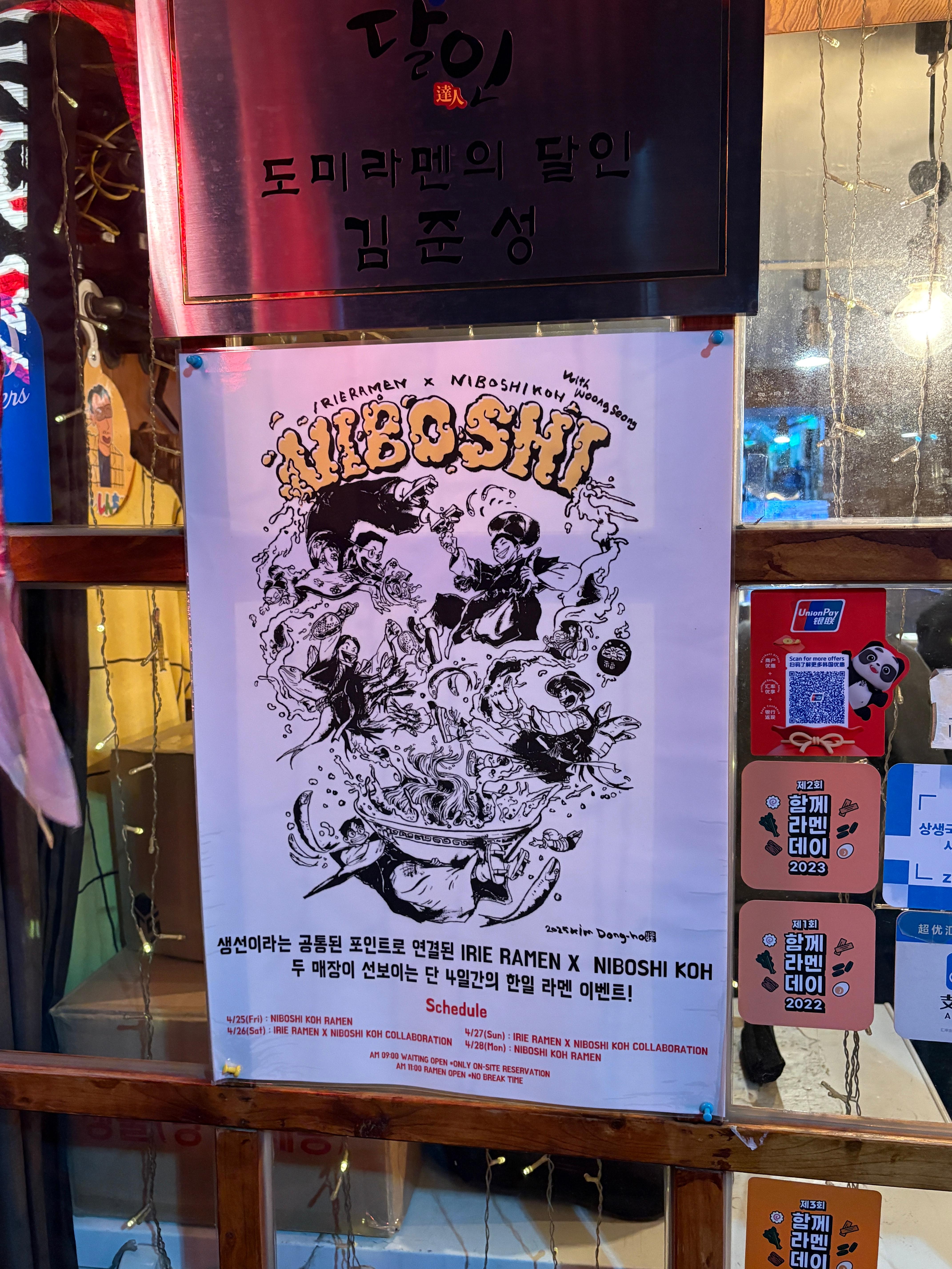 사실 이리에 라멘은 국내에서 심야라멘 그리고 이벤트 콜라보라멘의 유행의 포문을 열었다고해도 과언이 아닌데요, 일본의 유명점 니보시코와의 콜라보를 통해서 큰 주목을 받은 이후로도 심야에 전개했던 이벤트 라멘들이 계속해서 호평을 받으면서 새롭게 불어온 라멘 열풍의 중심을 차지하고 있었습니다. 그래서인지 한동안은 이리에 라멘을 먹고싶어도 현장 웨이팅만 가능한데다가 줄도 길어서 먹기가 너무 힘들었는데.. 이제는 좀 사그라들었겠지하면서 오랜만에 출동해보았습니다.