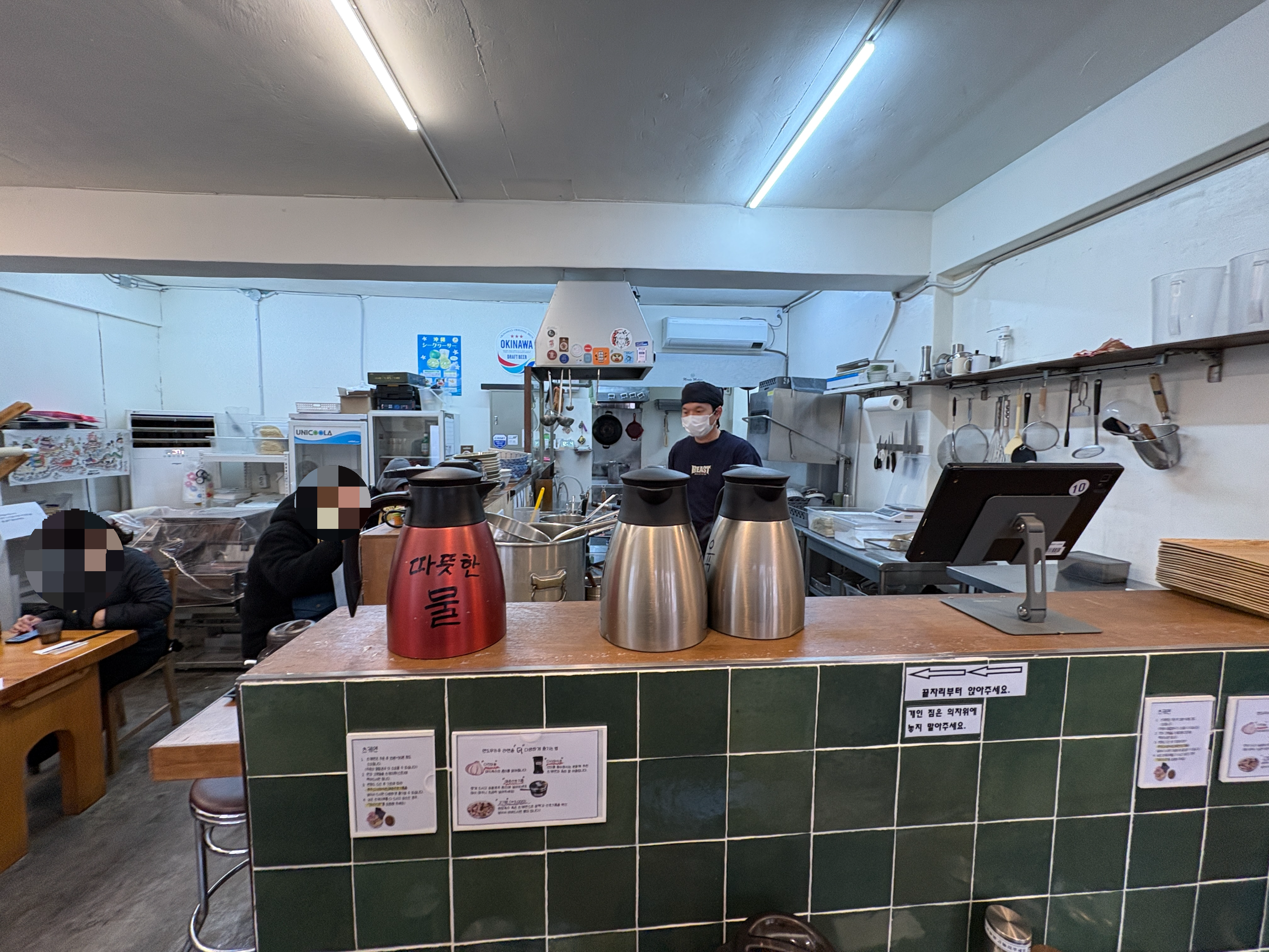 아기자기한 분위기가 풍기는 가게 내부는 다찌석과 테이블석이 고루 있습니다. 커플들이 주로 테이블석에 앉아계셨고, 저처럼 혼자 방문한 라오타들은 다찌 쪽으로 안내가.. 3인 이상의 단체손님들까지 있는데다가, 어린아이를 동반한 가족도 있는거보니 라멘이 참 많이 대중화 되어가는구나라는 생각이 들었습니다. 물론 손님층이 그렇다보니 식사속도가 느린 편이라 제가 한자릿수 대기번임에도 불구하고 한시간이상 기다렸습니다 ㅠㅠ